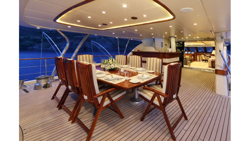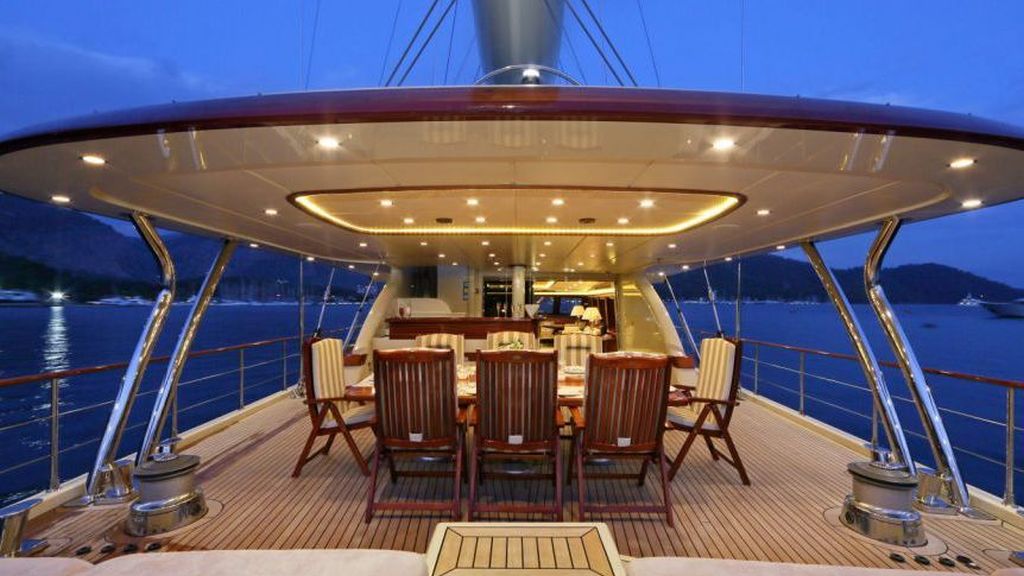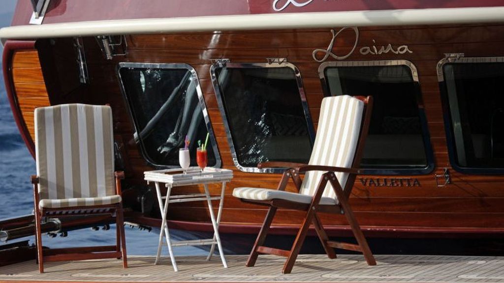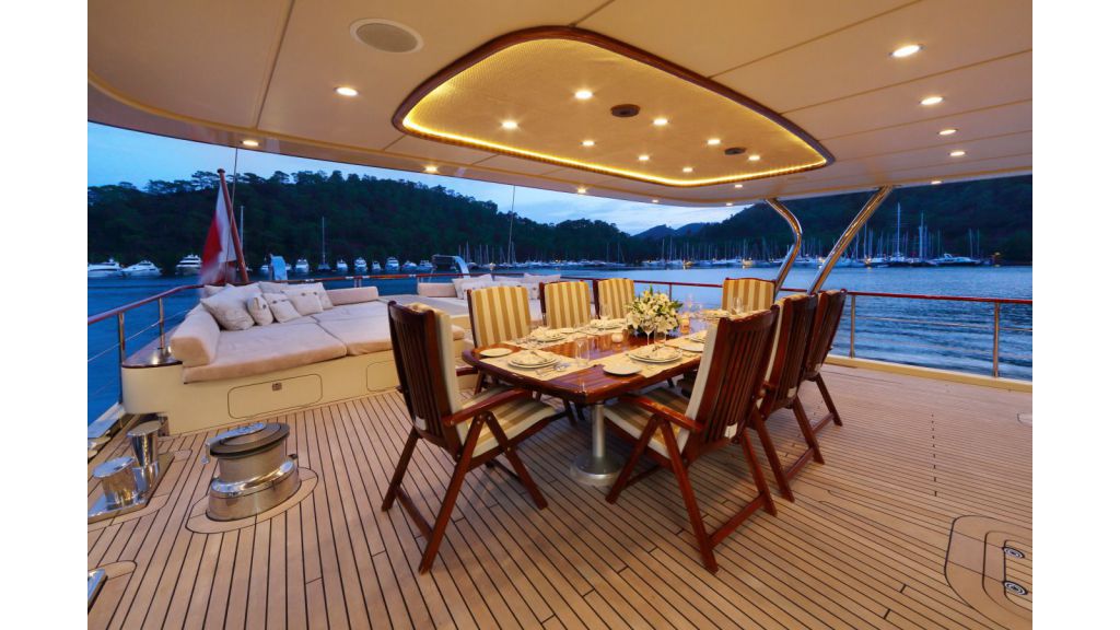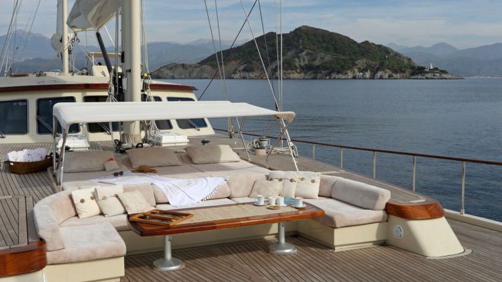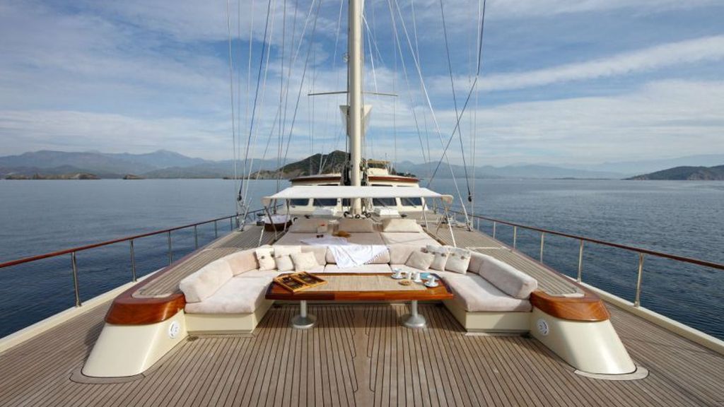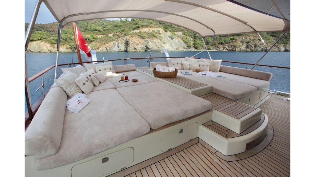 Наш 42.50 м Гулет и яхта Daima была построена в 2009 году. На нашей лодке 5 кают, включая 1 Master, 2 Double и 2 Twin Cabins, каждая из которых более стильная и удобная, с собственным душем, туалетом и кондиционером. 7 отдельных гостиных, полностью оборудованная кухня, обеденные зоны внутри и снаружи и зоны отдыха для экипажа. Есть подушки для загара, стулья и сервировочные наборы, достаточные для всех гостей. Благодаря полноценному радио, GSM-телефону и навигационному оборудованию, Гулет и яхта Always; Бодрум, Гёчек, Мармарис, Фетхие и т. д. вы можете безопасно плавать в наших синих круизных направлениях.