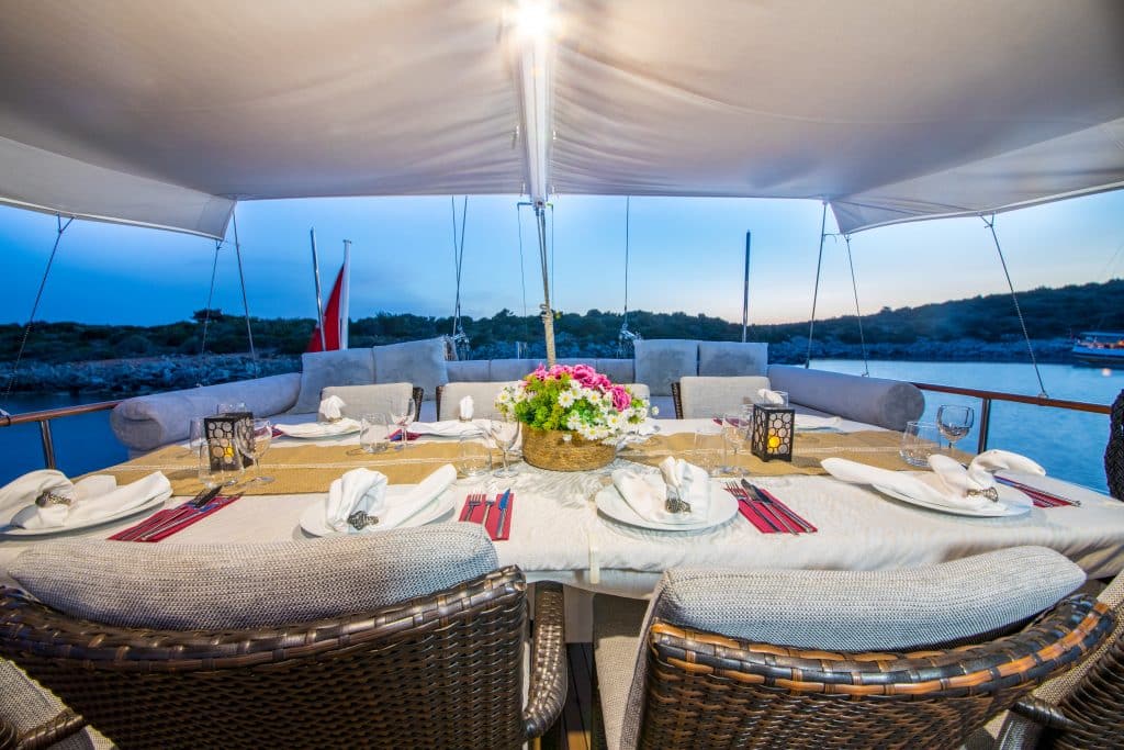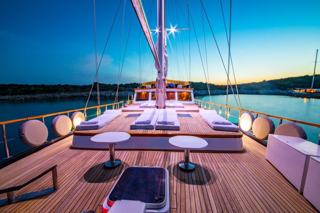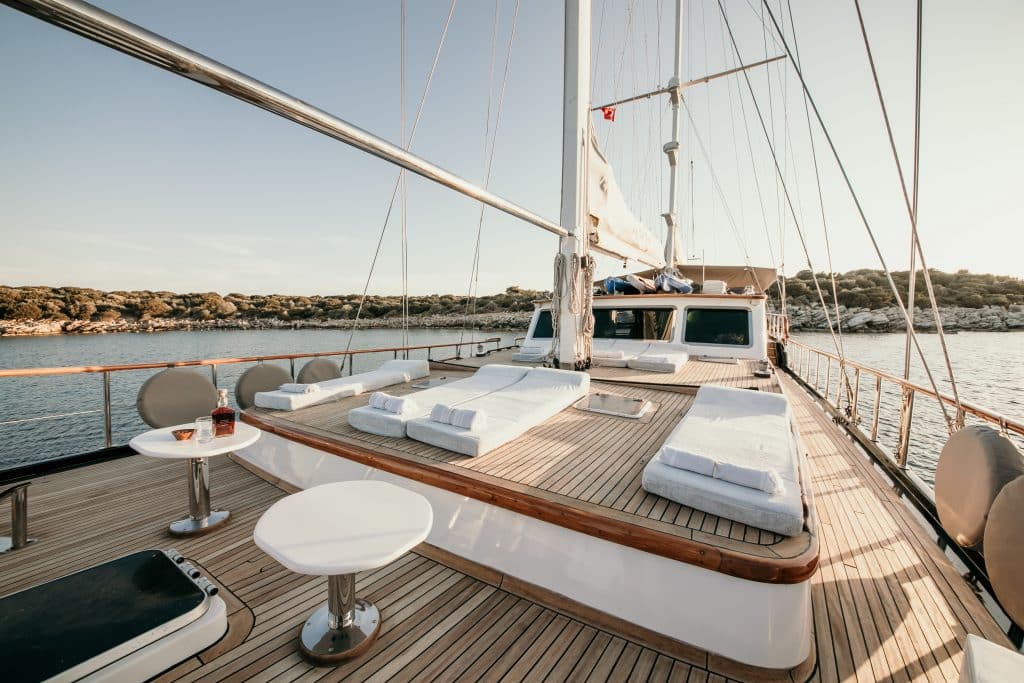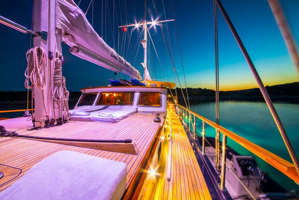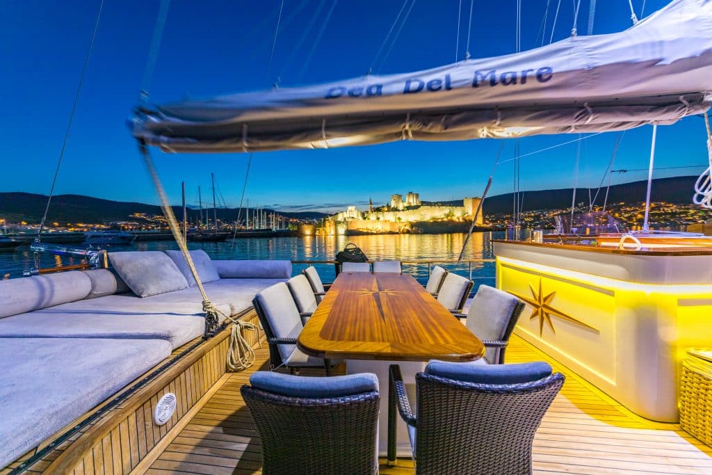 Наш 28 м Гулет и яхта Dea Del Mare была построена в 2009 году. Она обрела свой окончательный вид после реконструкции и обновления, которые она прошла в 2012 году. На нашей лодке 5 кают: 2 Master, 2 Double и 1 Twin, каждая из которых более стильная и удобная, чем другая, с собственным душем, туалетом и кондиционером. 4 отдельные жилые зоны, полностью оборудованная кухня, обеденные зоны внутри и снаружи и зоны отдыха для экипажа. Есть подушки для загара, стулья и сервировочные наборы, достаточные для всех гостей. Гулет и яхта Dea Del Mare, благодаря своему полноценному радио, GSM-телефону и навигационному оборудованию; Бодрум, Гёджек, Мармарис, Фетхие и т. д. Вы можете безопасно плавать в наших синих круизных направлениях.