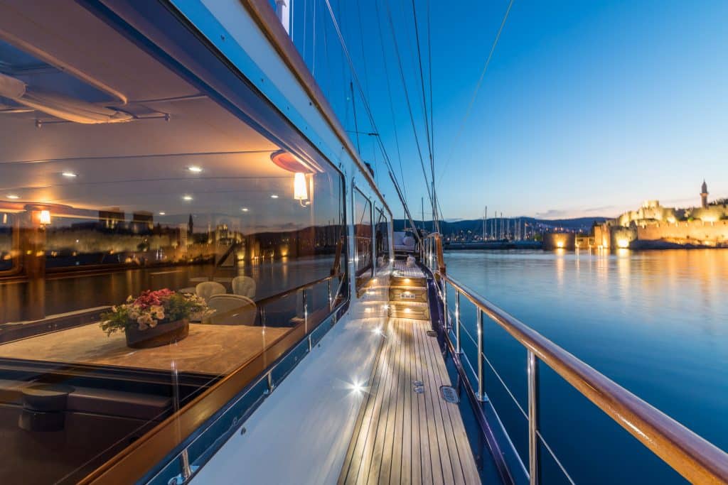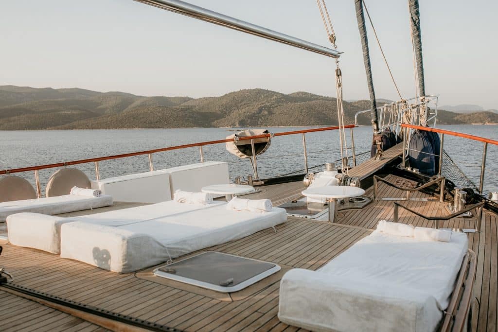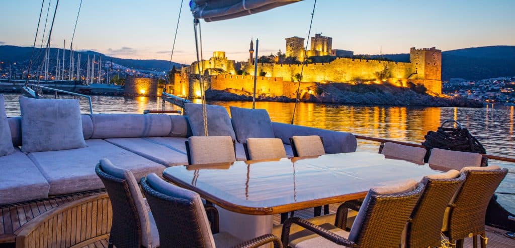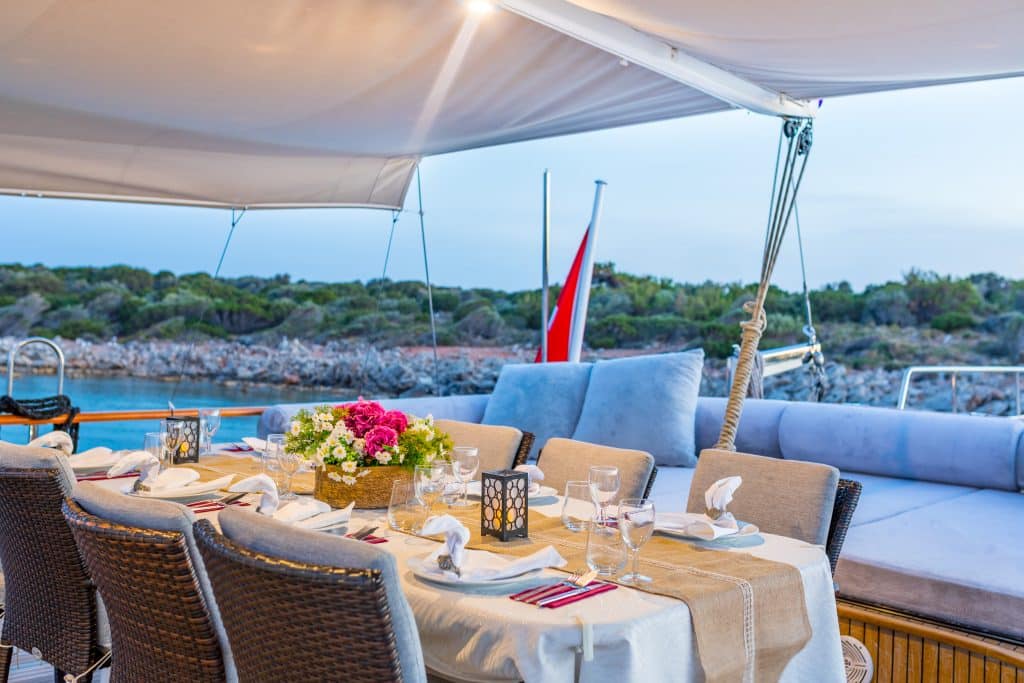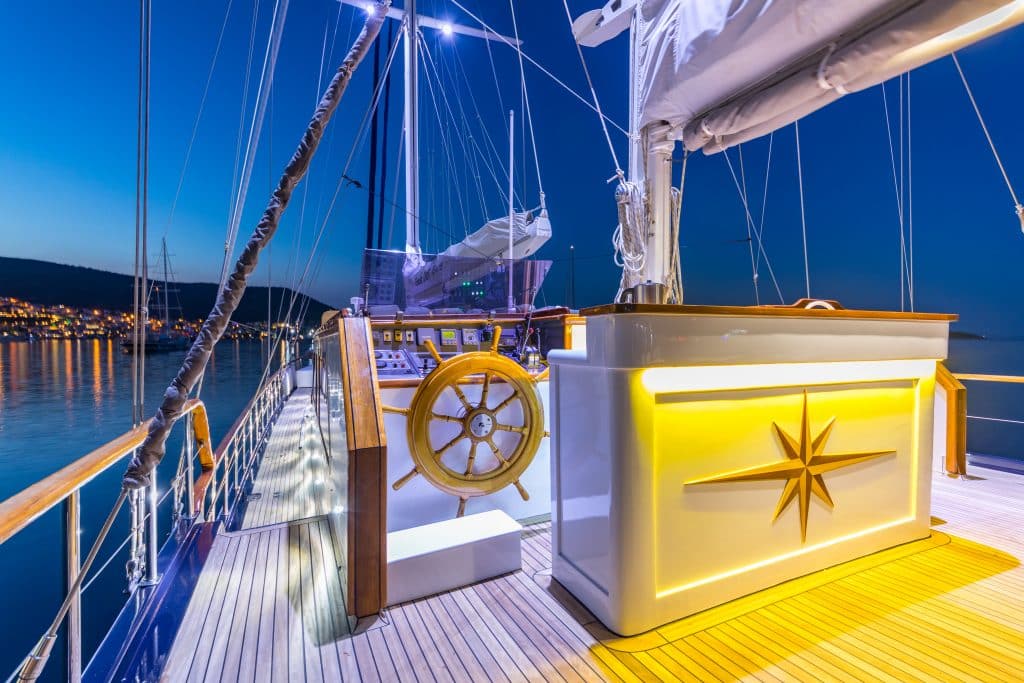 Наш 28 м Гулет и яхта Dea Del Mare была построена в 2009 году. Она обрела свой окончательный вид после реконструкции и обновления, которые она прошла в 2012 году. На нашей лодке 5 кают: 2 Master, 2 Double и 1 Twin, каждая из которых более стильная и удобная, чем другая, с собственным душем, туалетом и кондиционером. 4 отдельные жилые зоны, полностью оборудованная кухня, обеденные зоны внутри и снаружи и зоны отдыха для экипажа. Есть подушки для загара, стулья и сервировочные наборы, достаточные для всех гостей. Гулет и яхта Dea Del Mare, благодаря своему полноценному радио, GSM-телефону и навигационному оборудованию; Бодрум, Гёджек, Мармарис, Фетхие и т. д. Вы можете безопасно плавать в наших синих круизных направлениях.