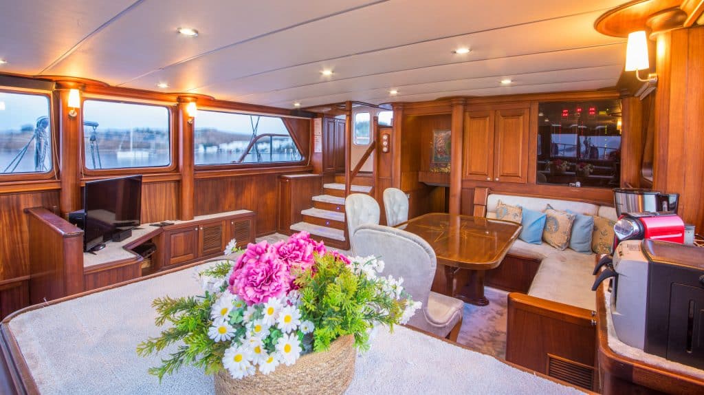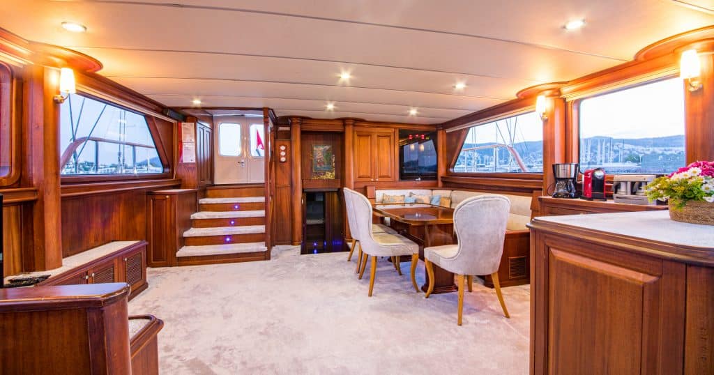 ЖК-телевизор, DVD-плеер и стереосистема к услугам наших уважаемых гостей синего вояжа в салоне нашего Гулета и яхты. Водные виды спорта, такие как гребля на каноэ, дайвинг, виндсерфинг, опционально доступны для наших гостей, если они пожелают. Наша лодка также предлагает развлечения и возможность отдохнуть на лодке для наших пассажиров, которые хотят насладиться Голубым Вояжем в нетронутых бухтах Турции. Гулет и яхта Dea Del Mare готова приветствовать наших уважаемых гостей, которые рассматривают возможность аренды Гулета и яхты на неделю в регионах Бодрум, Гёджек, Фетхие, Мармарис, Гёкова.