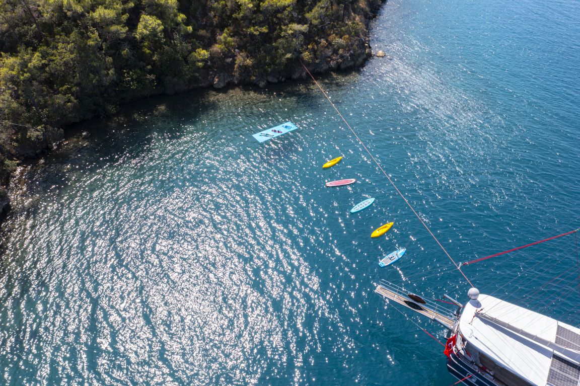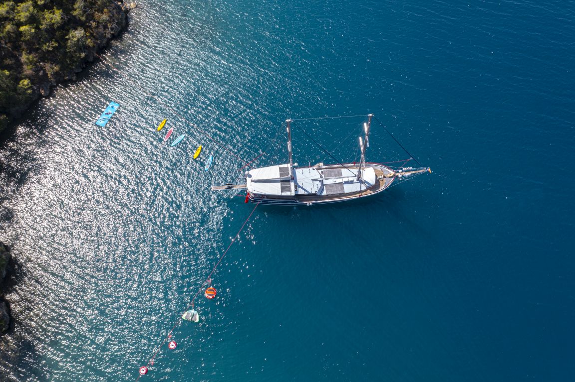 и сервировочных наборов. Эта яхта, предлагающая комфорт, роскошь и спокойствие для наших гостей круизов, может развивать скорость до 10 морских миль. Благодаря полностью оборудованной беспроводной связи, GSM-телефонии и навигационным системам вы будете чувствовать себя в безопасности во время круиза на яхте Lotus по самым популярным направлениям голубого круиза, таким как Бодрум, Мармарис, Фетхие и Гёчек. Кроме того, в салоне для удобства наших уважаемых гостей голубого круиза имеется ЖК-телевизор, DVD-плеер и музыкальная система. Чтобы вы не отключались от интернета во время своего отдыха, наша яхта оборудована Wi-Fi, действующим в пределах турецких территориальных вод. Для гостей, желающих, доступны такие водные виды спорта, как вейкбординг, водные лыжи, каноэ и Hobie Mirage. Для наших гостей, желающих насладиться голубым путешествием по нетронутым бухтам Турции, наш морской матрас также предлагает дополнительные возможности для развлечений. |