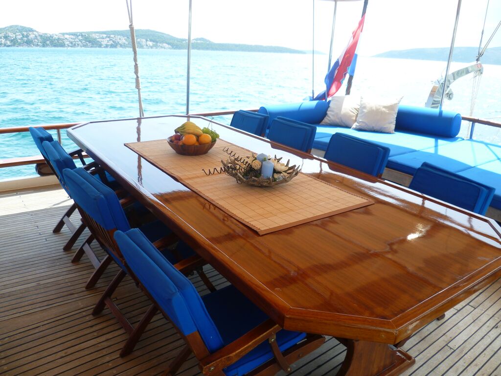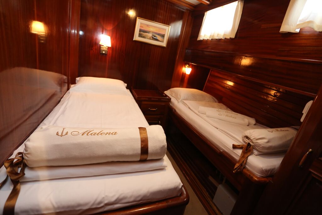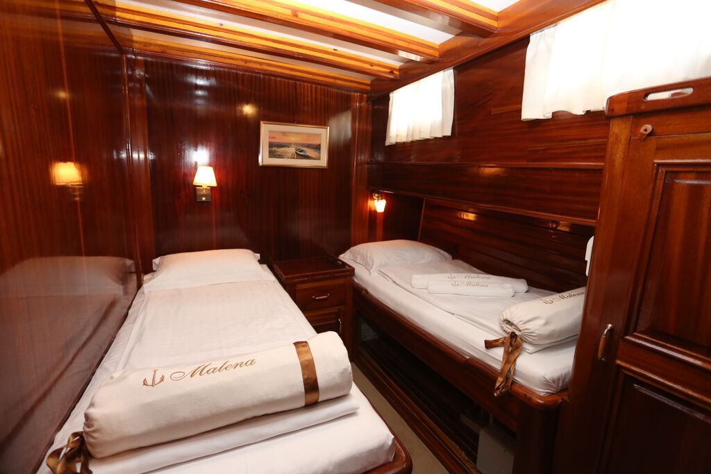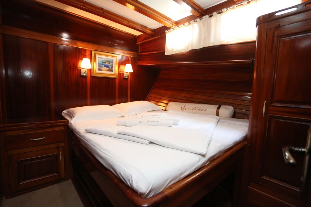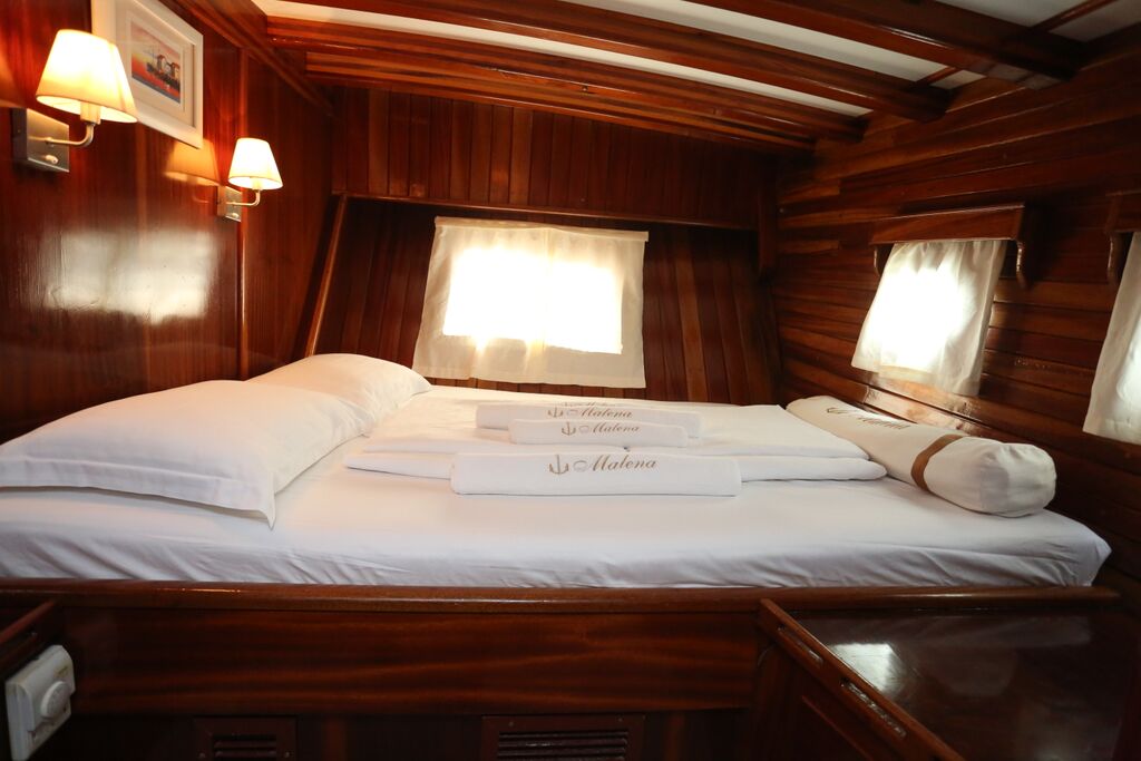 | Вместимость до 10 гостей; 2 главные каюты, 2 двухместные каюты, 1 двухместная + одноместная каюта, кондиционер, душевая кабина и туалеты домашнего типа во всех каютах, отдельные каюты для экипажа. |