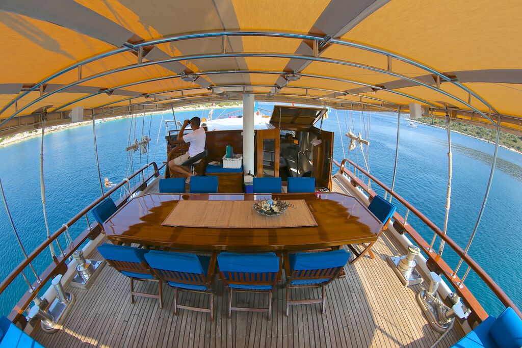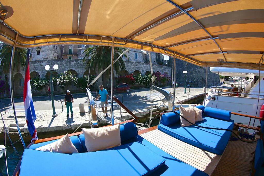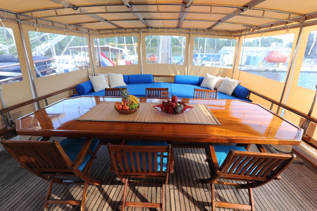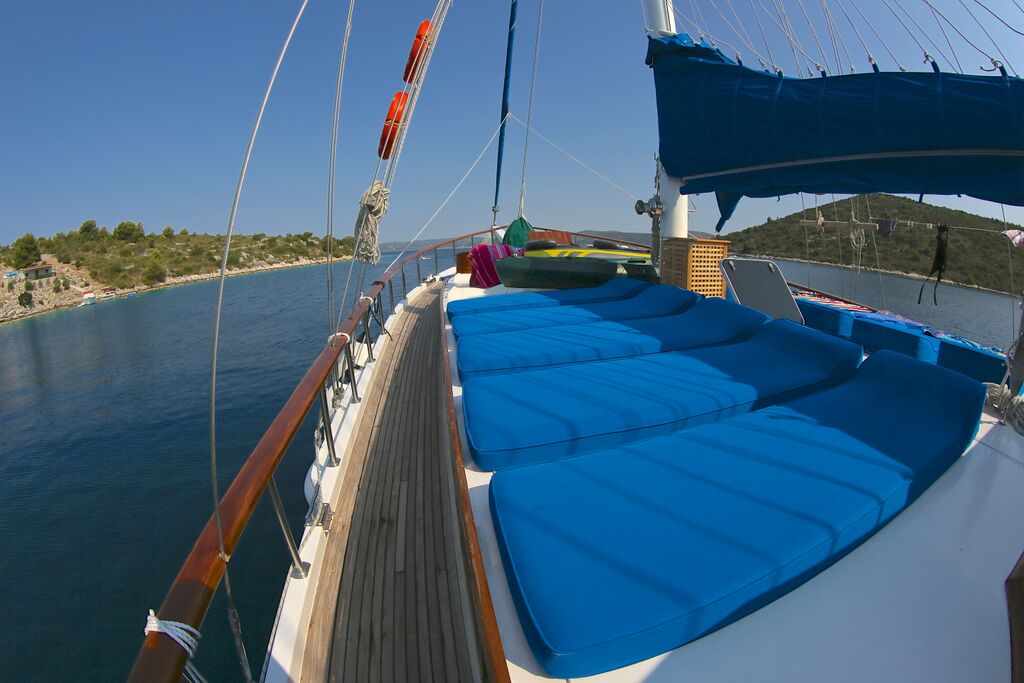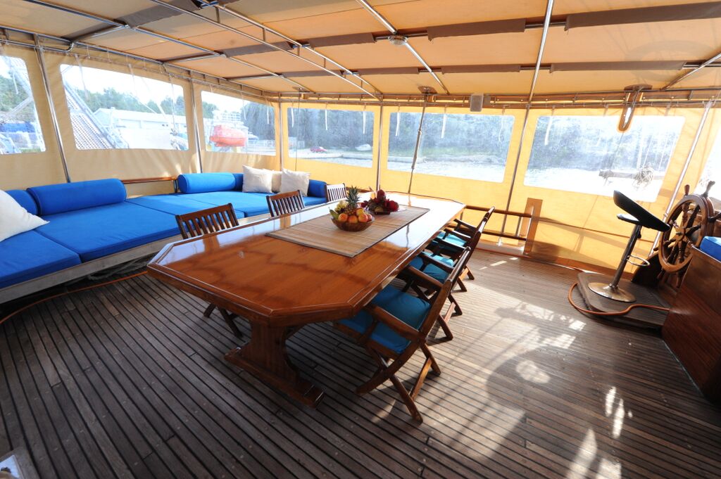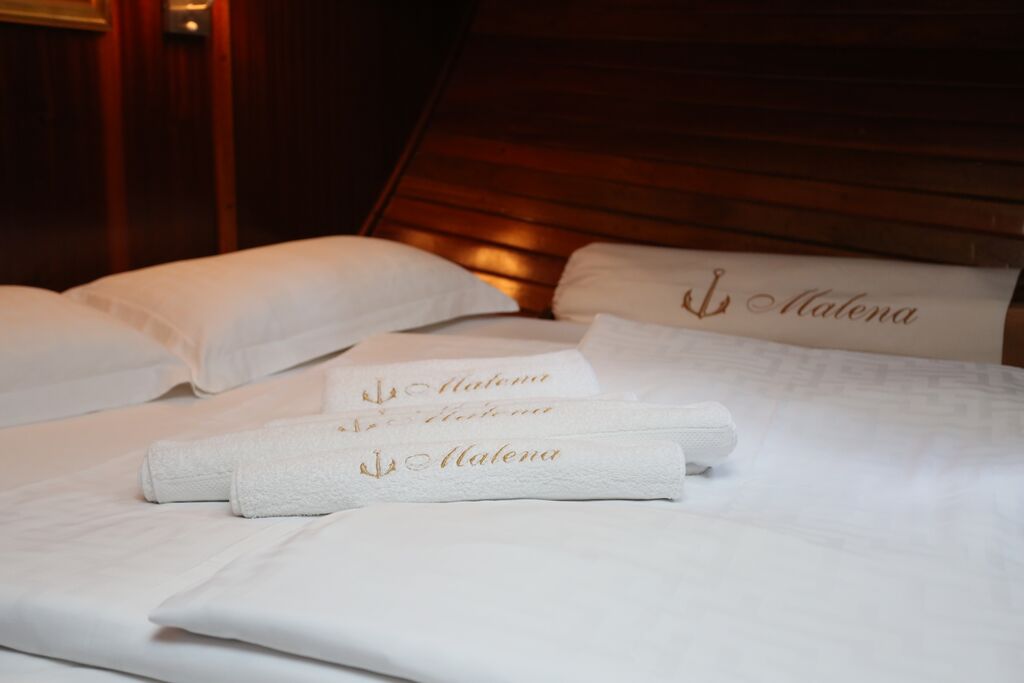 | Вместимость до 10 гостей; 2 главные каюты, 2 двухместные каюты, 1 двухместная + одноместная каюта, кондиционер, душевая кабина и туалеты домашнего типа во всех каютах, отдельные каюты для экипажа. |
