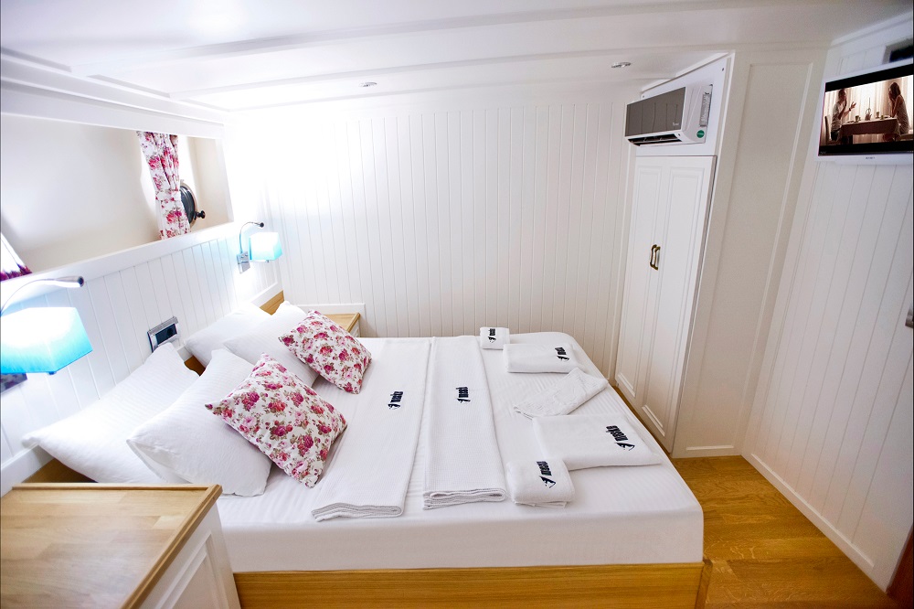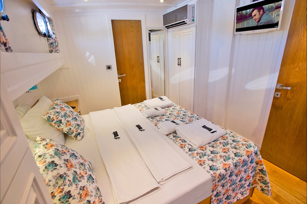 Наш 24 м Гулет и яхта Маске 1 была построена в 2014 году. Она приняла свой окончательный вид после реконструкции и обновления, которые она прошла в 2017 году. На нашей лодке 5 кают, 1 Master и 4 Double Cabins, каждая из которых более стильная и удобная, с собственным душем, туалетом и кондиционером. 3 Есть отдельные жилые зоны, полностью оборудованная кухня, крытая и открытая обеденные зоны и зоны отдыха для экипажа. Есть подушки для загара, стулья и сервировочные наборы, достаточные для всех гостей. Благодаря своему полноценному радио, GSM-телефону и навигационному оборудованию, Гулет и яхта Maske 1; Бодрум, Гёджек, Мармарис, Фетхие и т. д. вы можете безопасно плавать в наших синих круизных направлениях.