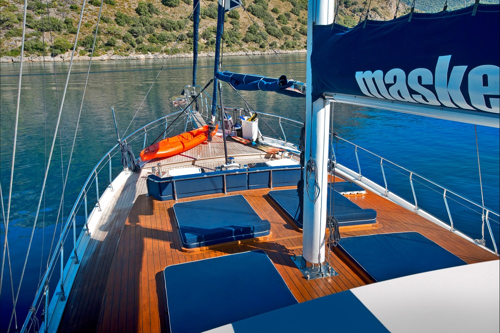 ЖК-телевизор, DVD-плеер и стереосистема к услугам наших уважаемых гостей синего вояжа в салоне нашего Гулета и яхты. Водные виды спорта, такие как гребля на каноэ, дайвинг, виндсерфинг, опционально доступны для наших гостей, если они пожелают. Наша лодка Maske 1 также предлагает развлечения и возможность отдохнуть на лодке для наших пассажиров, которые хотят насладиться Blue Voyage в нетронутых бухтах Турции. Гулет и яхта Maske 1 готова приветствовать наших уважаемых гостей, которые рассматривают возможность аренды Гулета и яхты на неделю в регионах Бодрум, Гёджек, Фетхие, Мармарис, Гёкова.