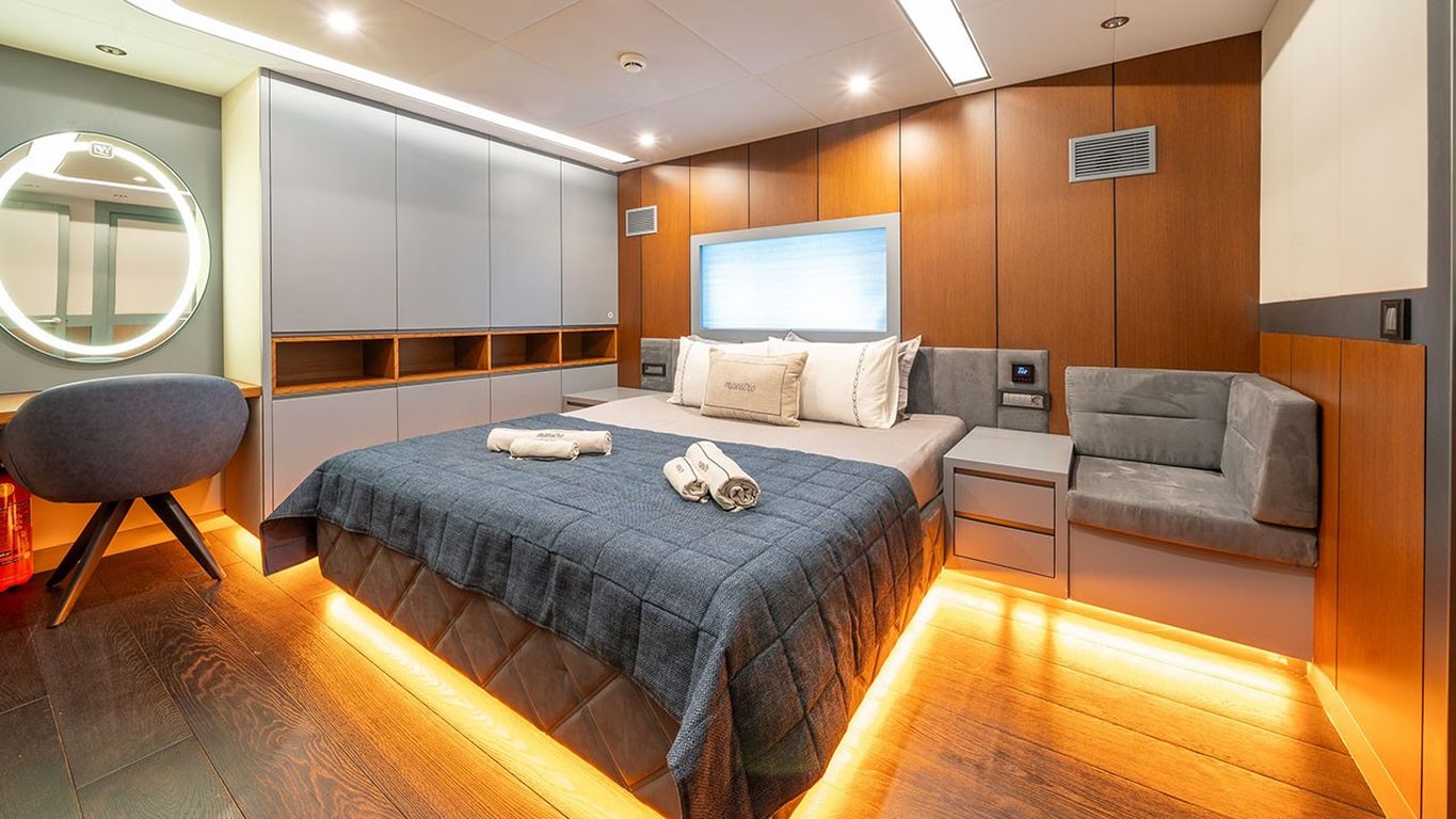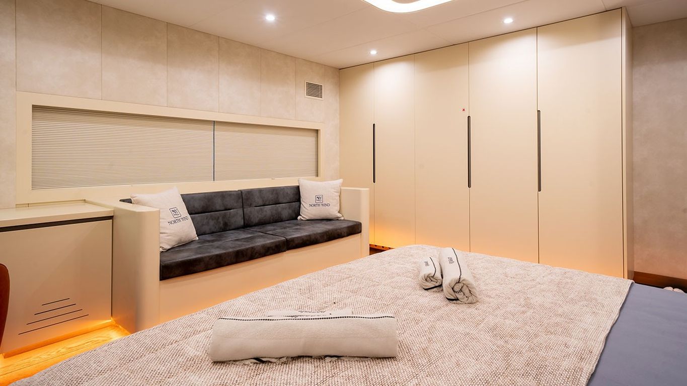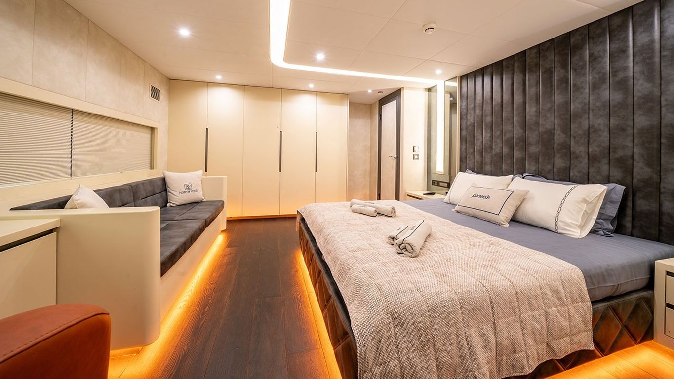 | North Wind — роскошная парусная яхта длиной 47 м, спущенная в 2023 году; современный и элегантный круизный опыт. Пять кают — одна мастер, три дабл и одна твин — максимум 10 гостей. Ширина 9,50 м добавляет простора и величия как внутри, так и снаружи. Обширная палуба предлагает разнообразные лаунжи и солярии, теневые обеденные зоны и изящный экстерьер. Внутри — современный стильный салон с обеденной зоной, комфортным лаунжем и полностью оборудованным камбузом. Для активностей на воде: тузик Mercury 115 л.с., гидроцикл, seabob, надувной каяк, SUP-доска, водные лыжи, вейкборд, ринго, каноэ, снаряжение для сноркелинга и рыбалки. Силовая установка: два двигателя MAN по 850 л.с., генераторы 50 + 22 кВА; крейсерская 10 узлов. Полноценная система кондиционирования для постоянного комфорта; электросети 12V/24V/220V. North Wind — оптимальный выбор для гостей, ищущих абсолютно новую парусную яхту с люксовыми удобствами, выдающимся набором водных «игрушек» и идеальным «голубым круизом». |