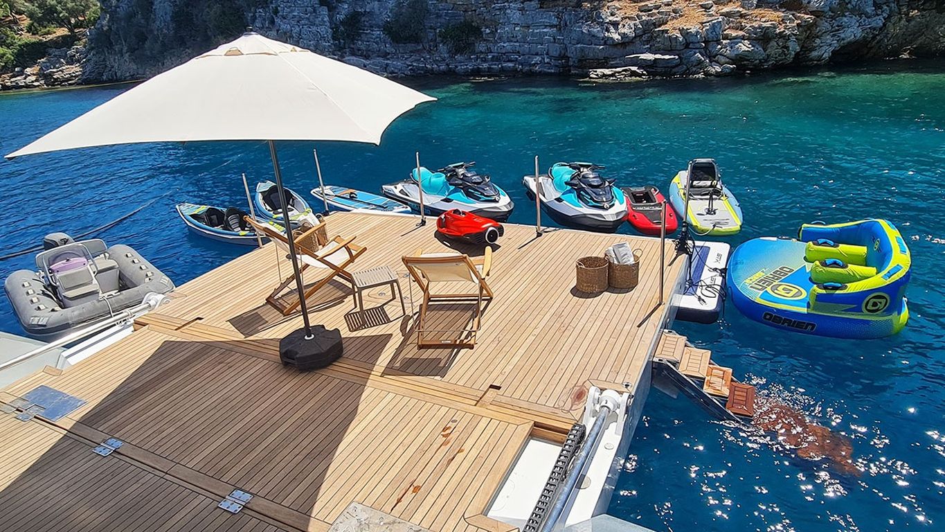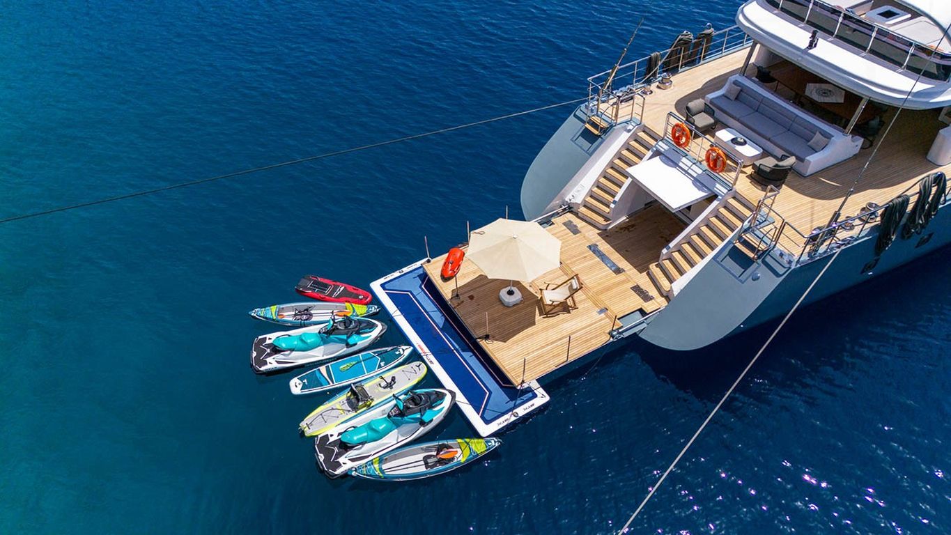 Подвесной мотор D150 HP, гидроцикл, ринго, доска для гребли стоя, каноэ, снаряжение для снорклинга и рыбалки, оборудованный камбуз, обеденная зона в помещении, средства безопасности, навигационное оборудование, парусное снаряжение, матрасы для защиты от солнца, опреснитель, спутниковое телевидение, TV/DVD/CD-плеер, GPS, радиостанция VHF, Wi-Fi.. |