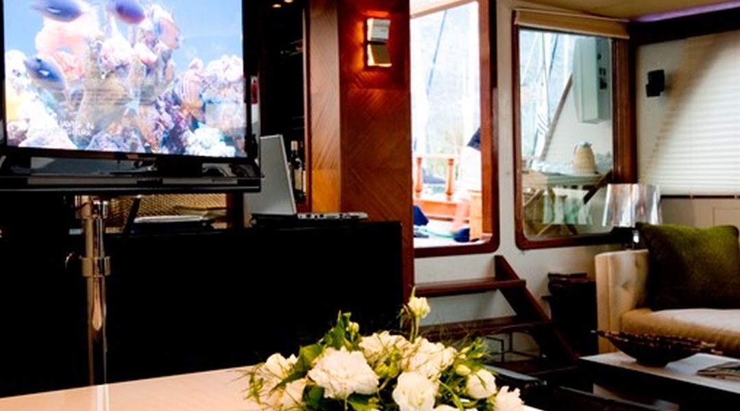 | Лодка Zodiac с двигателем 115 л. с., водные лыжи, монолыжа, каноэ, вейкборд, навигационное оборудование, парусное оборудование, рыболовное и подводное снаряжение, средства безопасности, солнцезащитные тенты, шезлонги, холодильник, ледогенератор, кофеварка, зона отдыха в салоне, ТВ/DVD/CD-плеер, GPS, радио VHF, Интернет |