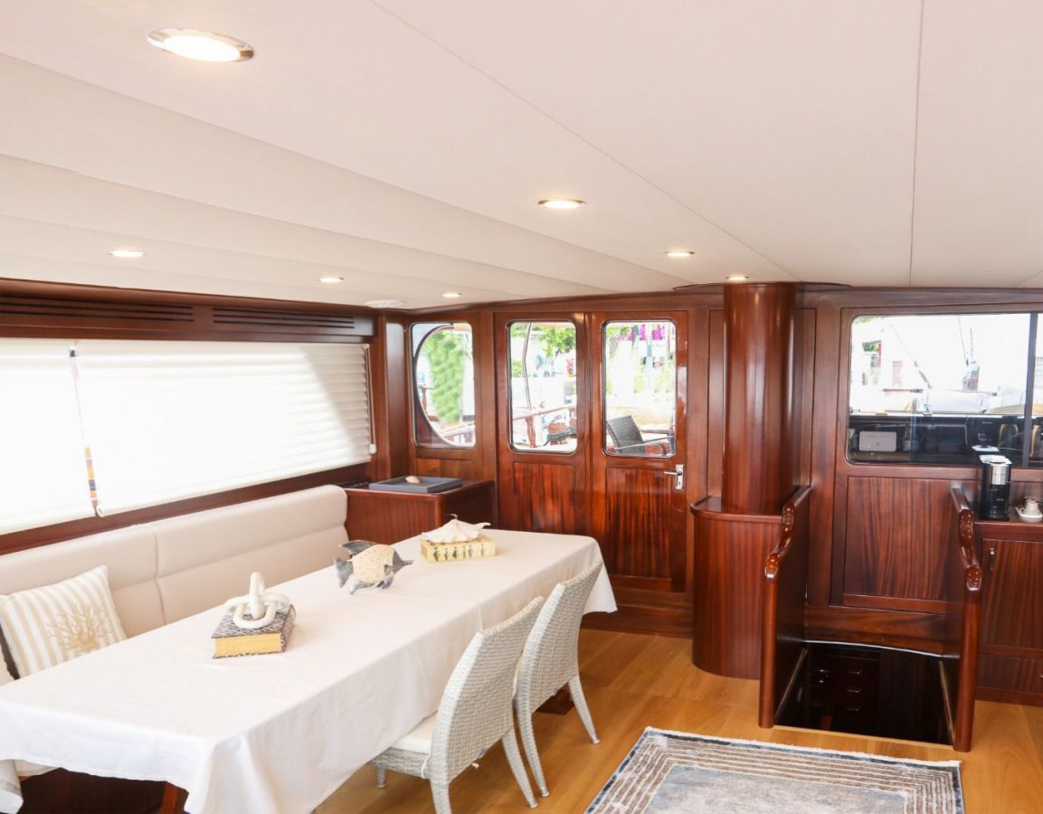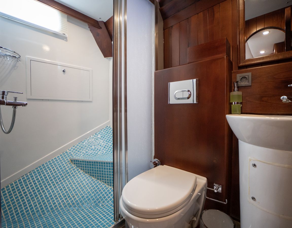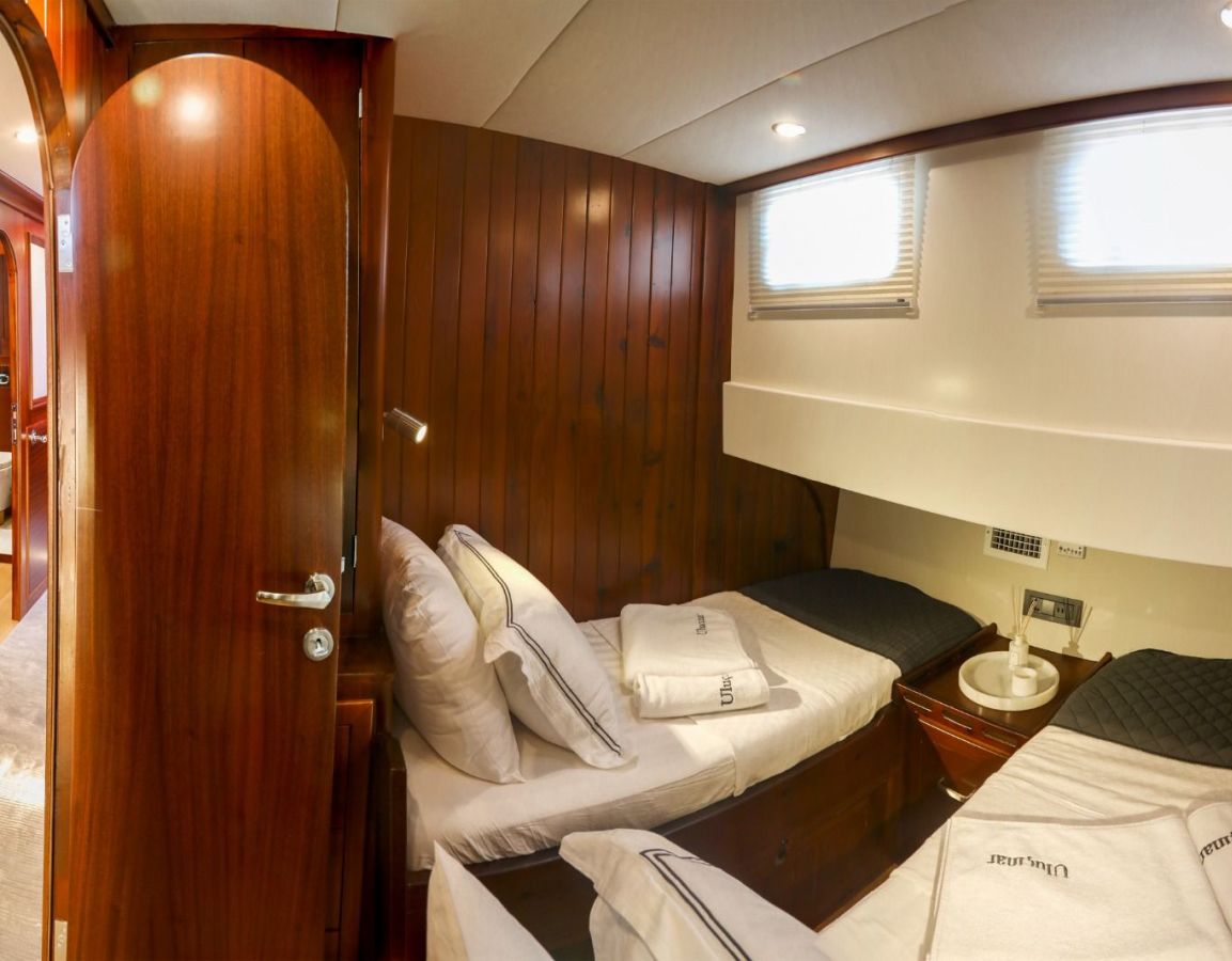 | Гулет Queen of Sea — делюкс-гулет длиной 26,1 м, построен в 2007 году, со вкусом обновлён в 2022-м. Пять кают — две мастер, две дабл и одна твин — на 10 гостей. Ширина 7,40 м обеспечивает щедрые пространства внутри и под открытым небом. Снаружи — теневые столовые зоны, удобные сиденья и солярии; в салоне — обеденный стол, лаунж и современный камбуз. Водные активности: тузик 50 л.с., SUP-доски, водные лыжи, вейкборд, каноэ, снасти для сноркелинга и рыбалки. Механика: два двигателя Daewoo по 360 л.с., два генератора по 27 кВА; крейсерская 9 узлов. Кондиционирование 24/7; сети 12V/24V/220V. Queen of Sea — идеальный выбор для семей и компаний друзей, ищущих современный люксовый гулет с полным набором удобств и водных активностей. |