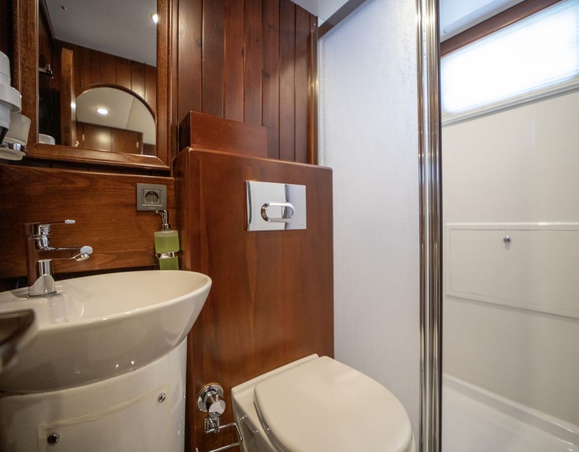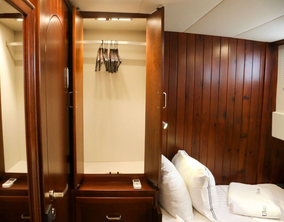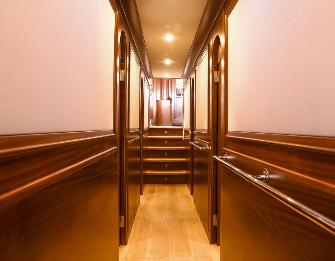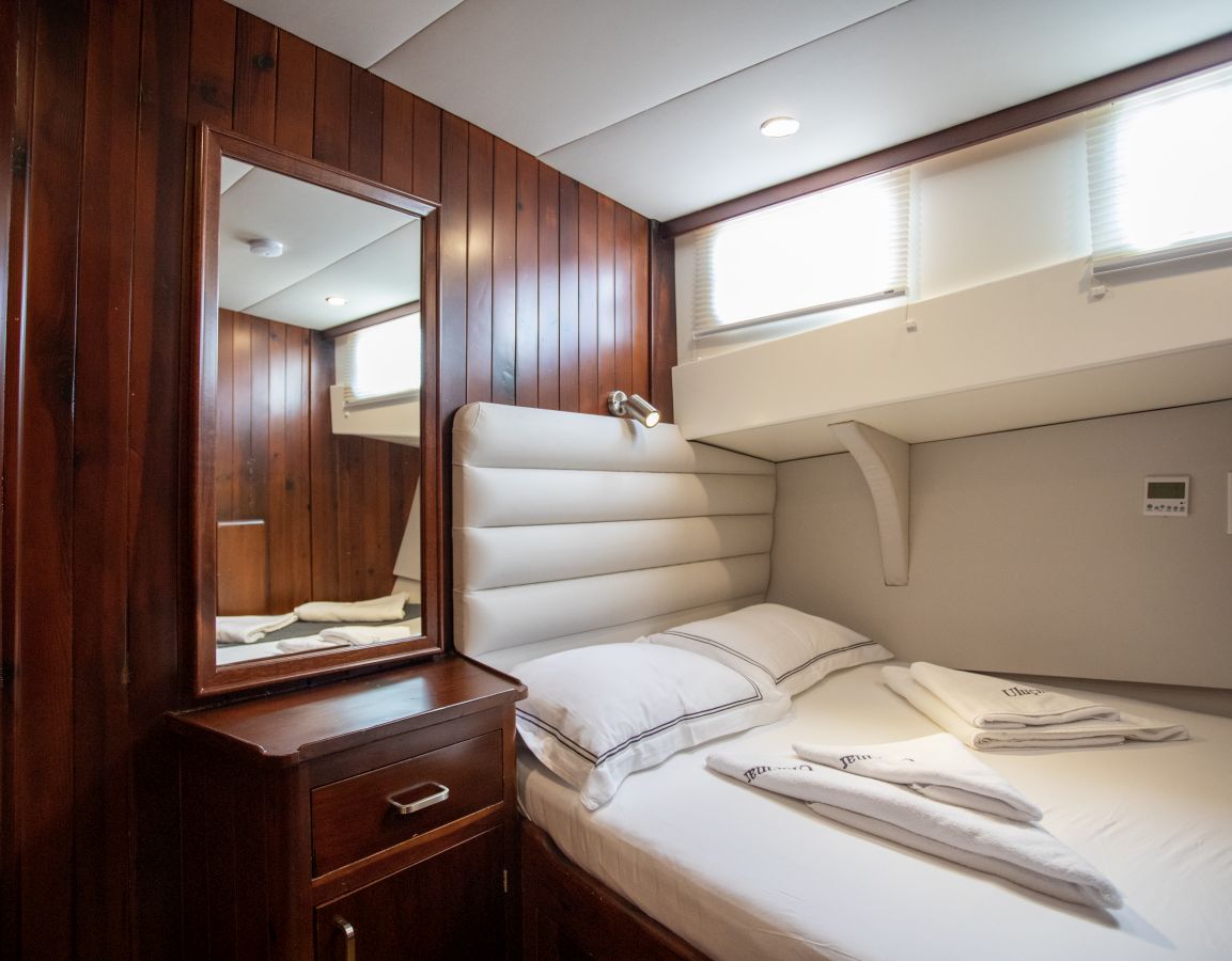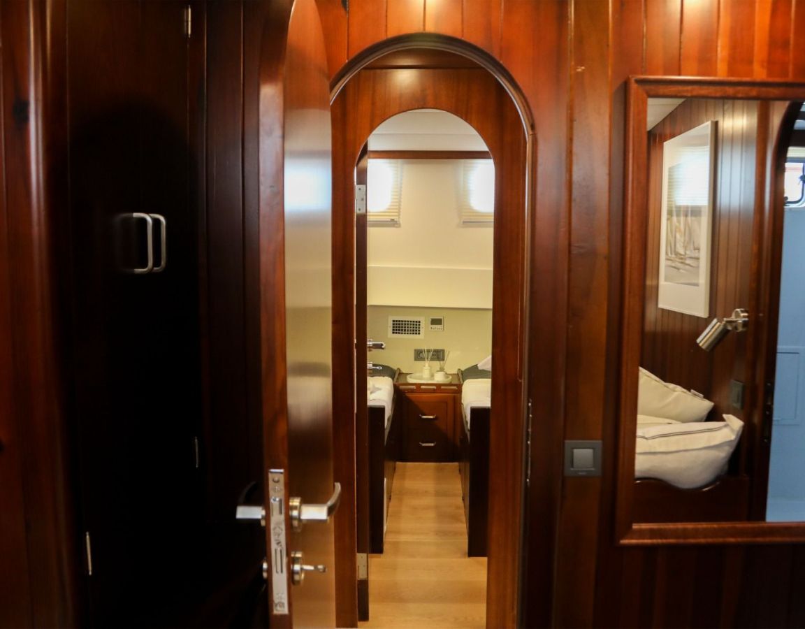 До 10 гостей; 2 главные, 2 двухместные, 1 двухместная каюта, кондиционер, душевая кабина и туалеты домашнего типа во всех каютах, отдельные каюты для экипажа. |