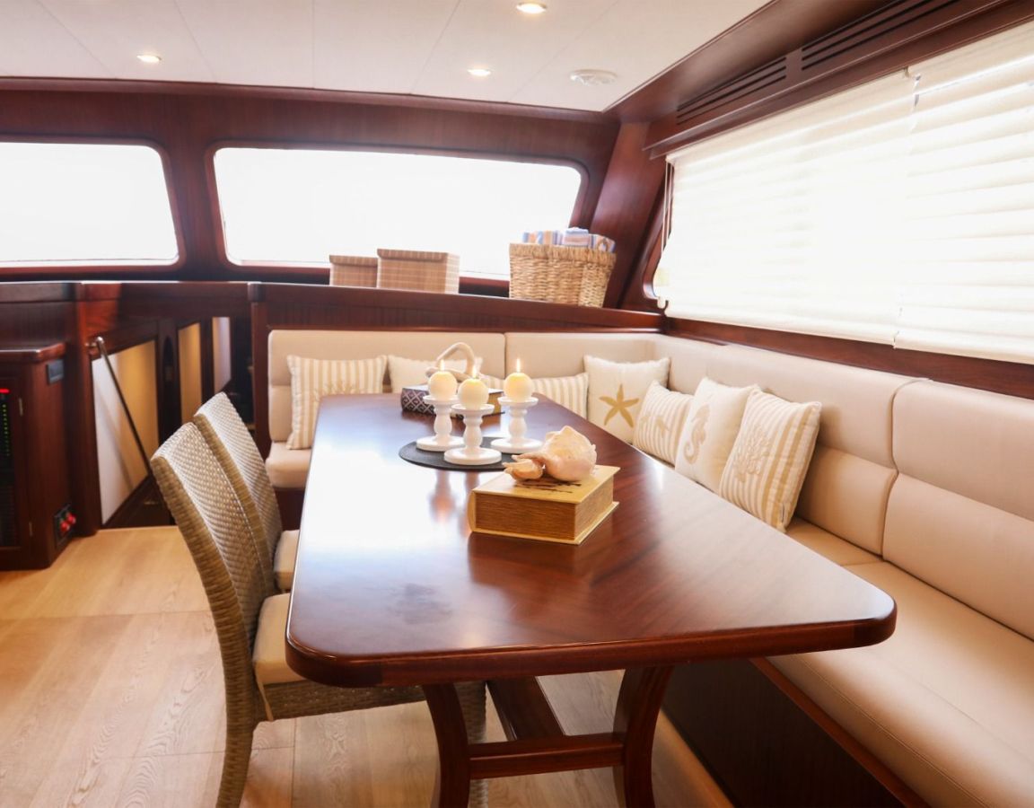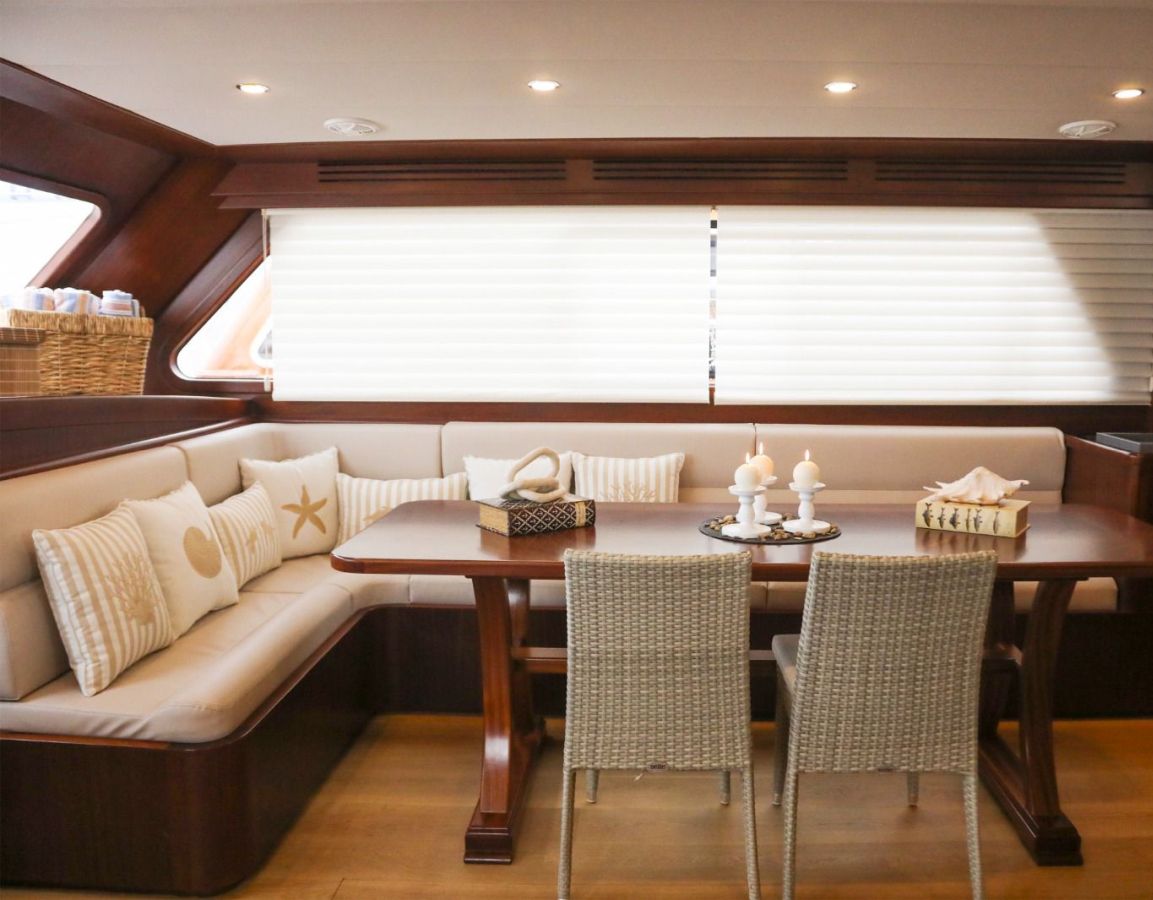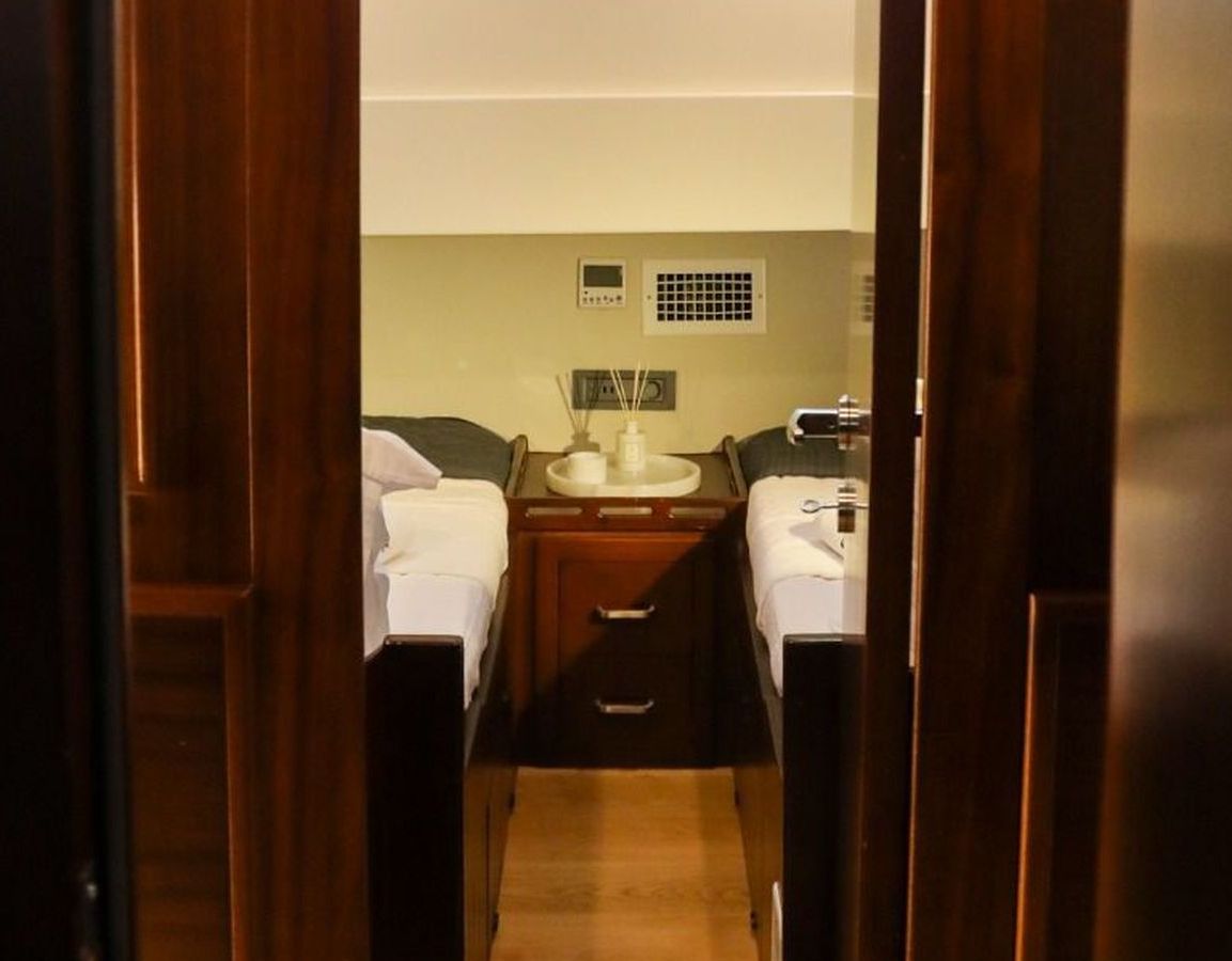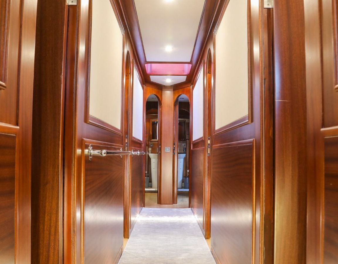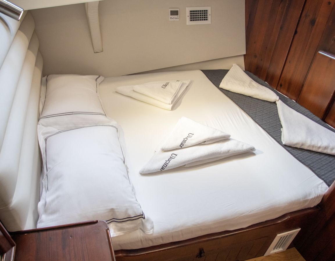До 10 гостей; 2 главные, 2 двухместные, 1 двухместная каюта, кондиционер, душевая кабина и туалеты домашнего типа во всех каютах, отдельные каюты для экипажа. |