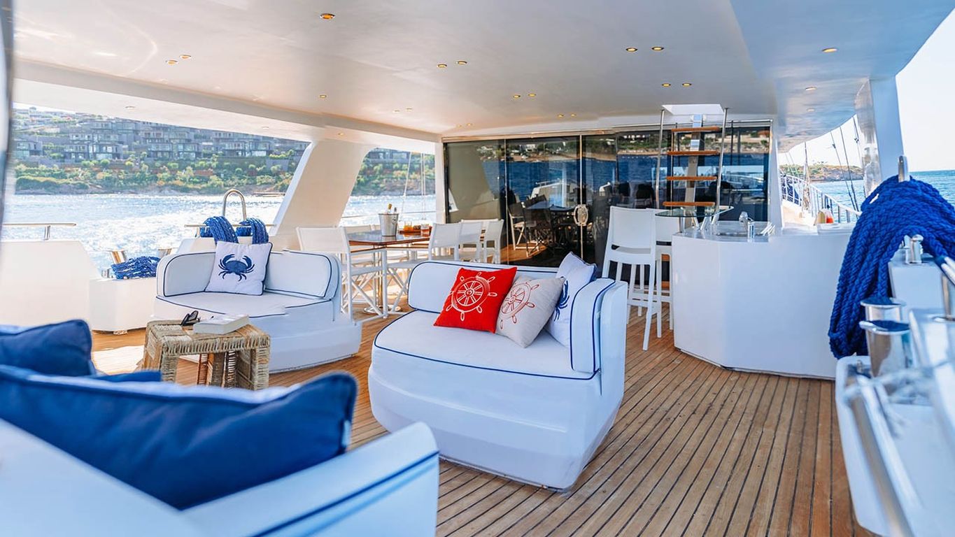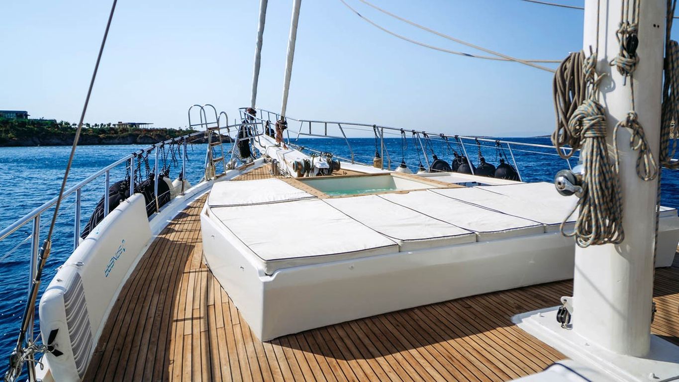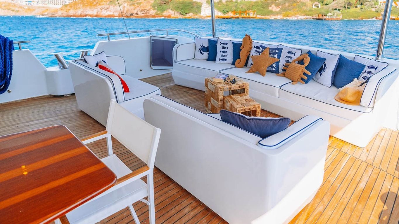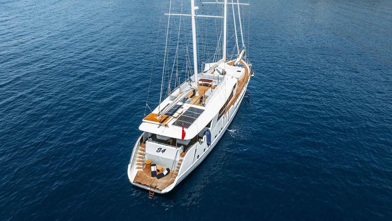 | Гулет S4 — впечатляющий роскошный гулет длиной 35 м. Построен в 2003 году, полностью рефитован к сезону 2024. Пять кают — одна мастер и четыре дабл — максимум 10 гостей. Ширина 7,10 м — просторные каюты, безупречные интерьеры и обширные палубы. На борту: матрасы для загара, теневые лаунжи, столовая аль-фреско. Элегантный салон включает столовую, зону отдыха и полностью оснащённый камбуз. Вода и спорт: тузик 60 л.с., SUP, водные лыжи, ринго, каноэ, снаряжение для сноркелинга и рыбалки — идеален для активных групп. Силовая часть: два Caterpillar по 450 л.с., два генератора по 22,5 кВА; крейсерская 9 узлов. Кондиционирование 24/7; электросети 12V/24V/220V. S4 подойдёт тем, кто ищет современный, недавно обновлённый роскошный гулет с полным набором водных развлечений и просторным комфортом. |