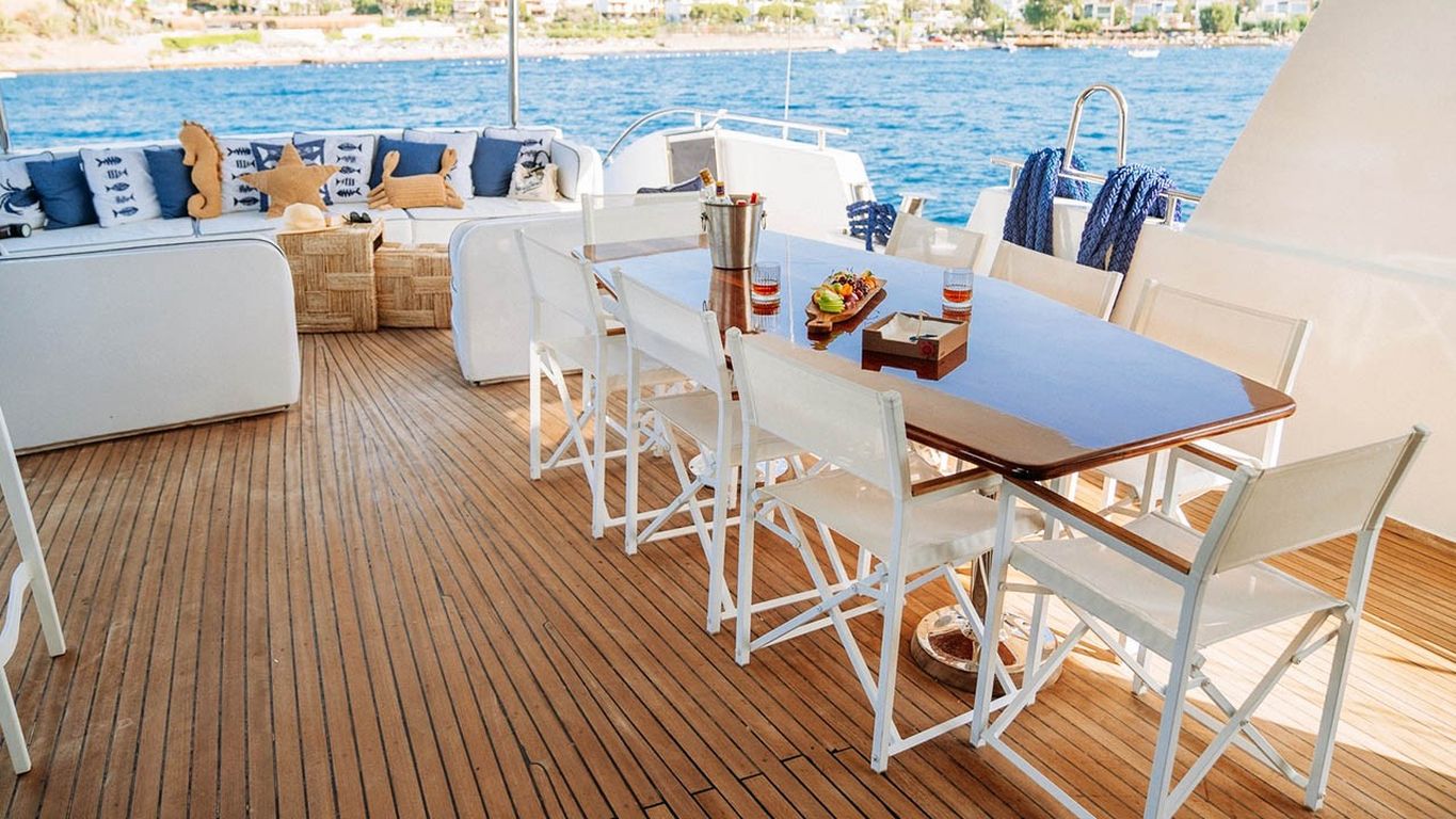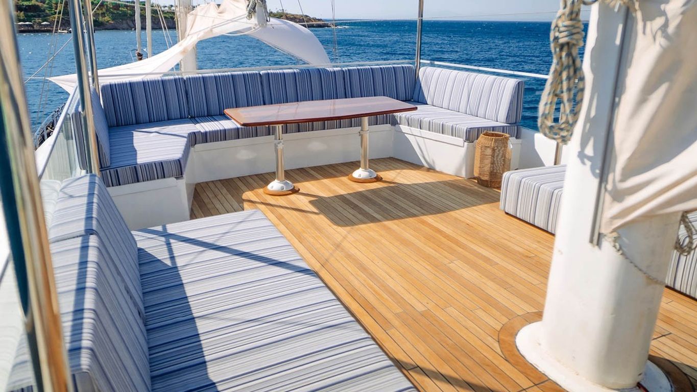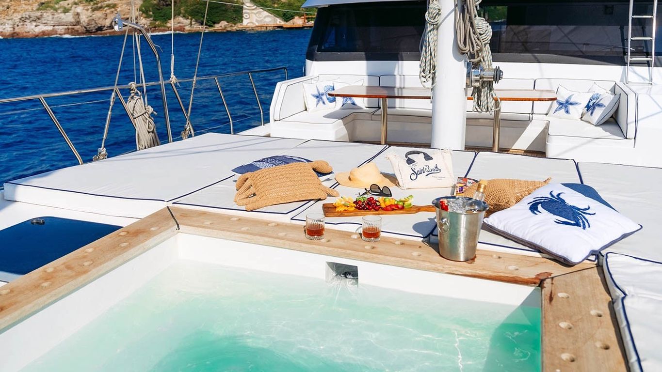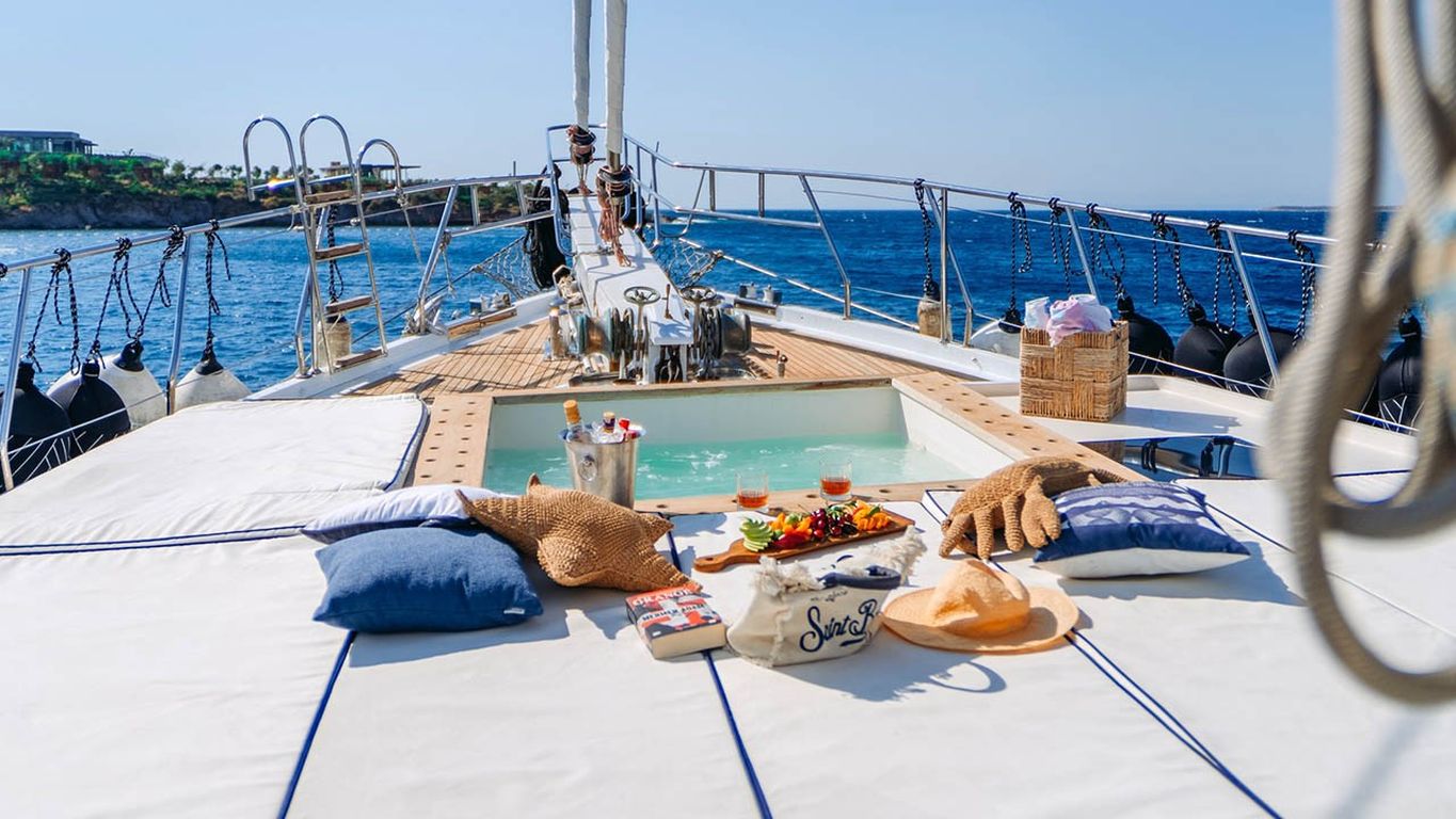 | Гулет S4 — впечатляющий роскошный гулет длиной 35 м. Построен в 2003 году, полностью рефитован к сезону 2024. Пять кают — одна мастер и четыре дабл — максимум 10 гостей. Ширина 7,10 м — просторные каюты, безупречные интерьеры и обширные палубы. На борту: матрасы для загара, теневые лаунжи, столовая аль-фреско. Элегантный салон включает столовую, зону отдыха и полностью оснащённый камбуз. Вода и спорт: тузик 60 л.с., SUP, водные лыжи, ринго, каноэ, снаряжение для сноркелинга и рыбалки — идеален для активных групп. Силовая часть: два Caterpillar по 450 л.с., два генератора по 22,5 кВА; крейсерская 9 узлов. Кондиционирование 24/7; электросети 12V/24V/220V. S4 подойдёт тем, кто ищет современный, недавно обновлённый роскошный гулет с полным набором водных развлечений и просторным комфортом. |
