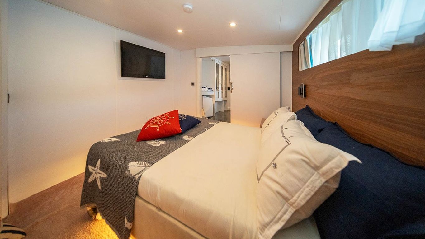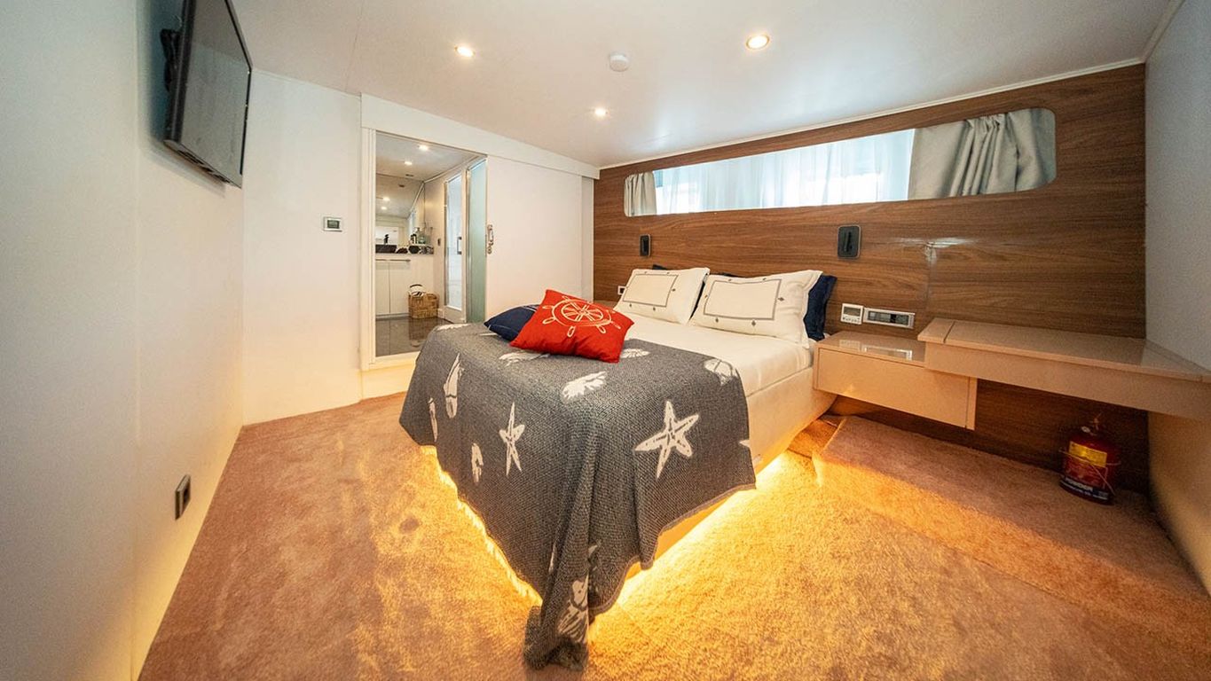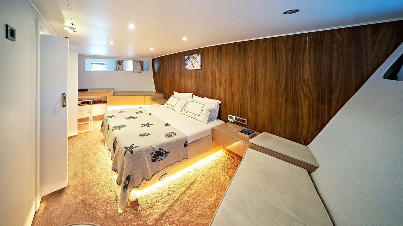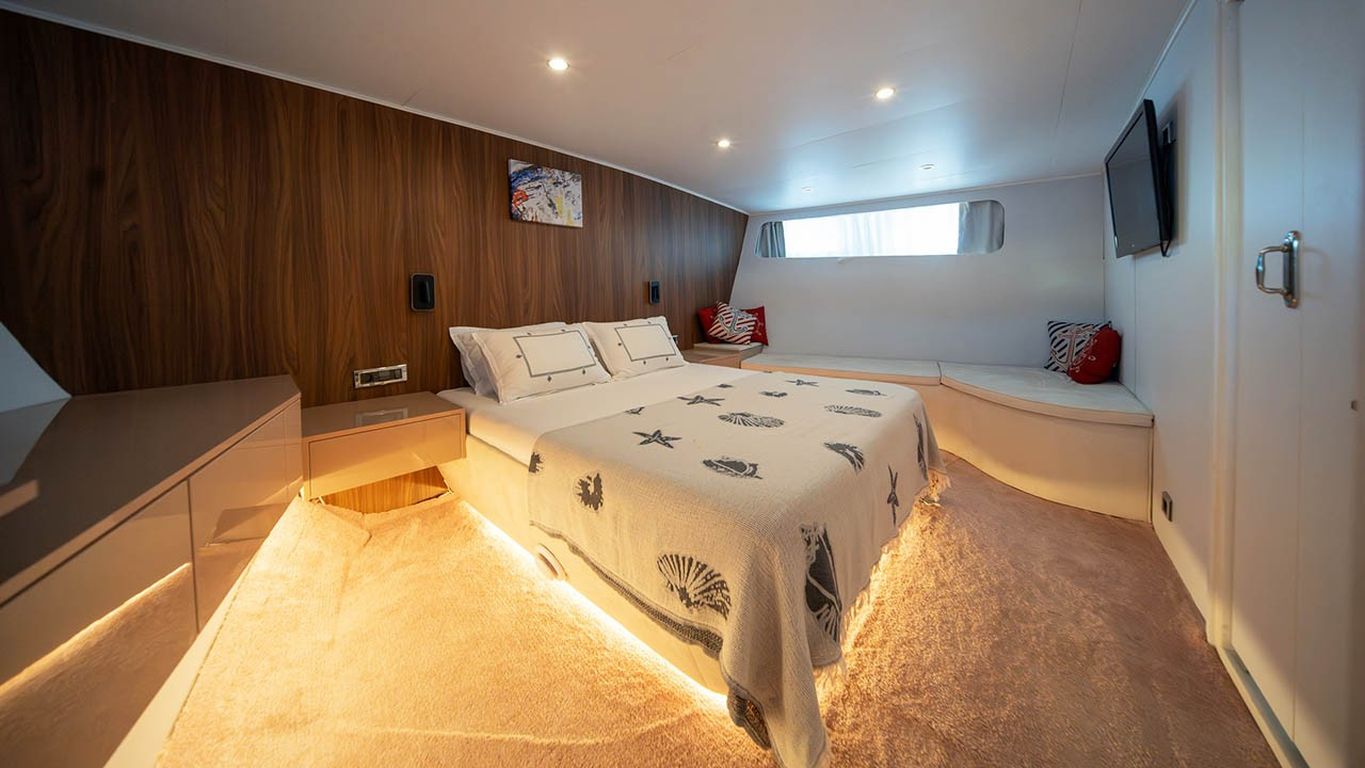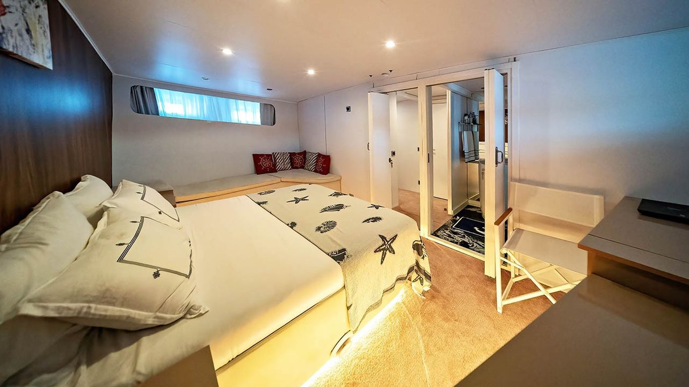 Вместимость до 10 гостей; 1 главная каюта, 4 двухместные каюты, душевая кабина и туалеты во всех каютах, отдельные каюты для экипажа. |
