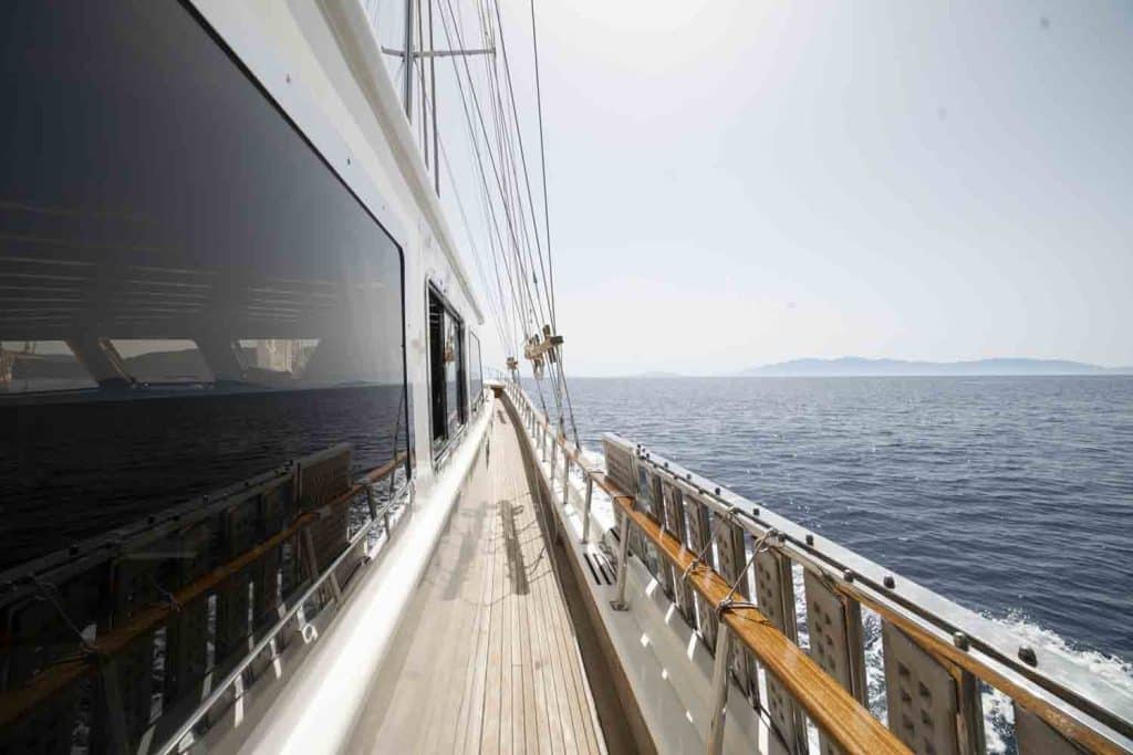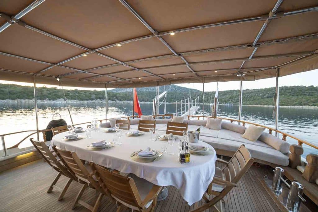 Наша 34-метровая Гулет и яхта Torini была построена в 2000 году. Она обрела свой окончательный вид после реконструкции и обновления, которые она прошла в 2020 году. На нашей лодке 5 кают, включая 1 Master, 2 Double и 2 Twin Cabins, каждая из которых более стильная и удобная, с собственным душем, туалетом и кондиционером. 4 Есть отдельные жилые зоны, полностью оборудованная кухня, обеденные зоны в помещении и на открытом воздухе и зоны отдыха для экипажа. Есть подушки для загара, стулья и сервировочные наборы, достаточные для всех гостей. Гулет и яхта Torini, благодаря своему полноценному радио, навигационному оборудованию GSM Telephone; Бодрум, Гёджек, Мармарис, Фетхие и т. д. Вы можете безопасно плавать в наших синих круизных направлениях.