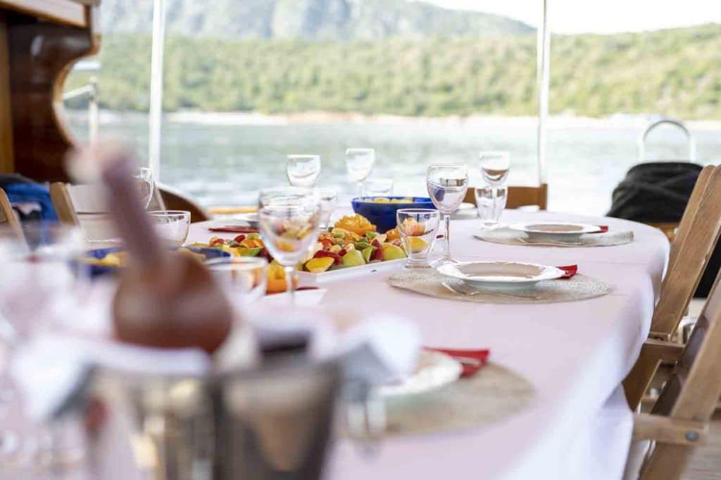 ЖК-телевизор, DVD-плеер и стереосистема к услугам наших уважаемых гостей синего вояжа в салоне нашего Гулета и яхты. Водные виды спорта, такие как каноэ, дайвинг, виндсерфинг, доступны нашим гостям по их желанию. Наша лодка также предлагает развлечения и возможность отдохнуть на лодке для наших пассажиров, которые хотят насладиться Голубым круизом по нетронутым бухтам Турции. Гулет и яхта Torini готова приветствовать наших уважаемых гостей, которые рассматривают возможность аренды Гулета и яхты на неделю в регионах Бодрум, Гёджек, Фетхие, Мармарис, Гёкова.