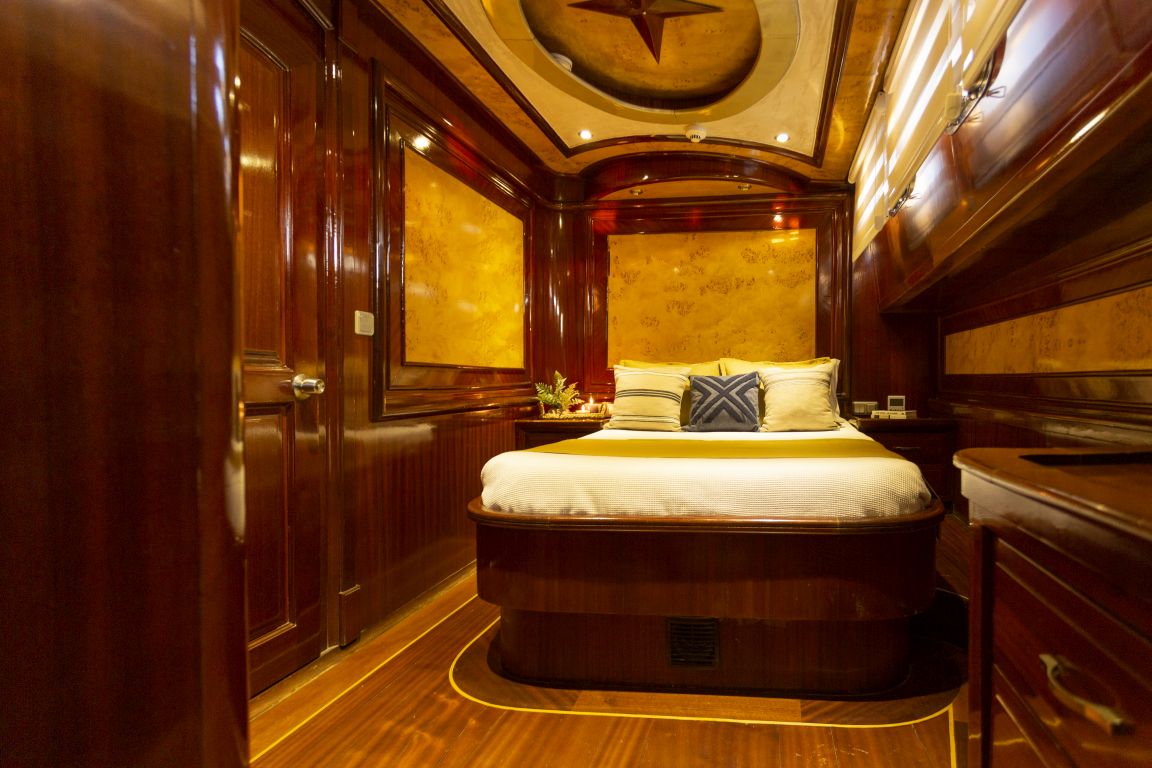Общая вместимость гостей: 10, 1 Master Cabins: двуспальная кровать размера Queen Size с ванной комнатой, кондиционер, телевизор с плоским экраном 2 Twin Cabins: две односпальные кровати размера Twin Size с ванной комнатой, телевизор с плоским экраном 2 Double Cabin: ванная комната, телевизор с плоским экраном, односпальные кровати Обеденные зоны: главный салон и солнечная терраса с кондиционером Крытая зона для коктейлей на кормовой палубе: большая зона для коктейлей с местами для сидения в носовом салоне. Оборудование: телевизор с плоским экраном, DVD, Hi-Fi Pioneer с разъемами для iPod, iPhone и ноутбука. Wi-Fi: 4G. Телевизор: спутниковый (Raymarine), Apple TV. |