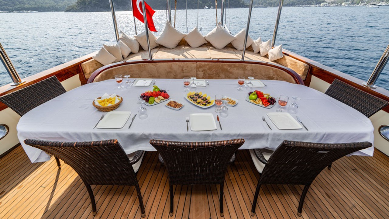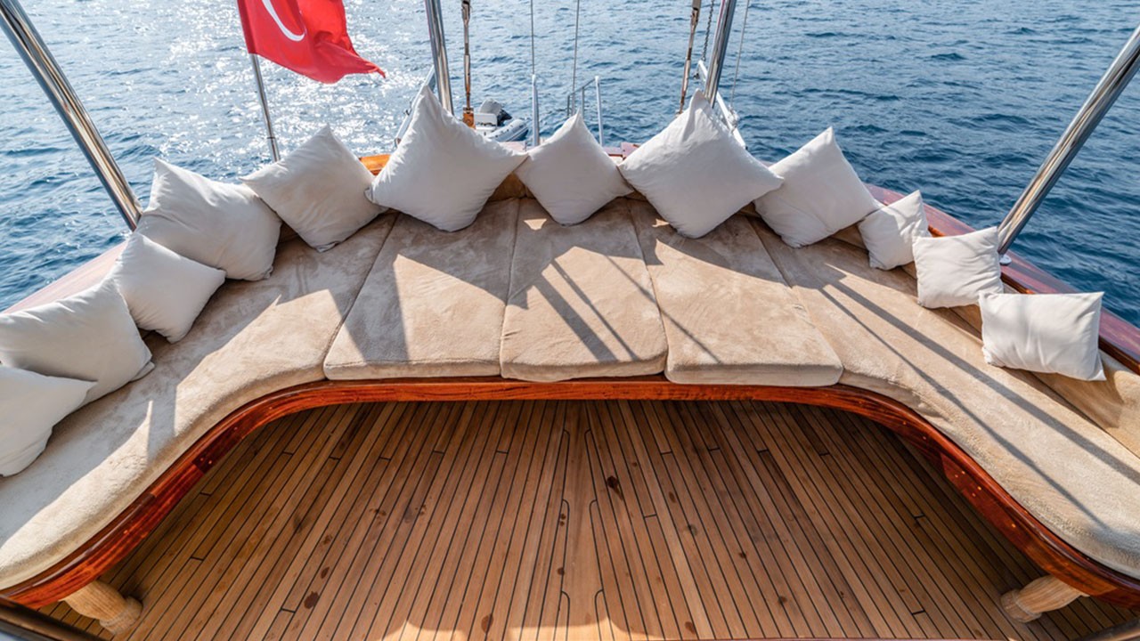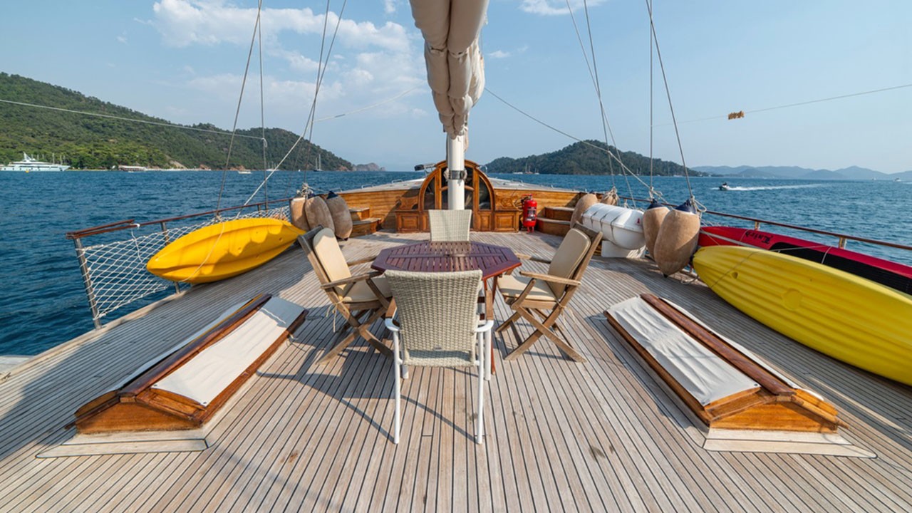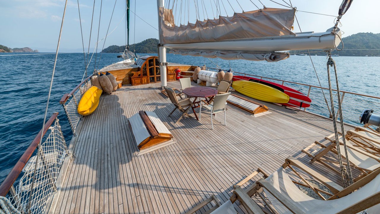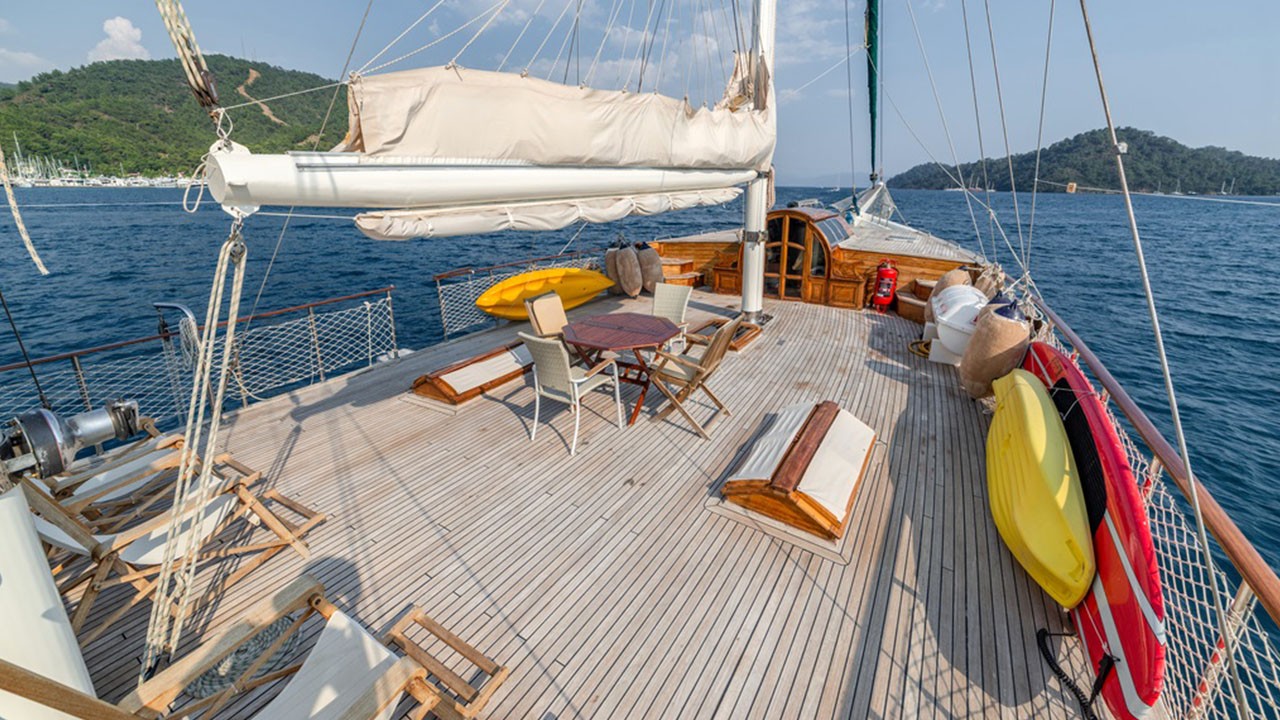 | Гулет Amazon Solo — 31 м, построен в 1997 г., рефит 2020-го. На борту 6 кают: 2 мастер, 2 дабл и 2 твин; всего до 12 гостей. Все каюты со своими удобствами и стильной отделкой. Палуба — с теневыми обеденными зонами, лаунжами и местами для загара. В салоне — обеденный стол и кухня. Оснащение: тузик Yamaha 50 л.с., SUP-доска, водные лыжи, ринго, каноэ, снаряжение для сноркелинга и рыбалки. Техника: двигатель Caterpillar 542 л.с., генераторы 22 + 16 кВА, крейсерская скорость 10 узлов. Кондиционер доступен 12 часов в день. Amazon Solo — отличный вариант для комфортного и спокойного отдыха на море. |