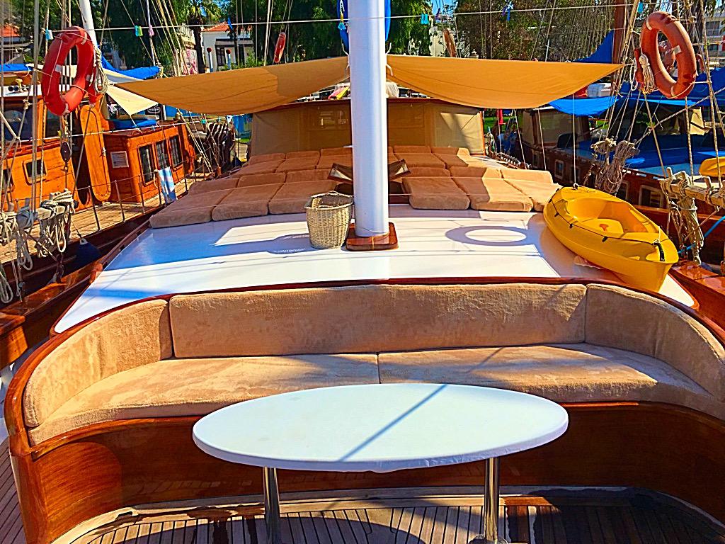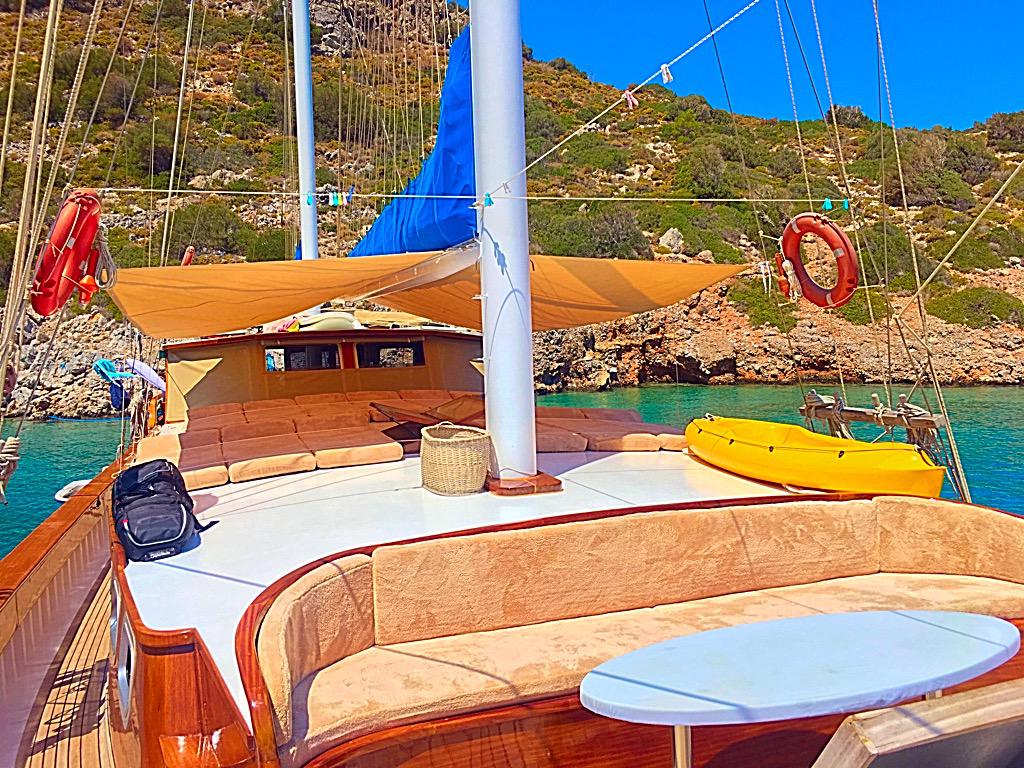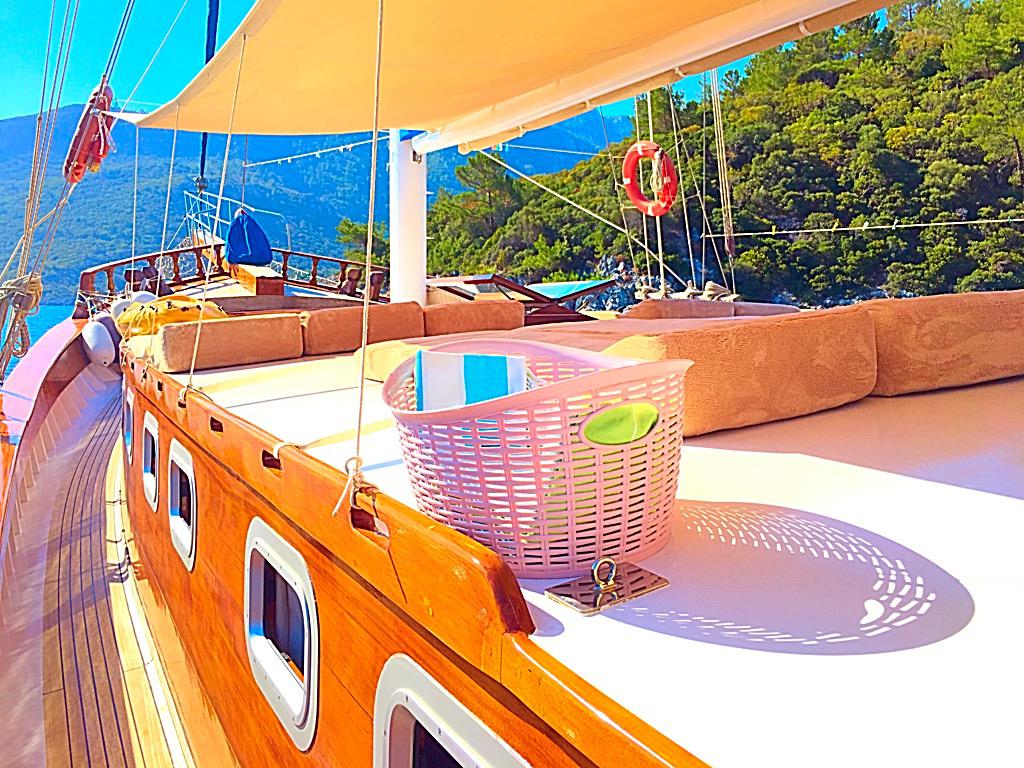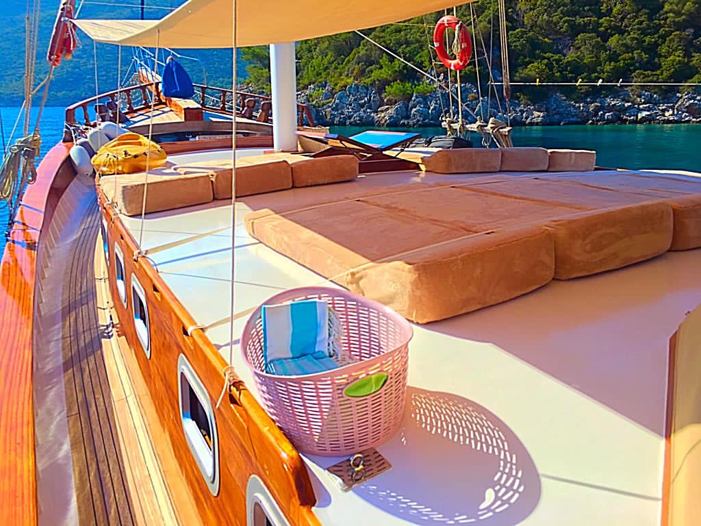 Есть каноэ, трубки, маски, ласты и простые рыболовные снасти, чтобы сделать время, проведенное вами в море, более приятным, а чтобы сделать время, проведенное вами на палубе, более веселым, есть набор для игры в рамми, нарды, игральные карты, DVD-плеер, музыкальная система и кондиционер. Наш опытный персонал на лодке будет к вашим услугам для приготовления пищи, обслуживания, ежедневной уборки и решения всех вопросов, которые могут вам понадобиться во время синего путешествия. Его капитан и команда, имеющие опыт в парусном спорте, отправятся в плавание, когда позволит погода, и вы сможете насладиться удовольствием от парусного синего круиза по Эгейскому морю. Чтобы испытать экономичный и приятный синий круиз по турецким территориальным водам, мы приглашаем вас в синее путешествие на нашей Гулет и яхта Askim Deniz.