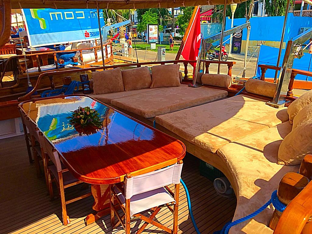 Askim Deniz Гулет и яхта была выпущена в 1997 и отремонтирована по новым технологиям в 2012 году. Она предлагает вам тур Blue Voyage длиной 23 метра. Есть 6 двухместных кают, каждая с собственным душем, туалетом и кондиционером. Вы можете спланировать приятный и развлекательный синий круизный отпуск на нашей лодке Askim Deniz по любому из маршрутов Бодрума, Гёджека, Мармариса и Фетхие. Наша лодка Askim Deniz имеет отдельные обеденные зоны на палубе и в гостиной, полностью оборудованную кухню, американский бар и отдельные жилые зоны для экипажа. На палубе есть зоны для загара, где могут легко загорать 12 человек.