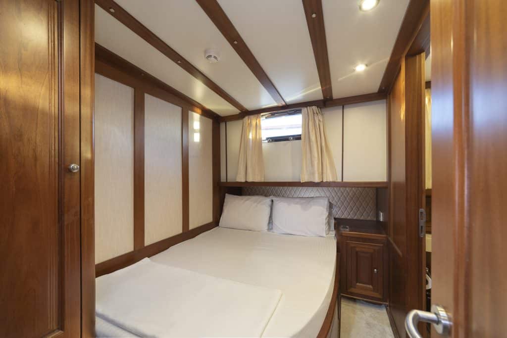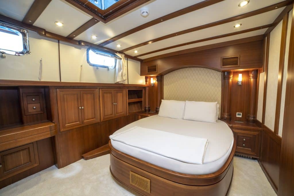 ASN Гулет и яхта была выпущена в 1998 году и Отремонтированный по новым технологиям в 2012 году. Его длина составляет 33 метра, он предлагает вам тур «голубой круиз». На борту есть 6 двухместных кают, каждая с собственным душем, туалетом и кондиционером. Вы можете спланировать приятный и развлекательный отдых в «голубом круизе» по любому из маршрутов Бодрума, Гёджека, Мармариса и Фетхие на нашей лодке ASN. На нашей лодке ASN есть отдельные обеденные зоны на палубе и в гостиной, полностью оборудованная кухня, американский бар и отдельные жилые зоны для экипажа. На палубе есть зоны для загара, где могут легко загорать 12 человек.
