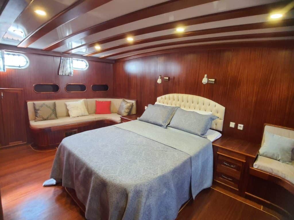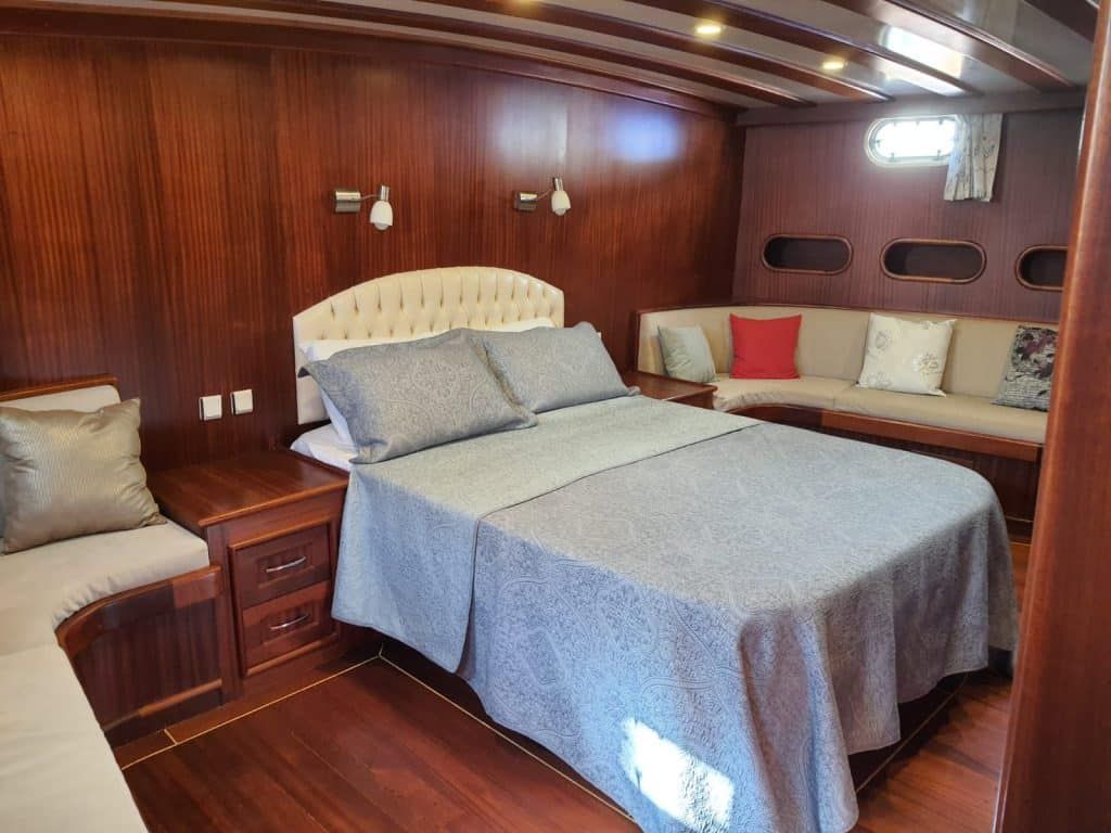 Есть каноэ, трубки, маски, ласты и простые рыболовные снасти, чтобы сделать время, проведенное вами в море, более приятным, а чтобы сделать время, проведенное вами на палубе, более веселым, есть набор для игры в рамми, нарды, игральные карты, DVD-плеер, музыкальная система и кондиционер. Наши сотрудники на лодке, с их опытом, будут к вашим услугам для приготовления пищи, обслуживания, ежедневной уборки и всех вопросов, которые могут вам понадобиться во время синего путешествия. Его капитан и команда, имеющие опыт в парусном спорте, отправятся в плавание, когда позволит погода, и вы сможете насладиться синим круизом по Эгейскому морю. Чтобы насладиться экономичным и приятным синим туром по турецким территориальным водам, мы приглашаем вас в синее путешествие на нашем Cagan Гулет и яхта.