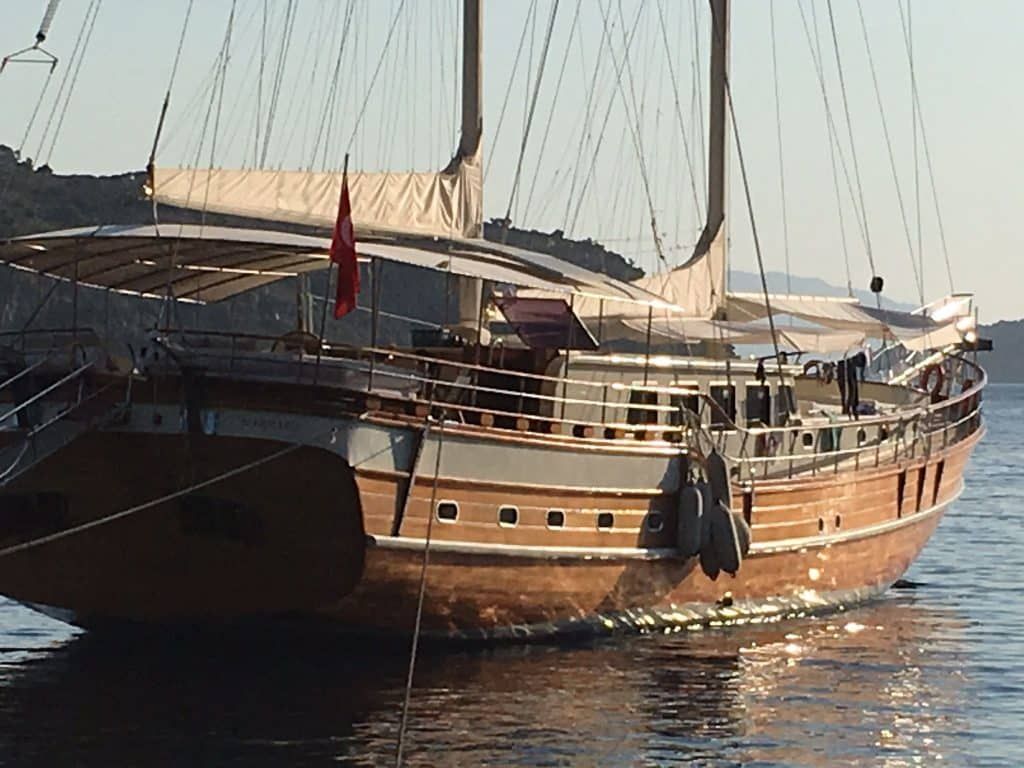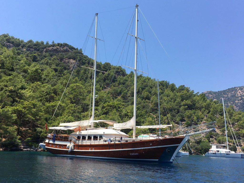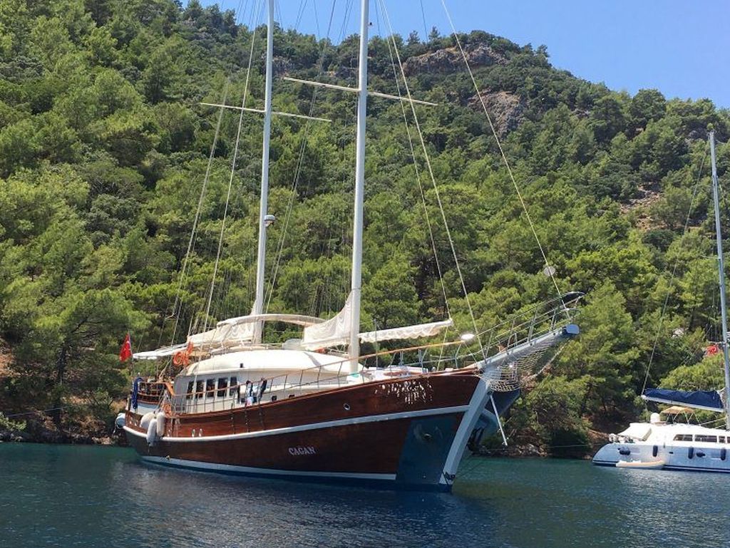 Cagan Гулет и яхта была выпущена в 2015 году. Он предлагает вам тур Blue Voyage длиной 30 метров. Есть 6 двухместных кают, каждая с собственным душем, туалетом и кондиционером. Вы можете спланировать приятный и развлекательный синий круизный отпуск на нашей лодке Cagan по любому из маршрутов Бодрум, Гёджек, Мармарис, Фетхие. Наша лодка Cagan имеет отдельные обеденные зоны на палубе и в гостиной, полностью оборудованную кухню, американский бар и отдельные жилые зоны для экипажа. На палубе есть зоны для загара, где 12 человек могут легко загорать.