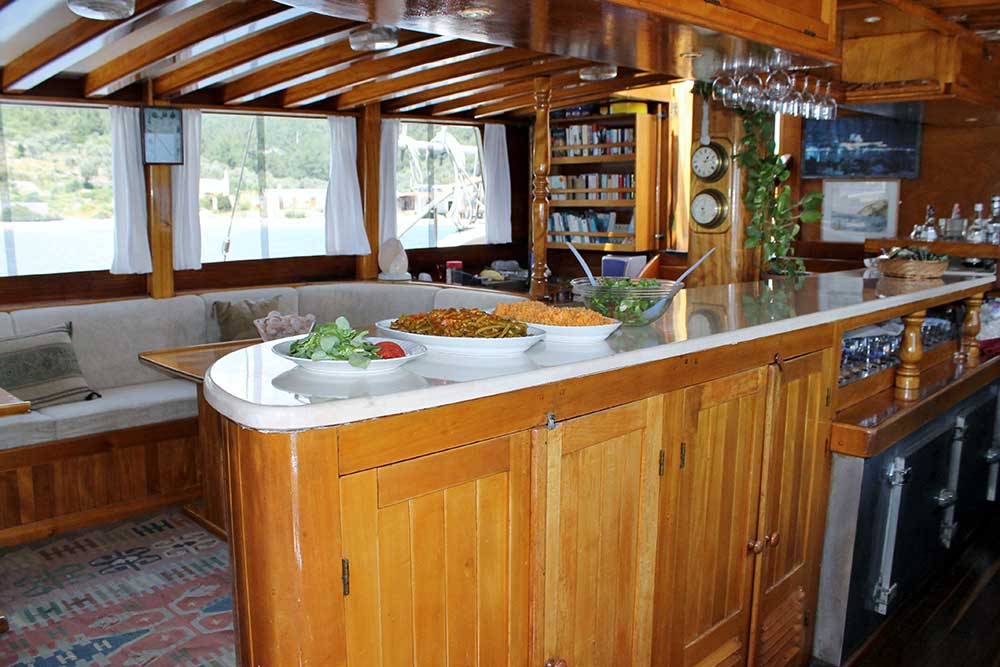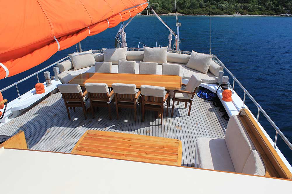 Есть каноэ, трубки, маски, ласты и простые рыболовные снасти, чтобы сделать время, проведенное вами в море, более приятным, а чтобы сделать время, проведенное вами на палубе, более веселым, есть набор для игры в рамми, нарды, игральные карты, DVD-плеер, музыкальная система и кондиционер. Наш персонал на лодке, с его опытом, будет к вашим услугам для приготовления пищи, обслуживания, ежедневной уборки и всех вопросов, которые могут вам понадобиться во время синего путешествия. Его капитан и команда, имеющие опыт в парусном спорте, будут плавать, когда позволит погода, и вы сможете испытать удовольствие от парусного синего круиза по Эгейскому морю. Чтобы насладиться экономичным и приятным синим круизом в турецких территориальных водах, мы приглашаем вас в синее путешествие на нашей яхте Cevri Hasan 3 Гулет и яхта.