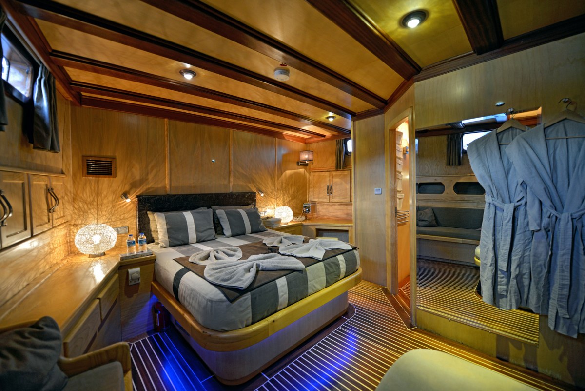Есть каноэ, трубки, маски, ласты и простые рыболовные снасти, чтобы сделать время, проведенное вами в море, более приятным, а чтобы сделать время, проведенное вами на палубе, более веселым, есть набор для игры в рамми, нарды, игральные карты, DVD-плеер, музыкальная система и кондиционер. Наш опытный персонал на лодке будет к вашим услугам для приготовления пищи, обслуживания, ежедневной уборки и решения всех вопросов, которые могут вам понадобиться во время синего путешествия. Его капитан и команда, имеющие опыт в парусном спорте, отправятся в плавание, когда позволит погода, и вы сможете насладиться удовольствием от парусного синего круиза по Эгейскому морю. Чтобы испытать экономичный и приятный синий тур в турецких территориальных водах, мы приглашаем вас в синее путешествие на нашем Deep Sea Гулет и яхта.