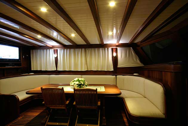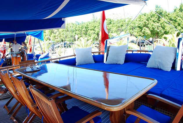 Есть каноэ, трубки, маски, ласты и простые рыболовные снасти, чтобы сделать время, проведенное вами в море, более приятным, а чтобы сделать время, проведенное вами на палубе, более веселым, есть набор для игры в рамми, нарды, игральные карты, DVD-плеер, музыкальная система и кондиционер. Наш опытный персонал на лодке будет к вашим услугам для приготовления пищи, обслуживания, ежедневной уборки и всех вопросов, которые могут вам понадобиться во время синего путешествия. Его капитан и команда, имеющие опыт в парусном спорте, отправятся в плавание, когда позволит погода, и вы сможете испытать удовольствие от парусного синего круиза по Эгейскому морю. Чтобы испытать экономичный и приятный синий тур в турецких территориальных водах, мы приглашаем вас в синее путешествие на нашем Гулет и яхта Enderim.