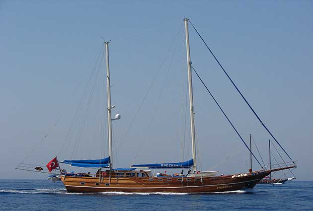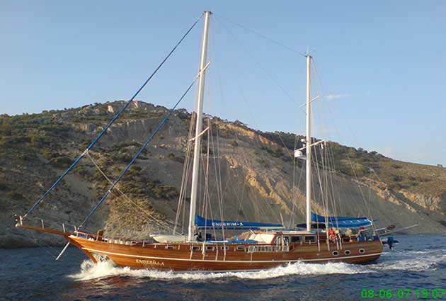 Гулет и яхта Enderim была выпущена в 2006. Он предлагает вам тур Blue Voyage длиной 29 метров. Есть 6 двухместных кают, каждая с собственным душем, туалетом и кондиционером. Вы можете спланировать приятный и развлекательный круиз Blue Cruise на нашей лодке Enderim по любому из маршрутов Бодрума, Гёджека, Мармариса и Фетхие. Наша лодка Enderim имеет отдельные обеденные зоны на палубе и в гостиной, полностью оборудованную кухню, американский бар и отдельные жилые зоны для экипажа. На палубе есть зоны для загара, где могут легко загорать 12 человек.