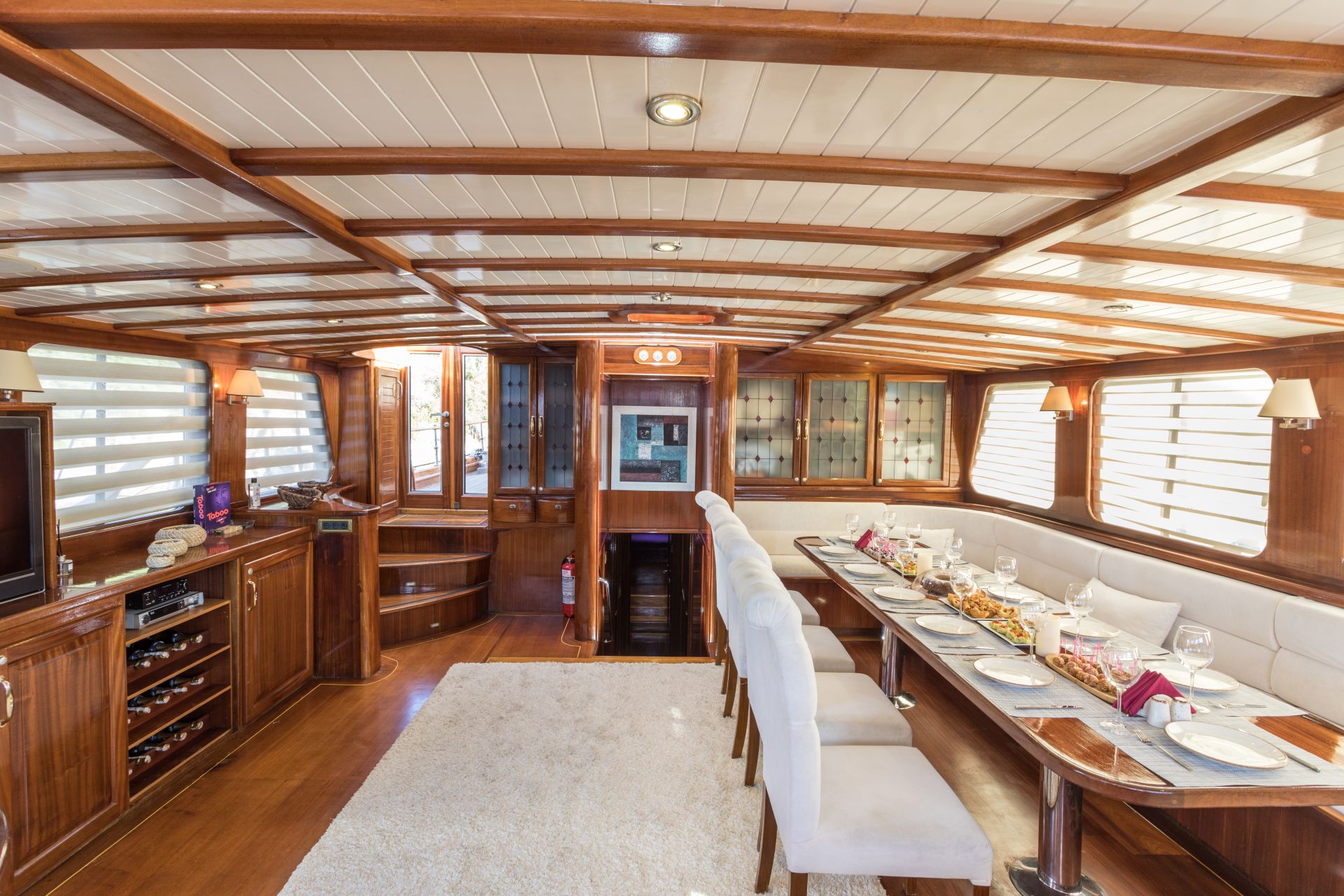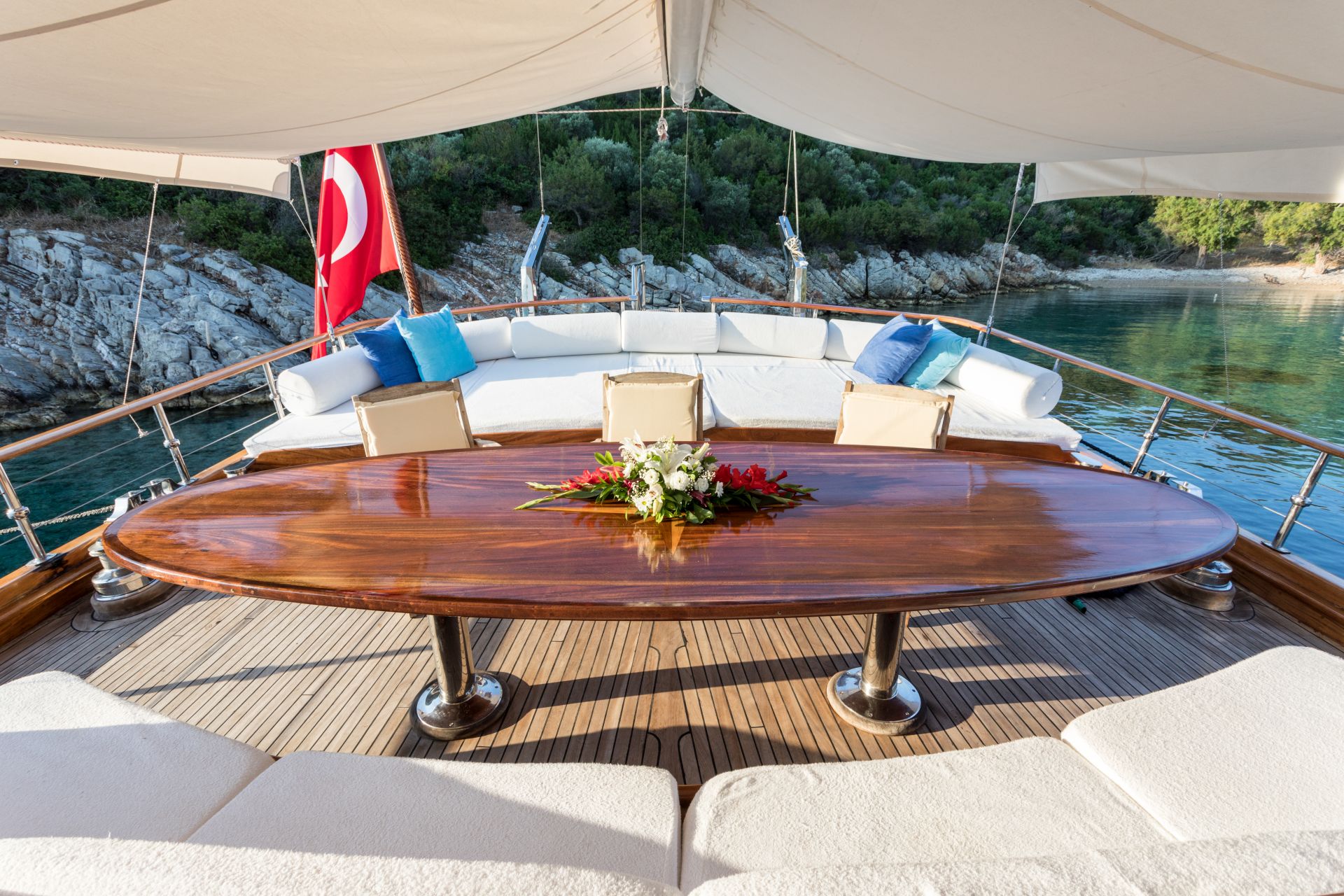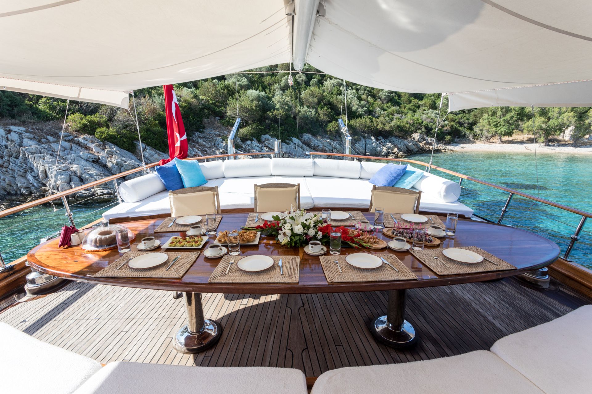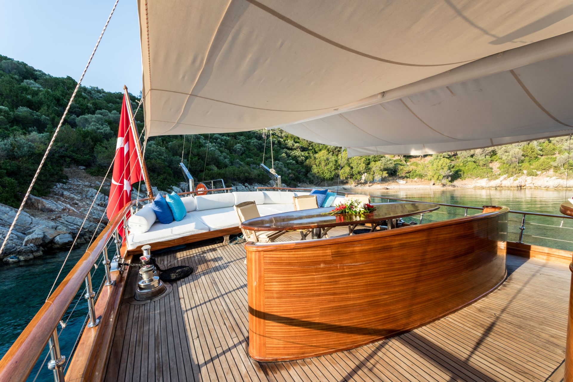 Есть каноэ, трубки, маски, ласты и простые рыболовные снасти, чтобы сделать время, проведенное вами в море, более приятным, а чтобы сделать время, проведенное вами на палубе, более веселым, есть набор для игры в рамми, нарды, игральные карты, DVD-плеер, музыкальная система и кондиционер. Наши сотрудники на лодке, с их опытом, будут к вашим услугам для приготовления пищи, обслуживания, ежедневной уборки и всех вопросов, которые могут вам понадобиться во время синего путешествия. Его капитан и команда, имеющие опыт в парусном спорте, отправятся в плавание, когда позволит погода, и вы сможете насладиться синим круизом по Эгейскому морю. Чтобы насладиться экономичным и приятным синим туром в турецких территориальных водах, мы приглашаем вас в синее путешествие на нашей Гулет и яхте Grace 1.