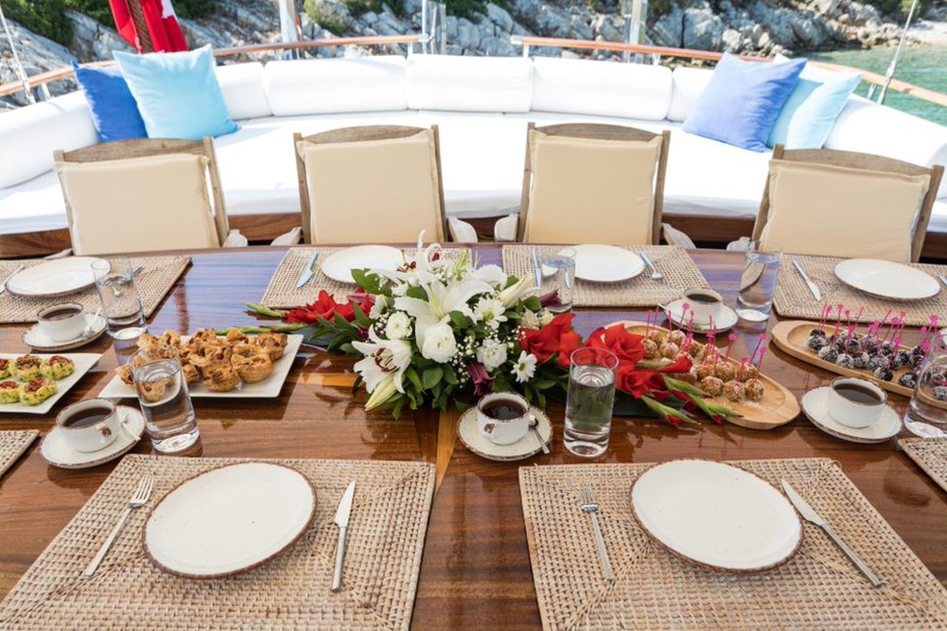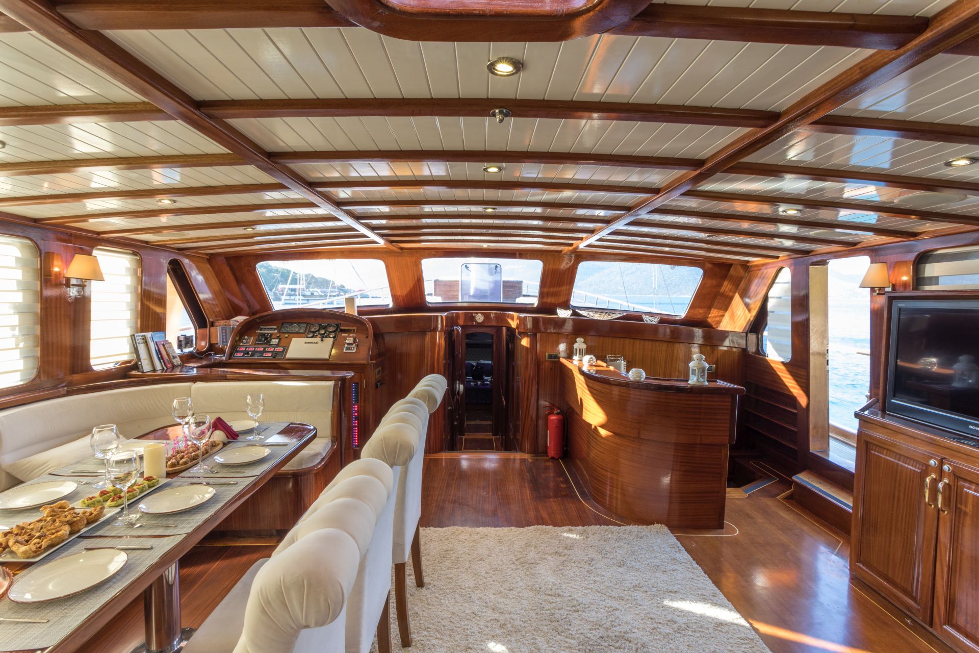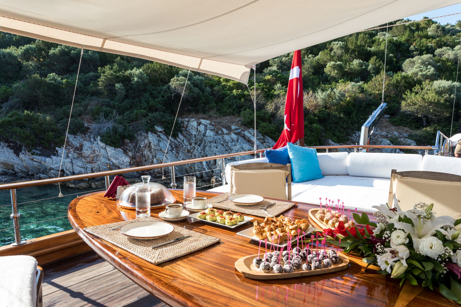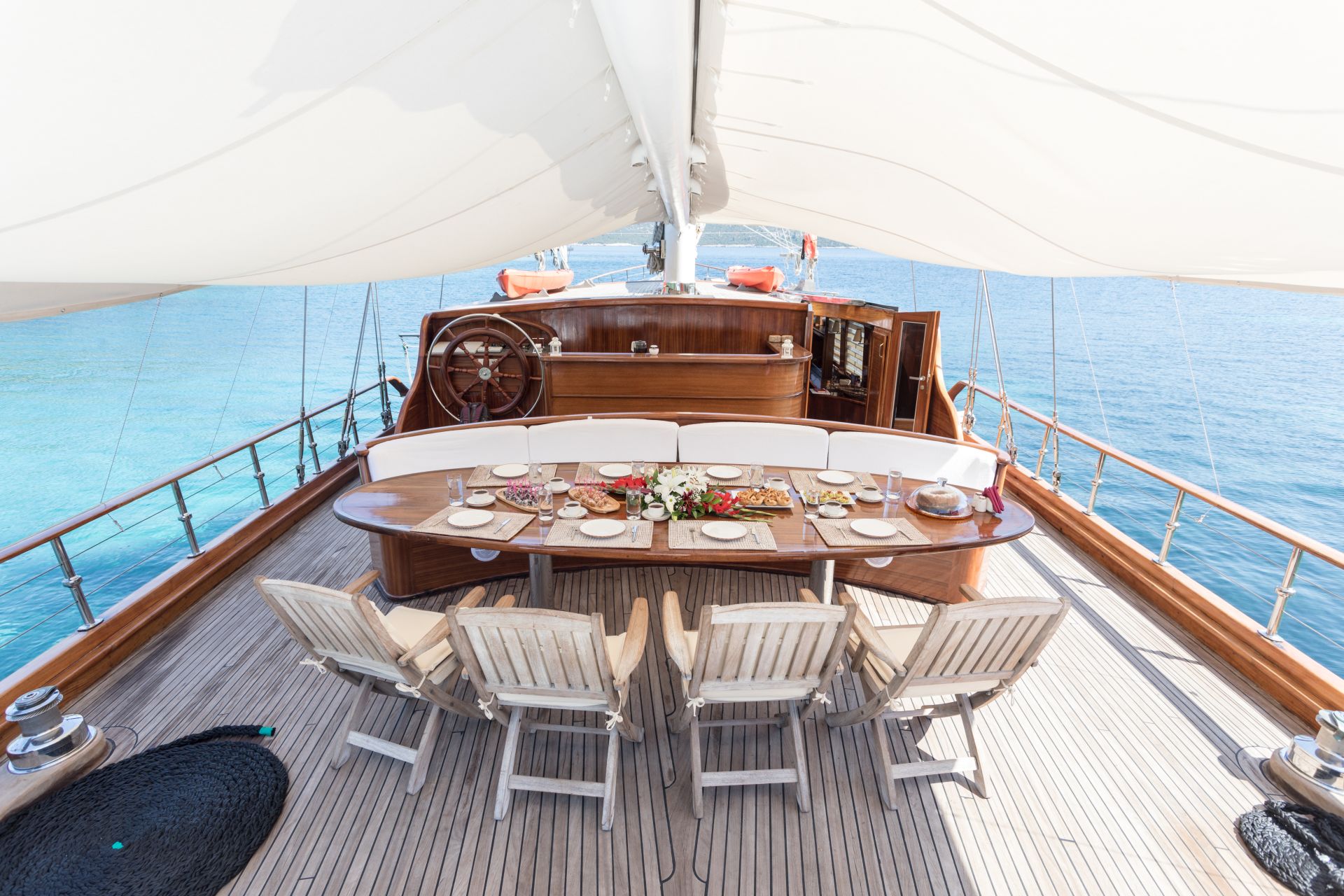Есть каноэ, трубки, маски, ласты и простые рыболовные снасти, чтобы сделать время, проведенное вами в море, более приятным, а чтобы сделать время, проведенное вами на палубе, более веселым, есть набор для игры в рамми, нарды, игральные карты, DVD-плеер, музыкальная система и кондиционер. Наши сотрудники на лодке, с их опытом, будут к вашим услугам для приготовления пищи, обслуживания, ежедневной уборки и всех вопросов, которые могут вам понадобиться во время синего путешествия. Его капитан и команда, имеющие опыт в парусном спорте, отправятся в плавание, когда позволит погода, и вы сможете насладиться синим круизом по Эгейскому морю. Чтобы насладиться экономичным и приятным синим туром в турецких территориальных водах, мы приглашаем вас в синее путешествие на нашей Гулет и яхте Grace 1.