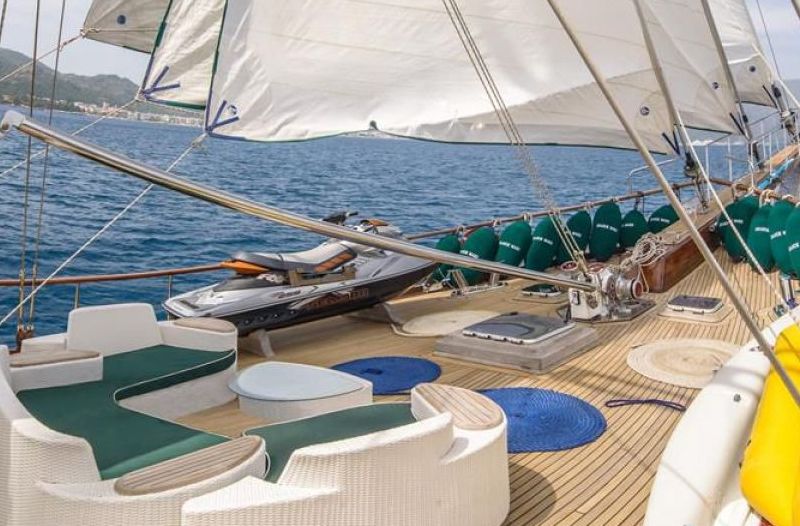 Есть каноэ, трубки, маски, ласты и простые рыболовные снасти, чтобы сделать время, проведенное вами в море, более приятным, а чтобы сделать время, проведенное вами на палубе, более веселым, есть набор для игры в рамми, нарды, игральные карты, DVD-плеер, музыкальная система и кондиционер. Наш опытный персонал на лодке будет к вашим услугам для приготовления пищи, обслуживания, ежедневной уборки и всех вопросов, которые могут вам понадобиться во время синего путешествия. Его капитан и команда, имеющие опыт в парусном спорте, отправятся в плавание, когда позволит погода, и вы сможете испытать удовольствие от парусного синего круиза по Эгейскому морю. Чтобы испытать экономичный и приятный синий тур в турецких территориальных водах, мы приглашаем вас в синее путешествие на нашей Grande Mare Гулет и яхта.