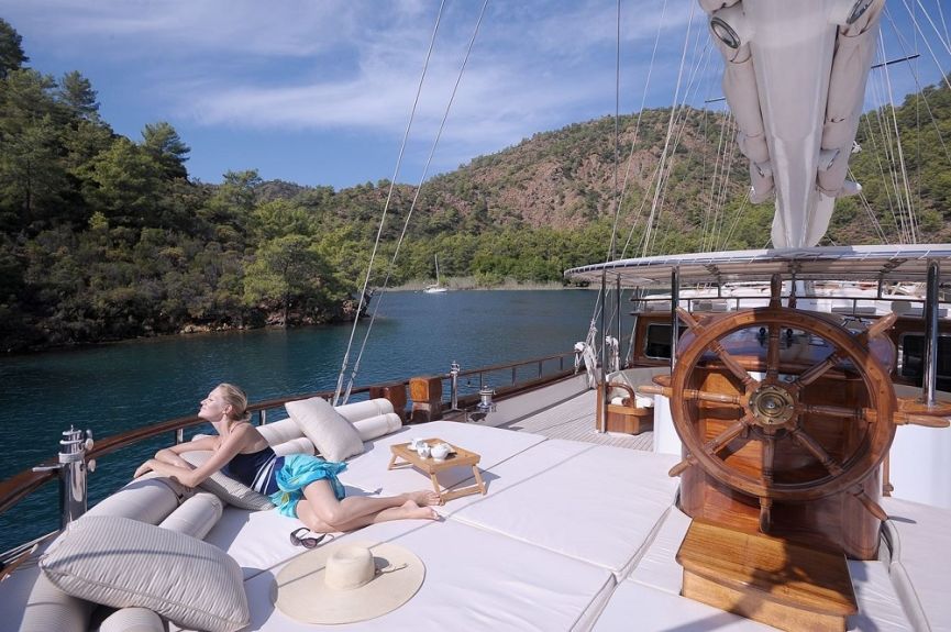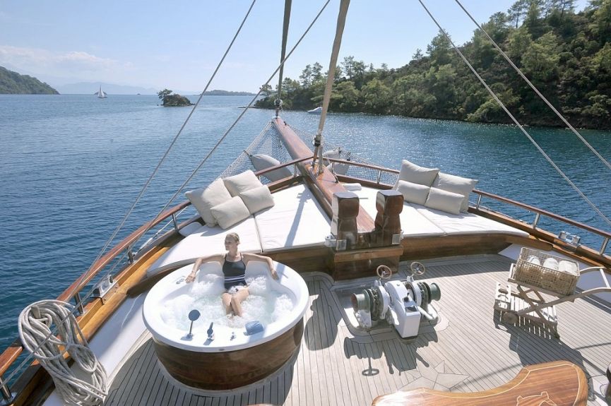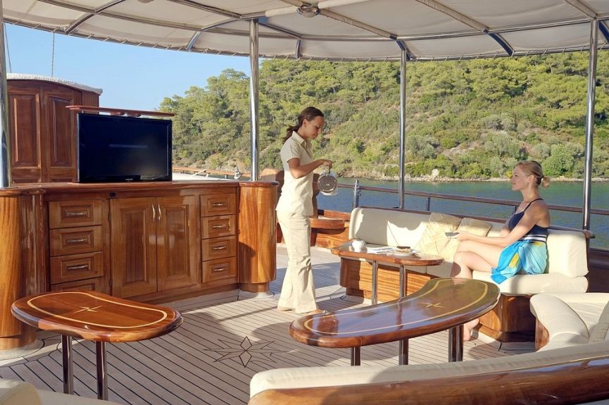 Есть каноэ, трубки, маски, ласты и простые рыболовные снасти, чтобы сделать время, проведенное вами в море, более приятным, а чтобы сделать время, проведенное вами на палубе, более веселым, есть набор для игры в рамми, нарды, игральные карты, DVD-плеер, музыкальная система и кондиционер. Наш опытный персонал на лодке будет к вашим услугам для приготовления пищи, обслуживания, ежедневной уборки и всех вопросов, которые могут вам понадобиться во время синего путешествия. Его капитан и команда, имеющие опыт в парусном спорте, отправятся в плавание, когда позволит погода, и вы сможете испытать удовольствие от парусного синего круиза по Эгейскому морю. Чтобы испытать экономичный и приятный синий тур в турецких территориальных водах, мы приглашаем вас в синее путешествие под парусом с нашим капитаном Кадиром Гулет и яхта.