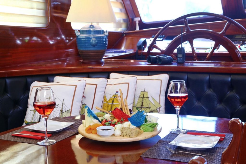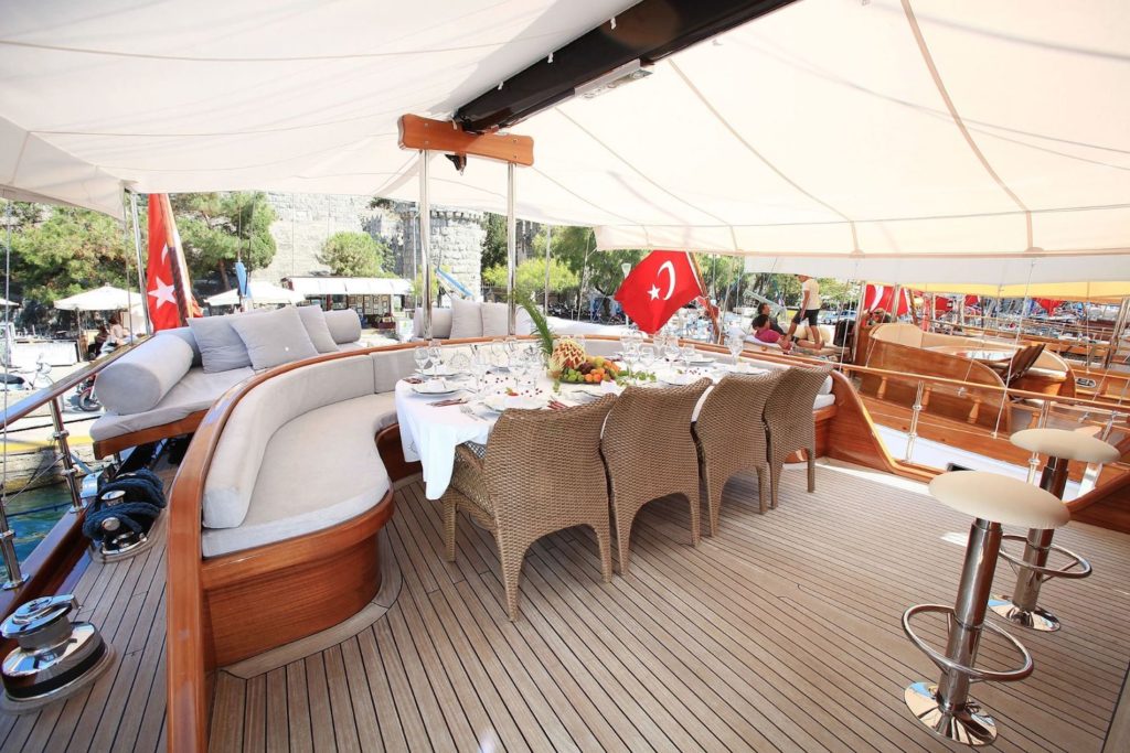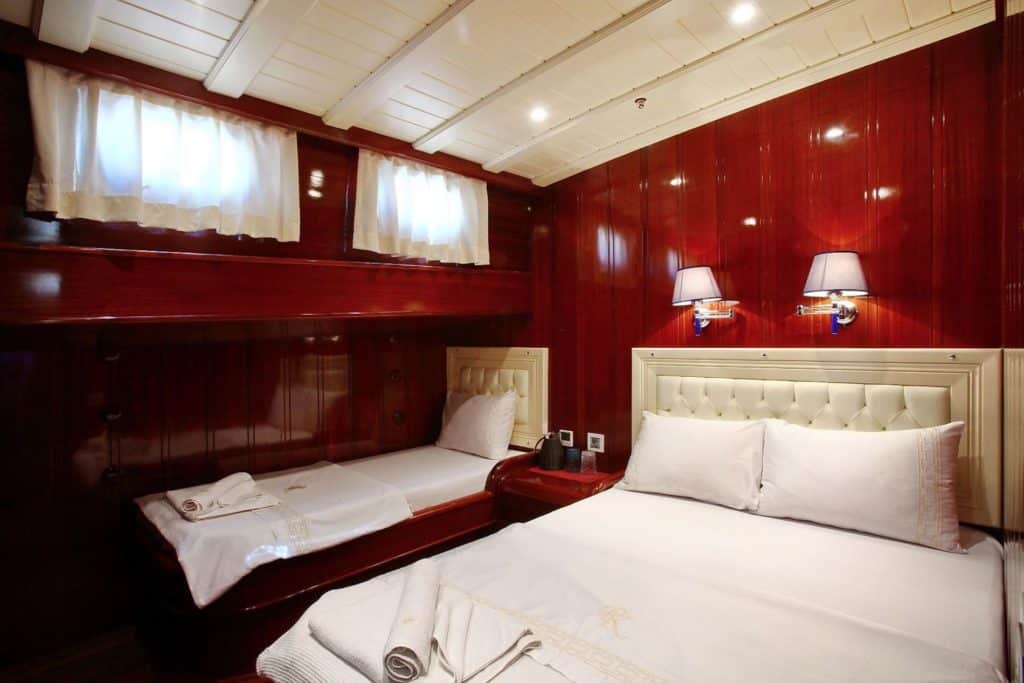 Есть каноэ, трубки, маски, ласты и простые рыболовные снасти, чтобы сделать время, проведенное вами в море, более приятным, а чтобы сделать время, проведенное вами на палубе, более веселым, есть набор для игры в рамми, нарды, игральные карты, DVD-плеер, музыкальная система и кондиционер. Наш опытный персонал на лодке будет к вашим услугам для приготовления пищи, обслуживания, ежедневной уборки и решения всех вопросов, которые могут вам понадобиться во время синего путешествия. Его капитан и команда, имеющие опыт в парусном спорте, отправятся в плавание, когда позволит погода, и вы сможете испытать удовольствие от парусного синего круиза по Эгейскому морю. Чтобы испытать экономичный и приятный синий круиз по турецким территориальным водам, мы приглашаем вас в синее путешествие на нашей яхте Kaya Guneri Plus.