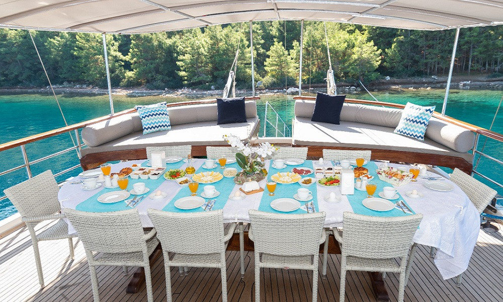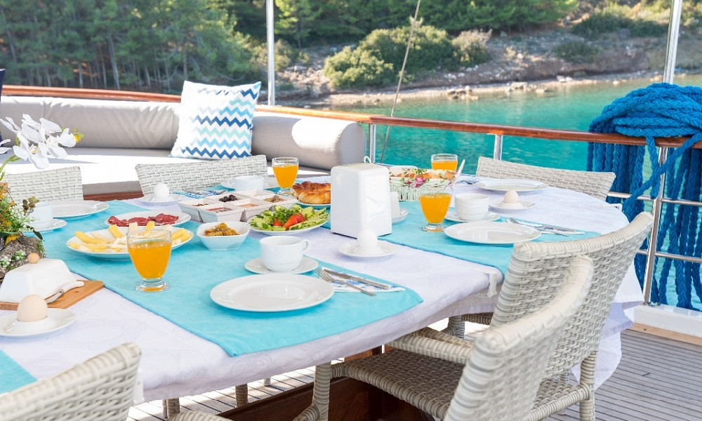 Есть каноэ, трубки, маски, ласты и простые рыболовные снасти, чтобы сделать время, проведенное вами в море, более приятным, а чтобы сделать время, проведенное вами на палубе, более веселым, есть набор для игры в рамми, нарды, игральные карты, DVD-плеер, музыкальная система и кондиционер. Наш опытный персонал на лодке будет к вашим услугам для приготовления пищи, обслуживания, ежедневной уборки и решения всех вопросов, которые могут вам понадобиться во время синего путешествия. Его капитан и команда, имеющие опыт в парусном спорте, отправятся в плавание, когда позволит погода, и вы сможете насладиться удовольствием от парусного синего круиза по Эгейскому морю. Чтобы испытать экономичный и приятный синий тур в турецких территориальных водах, мы приглашаем вас в синее путешествие на нашем Koray Aegean Гулет и яхта.