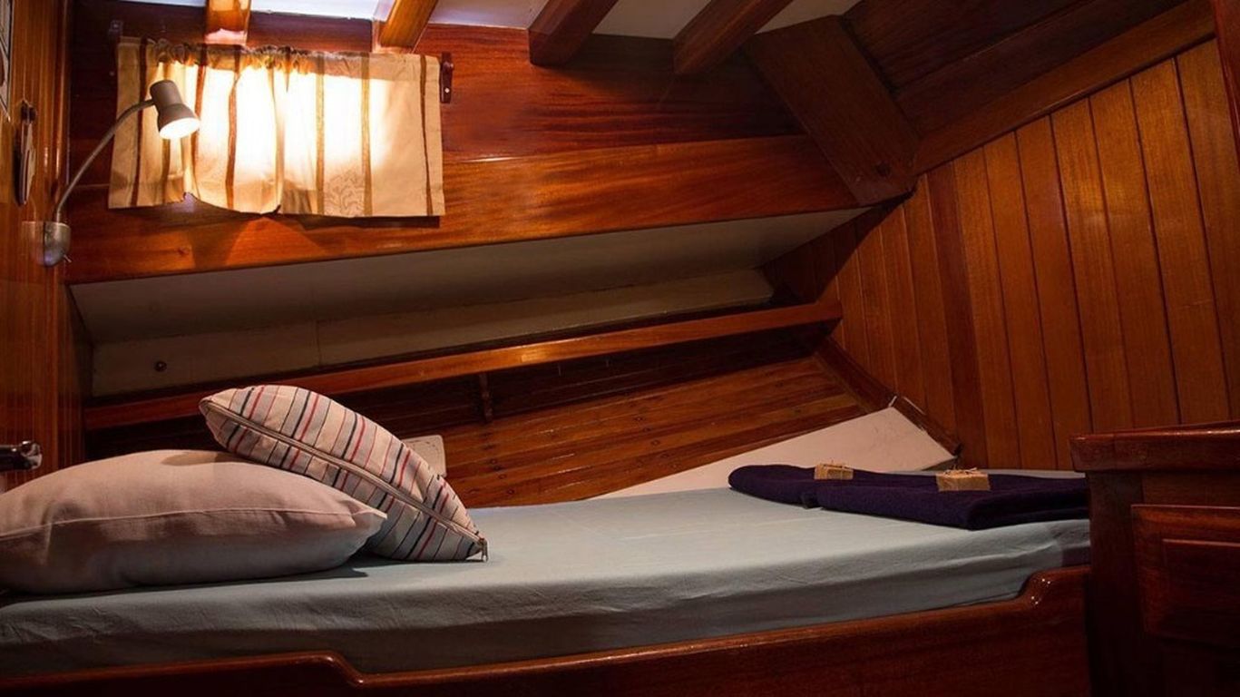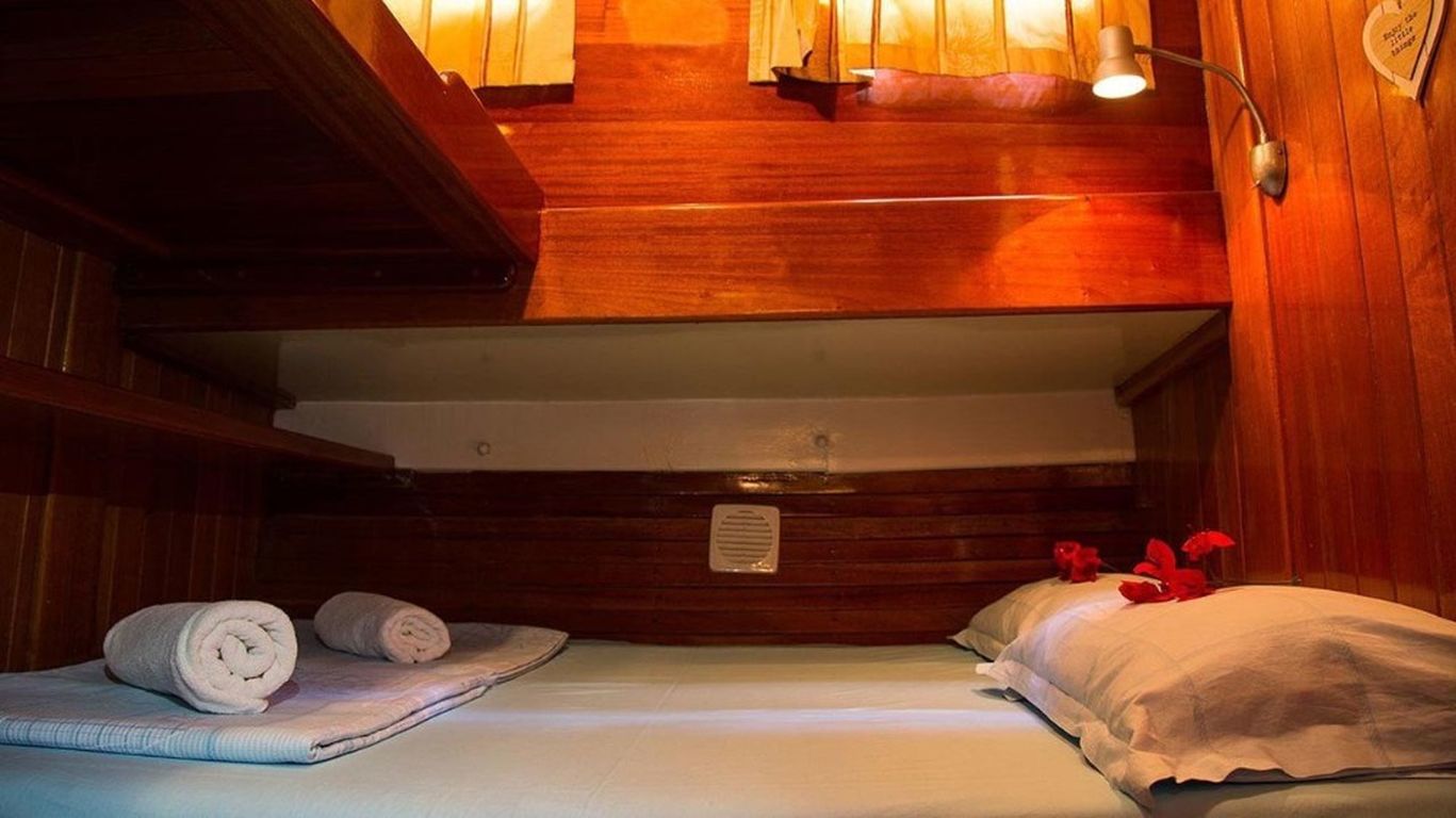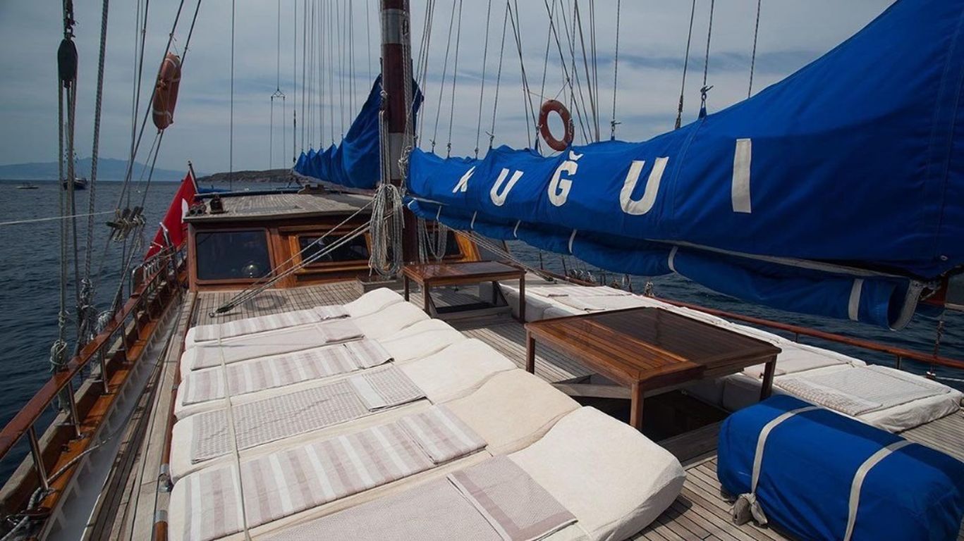 | Гулет Kugu 1 — традиционный деревянный гулет длиной 25 м, построен в 2002 году и рефитован в 2012-м. Предлагает отличное соотношение цены и классического шарма. На борту шесть дабл-кают, каждая с собственным санузлом; размещение до 12 гостей. Ширина 6,30 м обеспечивает достаточное пространство как на палубе, так и в интерьерах. Палубная зона включает теневые и открытые лаунжи, а также большие площадки для загара. Внутренний салон оснащён обеденным столом, удобными диванами и полностью укомплектованной камбузной кухней. Для ценителей активного отдыха на воде предусмотрены тузик с подвесным мотором 9,9 л.с., каноэ, снаряжение для сноркелинга и рыбалки — для приятного и расслабленного времяпрепровождения на море. Силовая часть: двигатель Cummins 280 л.с. и генератор 18 кВА; крейсерская скорость 12 узлов. Электросети 12V/24V/220V; кондиционирование доступно 6 часов в день. Это судно хорошо подходит для групп или семей, желающих недорогой «голубой круиз» с достойными удобствами, комфортом и обилием пространства. |