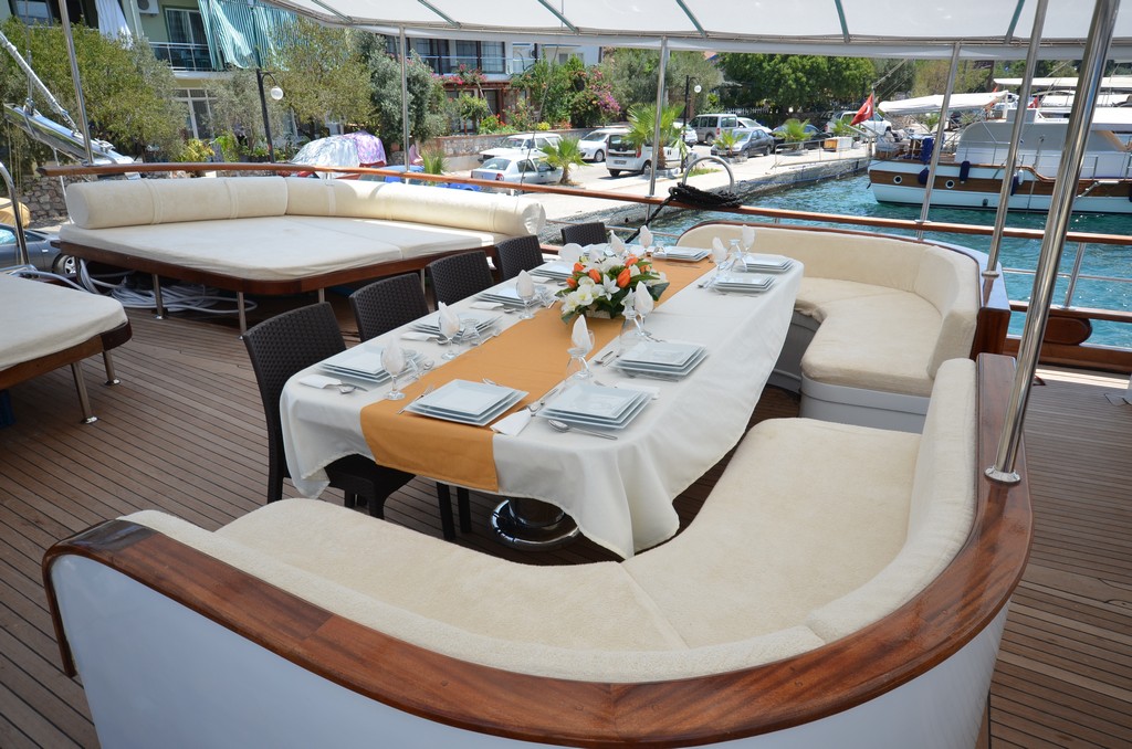 Есть каноэ, трубки, маски, ласты и простые рыболовные снасти, чтобы сделать время, проведенное вами в море, более приятным, а чтобы сделать время, проведенное вами на палубе, более веселым, есть набор для игры в рамми, нарды, игральные карты, DVD-плеер, музыкальная система и кондиционер. Наш опытный персонал на лодке будет к вашим услугам для приготовления пищи, обслуживания, ежедневной уборки и всех вопросов, которые могут вам понадобиться во время синего путешествия. Его капитан и команда, имеющие опыт в парусном спорте, отправятся в плавание, когда позволит погода, и вы сможете испытать удовольствие от парусного синего круиза по Эгейскому морю. Чтобы испытать экономичный и приятный синий круиз по турецким территориальным водам, мы приглашаем вас в синее путешествие на нашей яхте Miss Vela.