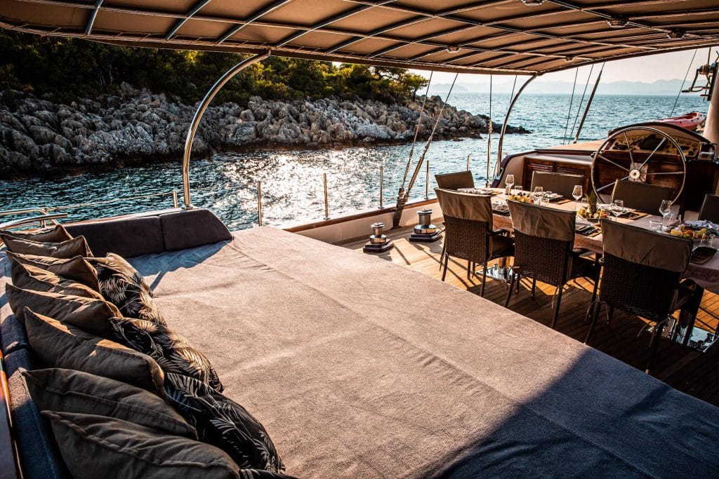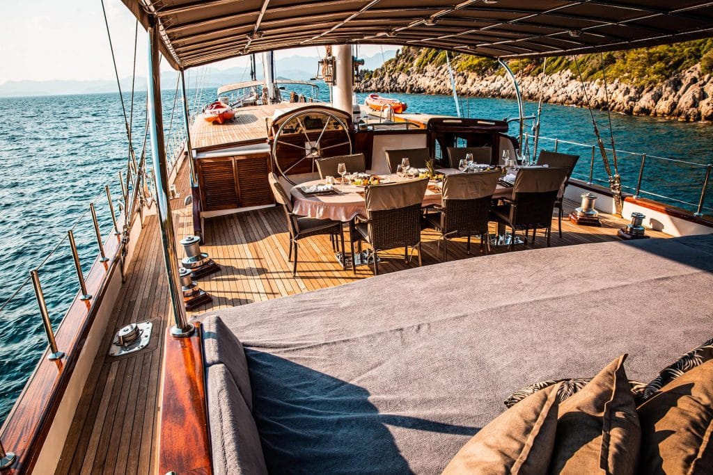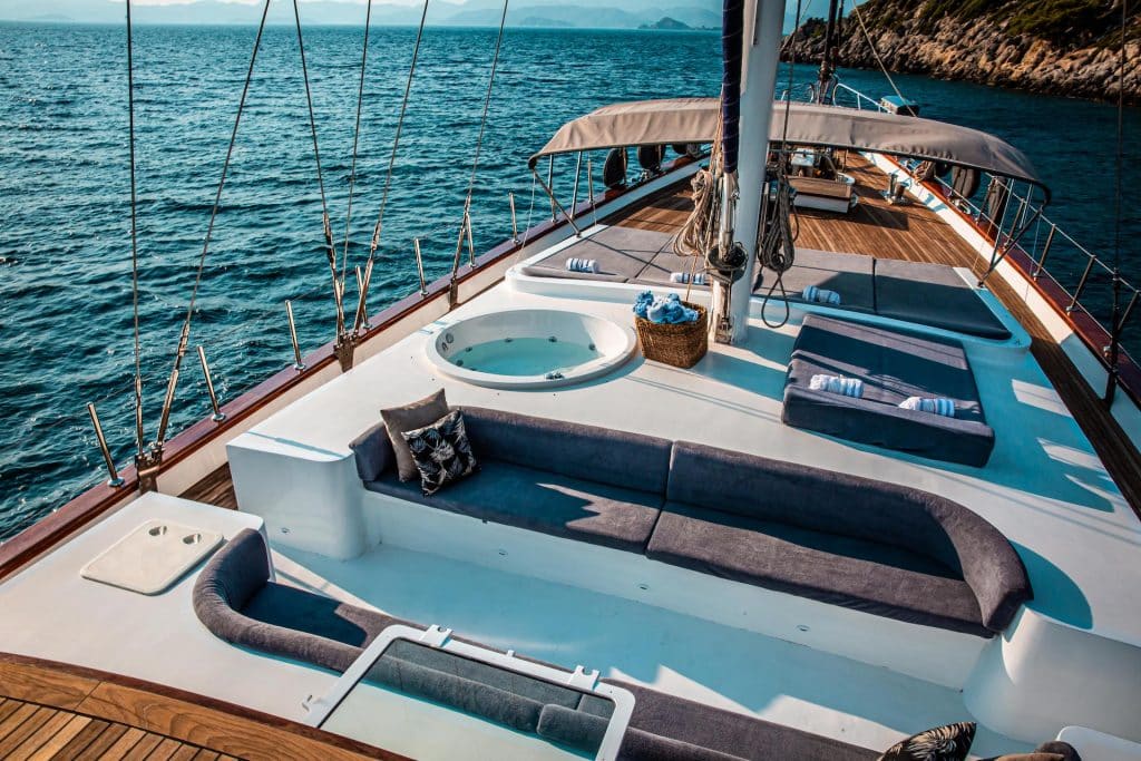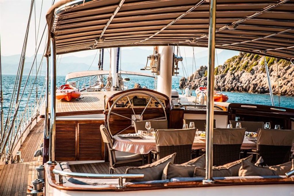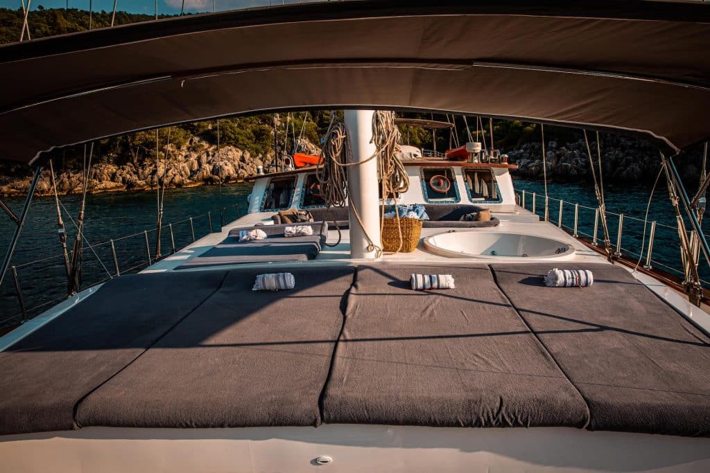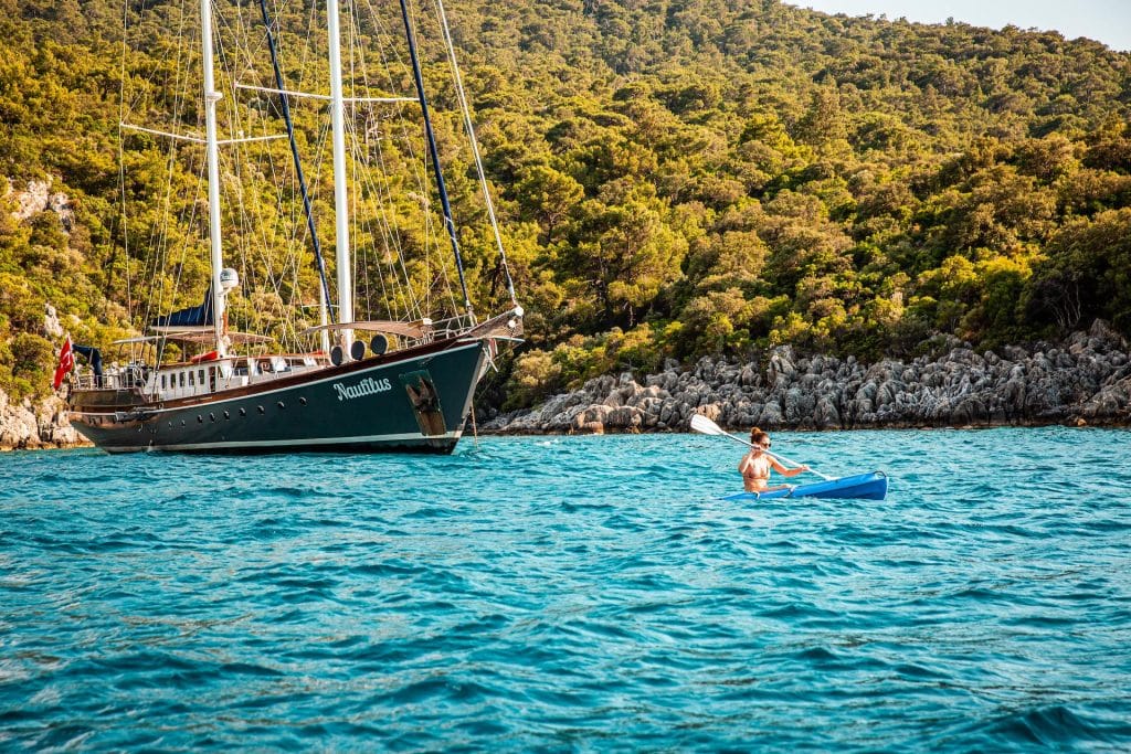 Есть каноэ, трубки, маски, ласты и простые рыболовные снасти, чтобы сделать время, проведенное вами в море, более приятным, а чтобы сделать время, проведенное вами на палубе, более веселым, есть набор для игры в рамми, нарды, игральные карты, DVD-плеер, музыкальная система и кондиционер. Наш опытный персонал на лодке будет к вашим услугам для приготовления пищи, обслуживания, ежедневной уборки и решения всех вопросов, которые могут вам понадобиться во время синего путешествия. Его капитан и команда, имеющие опыт в парусном спорте, отправятся в плавание, когда позволит погода, и вы сможете насладиться удовольствием от парусного синего круиза по Эгейскому морю. Чтобы испытать экономичный и приятный синий тур в турецких территориальных водах, мы приглашаем вас в синее путешествие на нашем Nautilus Гулет и яхта.