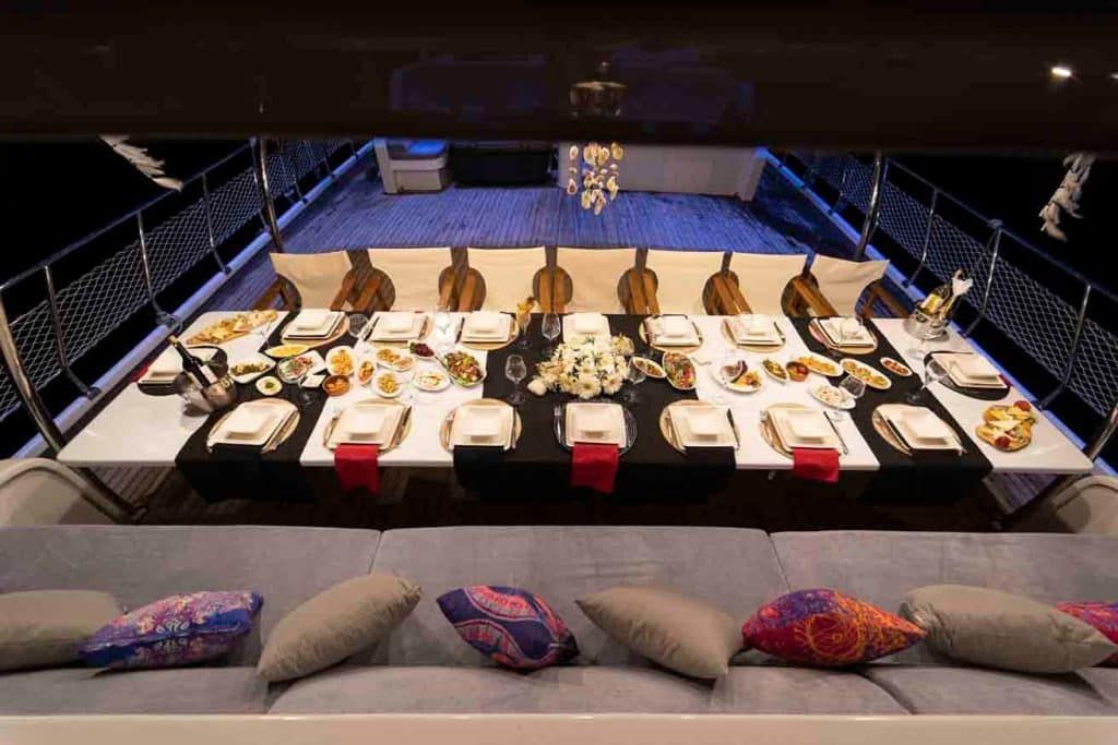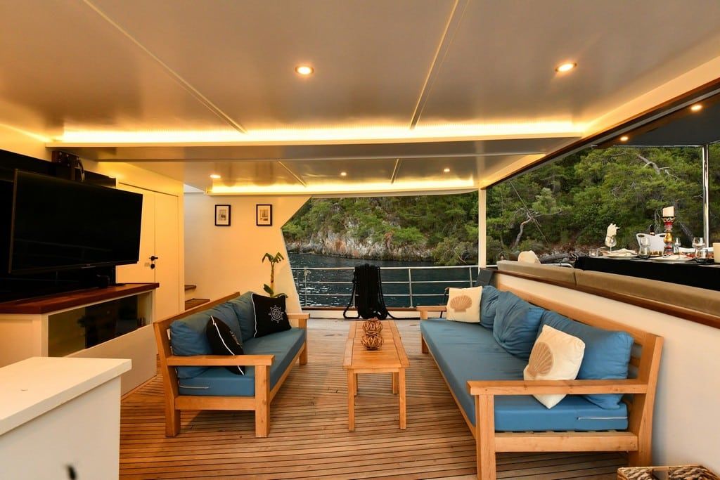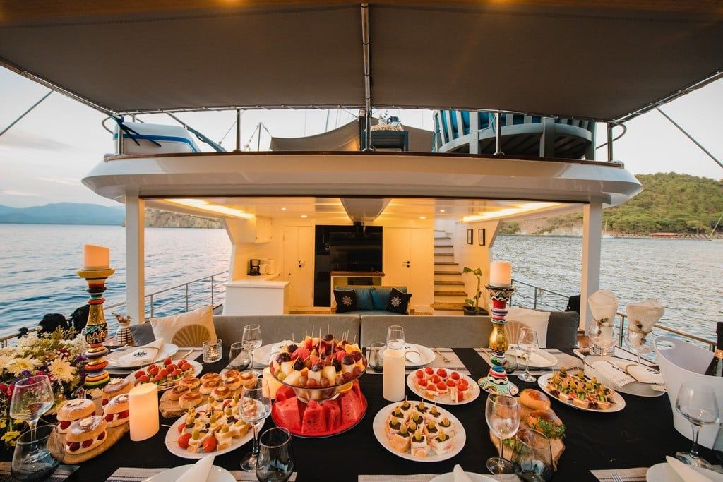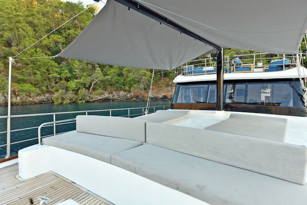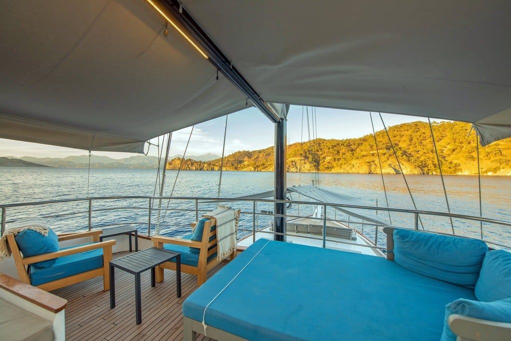 Есть каноэ, трубки, маски, ласты и простые рыболовные снасти, чтобы сделать время, проведенное вами в море, более приятным, а чтобы сделать время, проведенное вами на палубе, более веселым, есть набор для игры в рамми, нарды, игральные карты, DVD-плеер, музыкальная система и кондиционер. Наш опытный персонал на лодке будет к вашим услугам для приготовления пищи, обслуживания, ежедневной уборки и всех вопросов, которые могут вам понадобиться во время синего путешествия. Его капитан и команда, имеющие опыт в парусном спорте, отправятся в плавание, когда позволит погода, и вы сможете испытать удовольствие от парусного синего круиза по Эгейскому морю. Чтобы испытать экономичный и приятный синий тур в турецких территориальных водах, мы приглашаем вас в синее путешествие на нашем Nayk 2 Гулет и яхта.