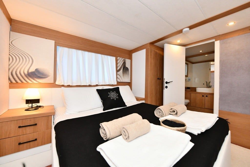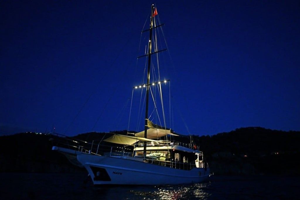 Гулет и яхта Nayk 2 была построена в 2022. Он предлагает вам тур Blue Voyage длиной 26 метров. Есть 6 двухместных кают, каждая с собственным душем, туалетом и кондиционером. С нашей лодкой Nayk 2 вы можете спланировать приятный и развлекательный синий круизный отдых по любому из маршрутов Бодрума, Гёджека, Мармариса и Фетхие. Наша лодка Nayk 2 имеет отдельные обеденные зоны на палубе и в гостиной, полностью оборудованную кухню, американский бар и отдельные жилые зоны для экипажа. На палубе есть зоны для загара, где могут легко загорать 12 человек.