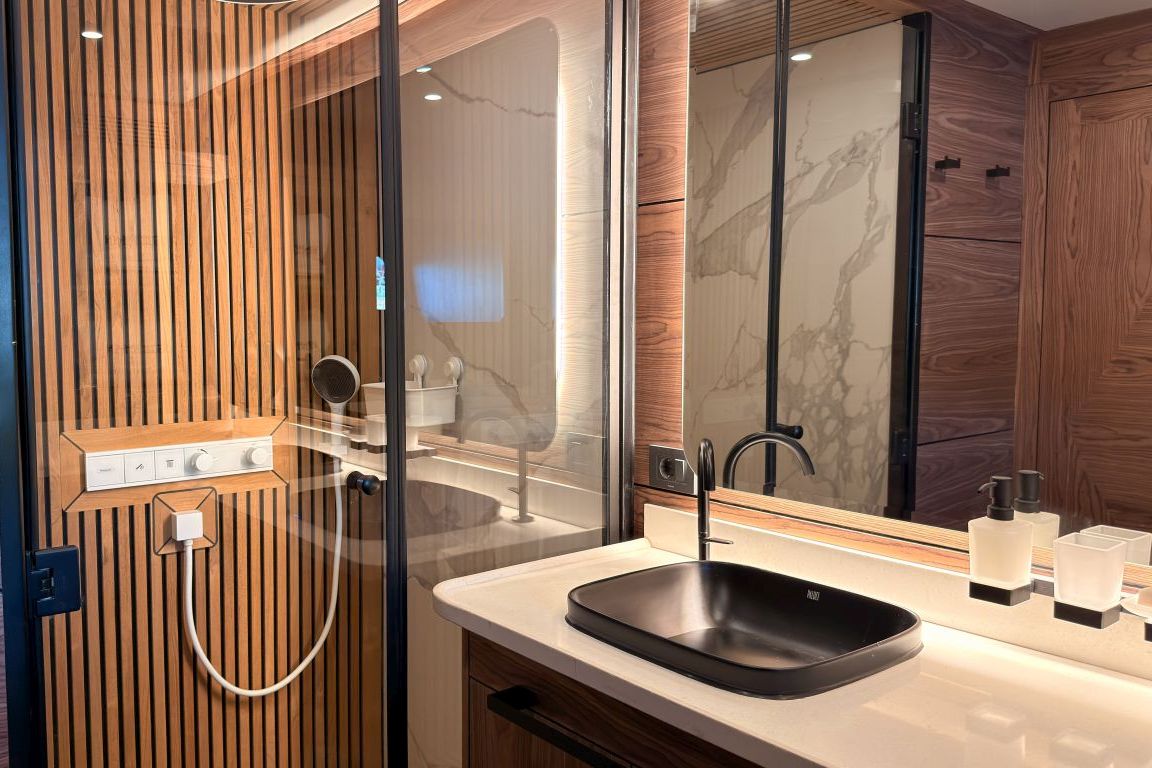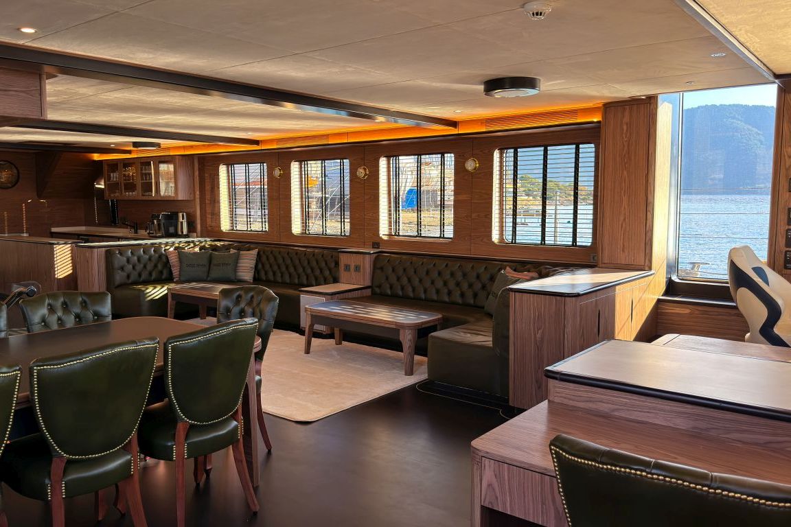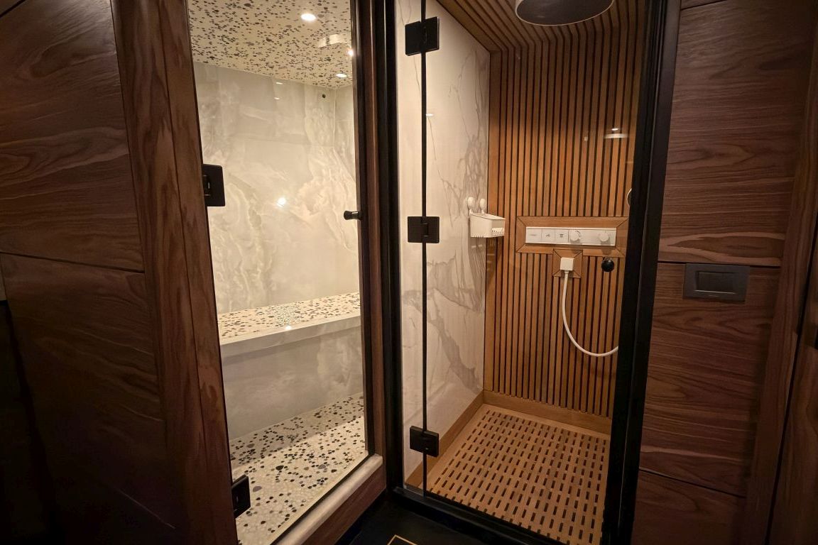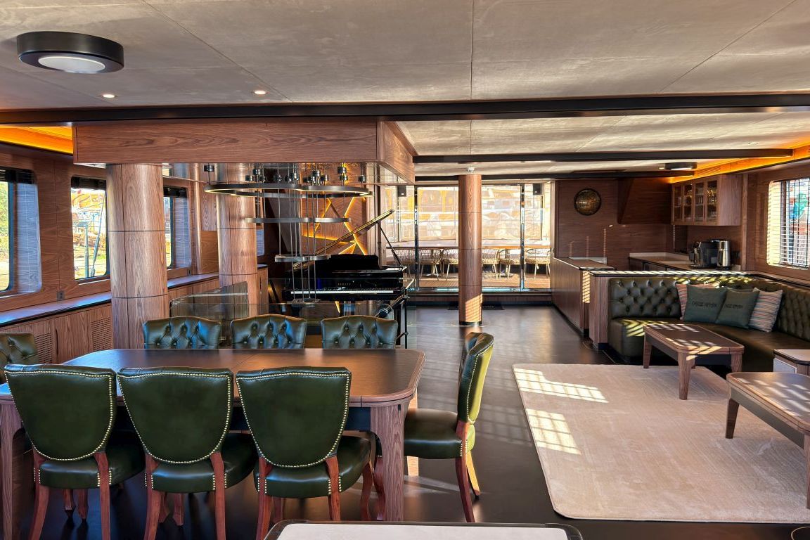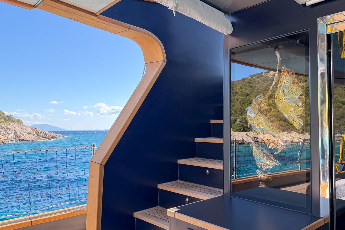| Вместимость до 12 гостей; 1 мастер-каюта, 4 двухместные каюты, 1 каюта с двумя односпальными кроватями, кондиционер, шкаф для одежды, душевая кабина и туалеты домашнего типа во всех каютах, отдельные каюты для экипажа. |