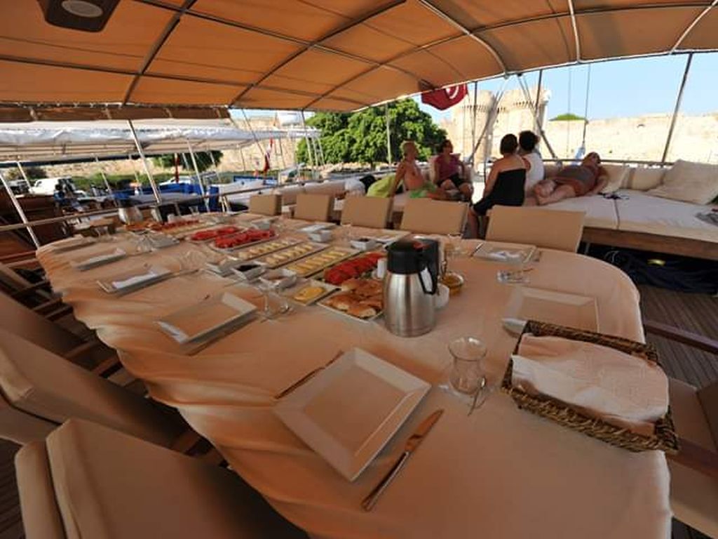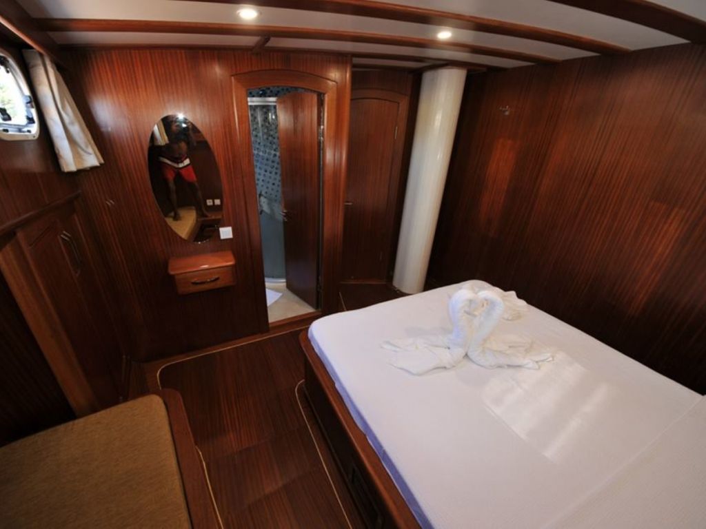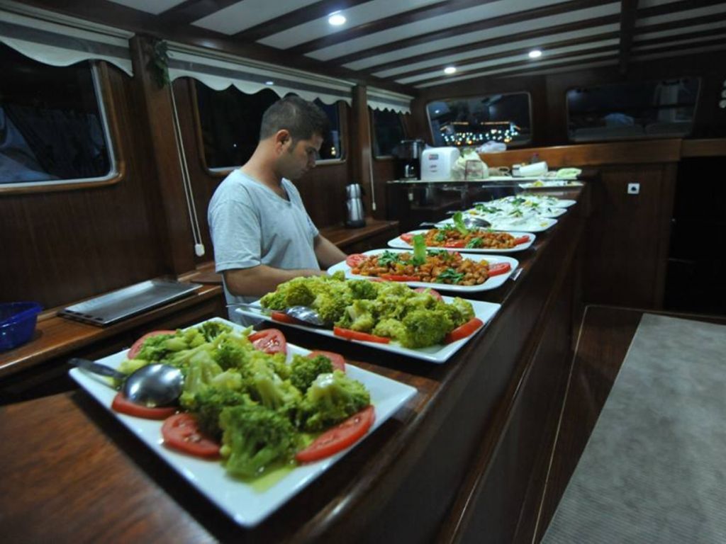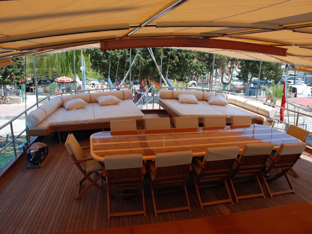 Есть каноэ, трубки, маски, ласты и простые рыболовные снасти, чтобы сделать время, проведенное вами в море, более приятным, а чтобы сделать время, проведенное вами на палубе, более веселым, есть набор для игры в рамми, нарды, игральные карты, DVD-плеер, музыкальная система и кондиционер. Наш опытный персонал на лодке будет к вашим услугам для приготовления пищи, обслуживания, ежедневной уборки и решения всех вопросов, которые могут вам понадобиться во время синего путешествия. Его капитан и команда, имеющие опыт в парусном спорте, отправятся в плавание, когда позволит погода, и вы сможете испытать удовольствие от парусного синего круиза по Эгейскому морю. Чтобы испытать экономичный и приятный синий тур в турецких территориальных водах, мы приглашаем вас в синее путешествие на нашем Oguzhan Гулет и яхта.