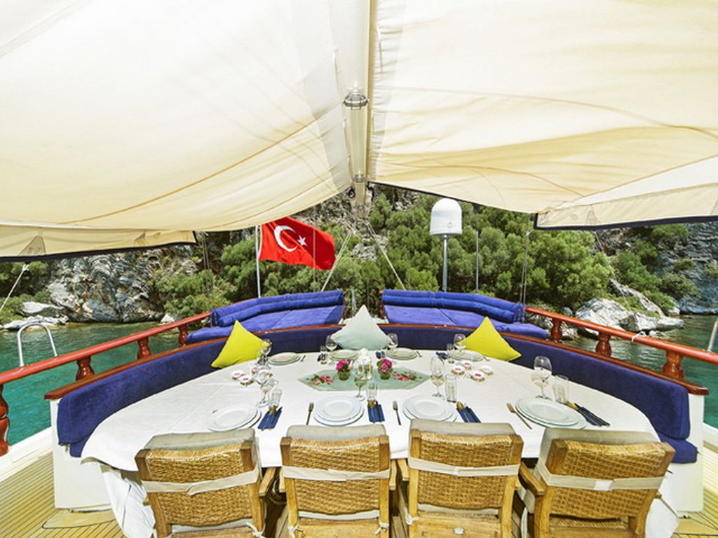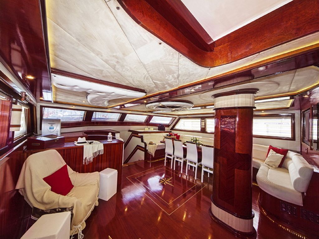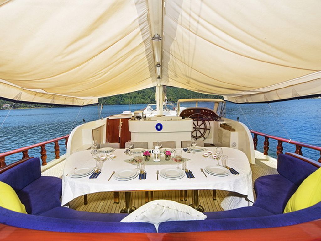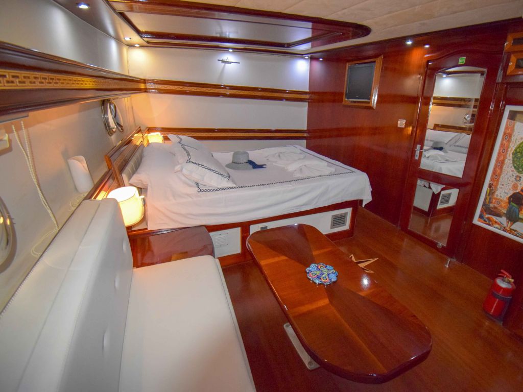 | Гулет Perla Del Mar 2 — 36 м, построен в 2007 г., рефит 2013-го. На борту 6 кают: 2 мастер, 3 дабл и 1 твин; вместимость — 12 гостей. Все каюты оборудованы кондиционером и отдельными санузлами. Палуба просторная, с теневыми зонами для обедов, лаунжами и местами для загара. В салоне — обеденный стол, диваны и кухня. Водные развлечения: тузик 60 л.с., SUP-доска, водные лыжи, вейкборд, ринго, каноэ, снаряжение для сноркелинга и рыбалки. Технические данные: два двигателя Daewoo по 420 л.с., генератор 26 кВА, скорость 10 узлов. Кондиционер работает 12 часов в день. Perla Del Mar 2 — стильный гулет, сочетающий комфорт и активный отдых. |