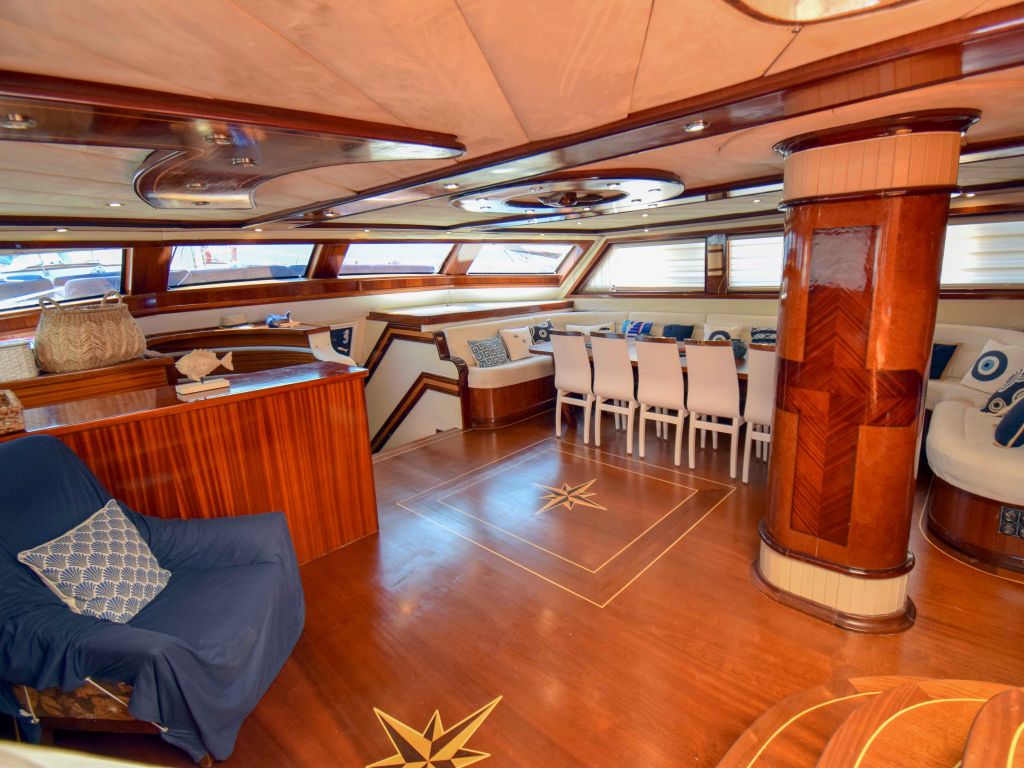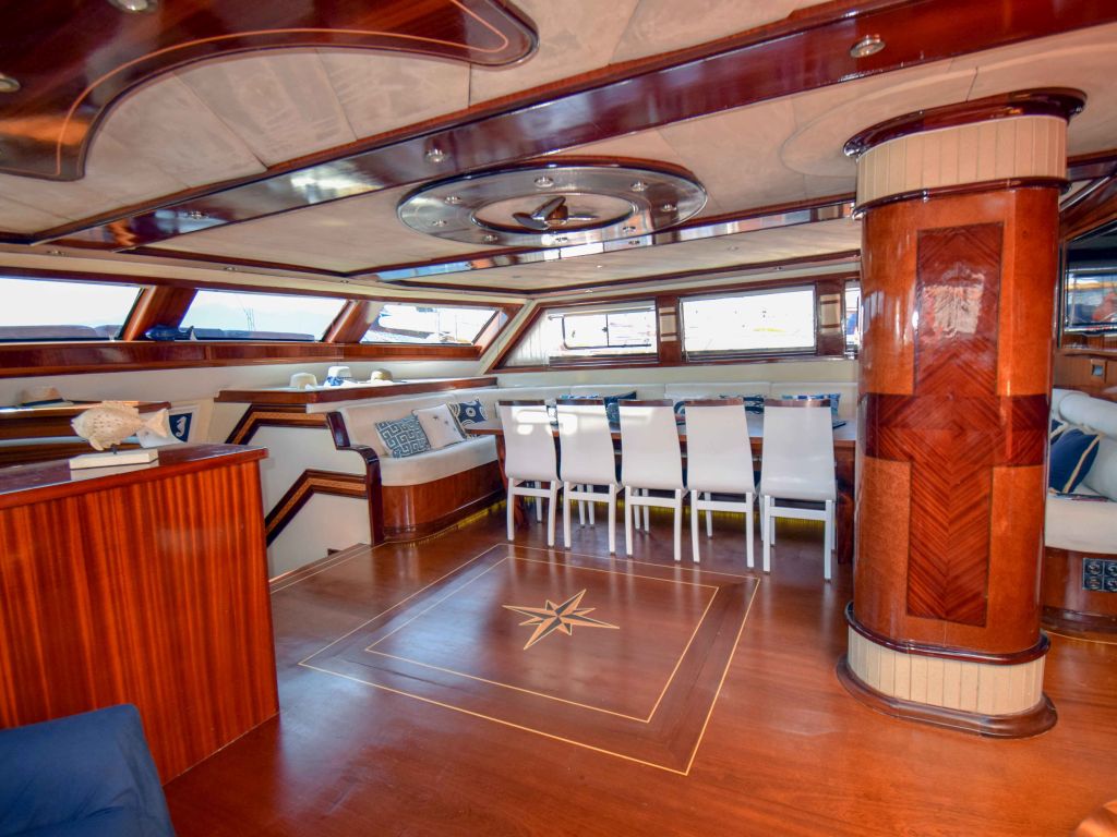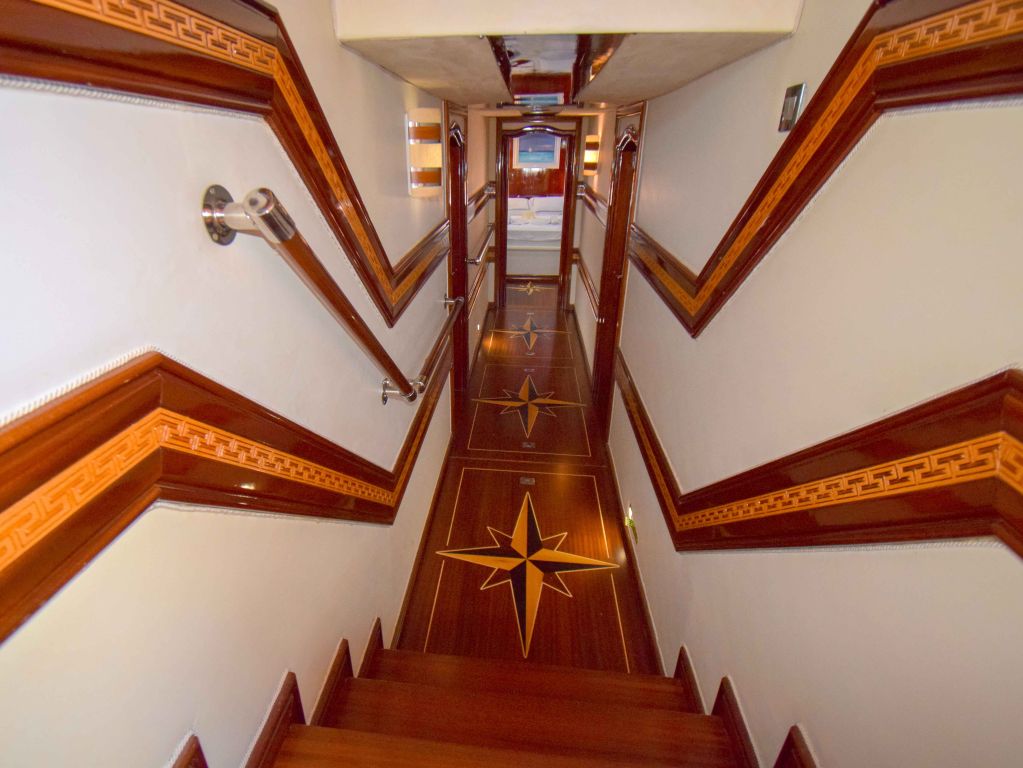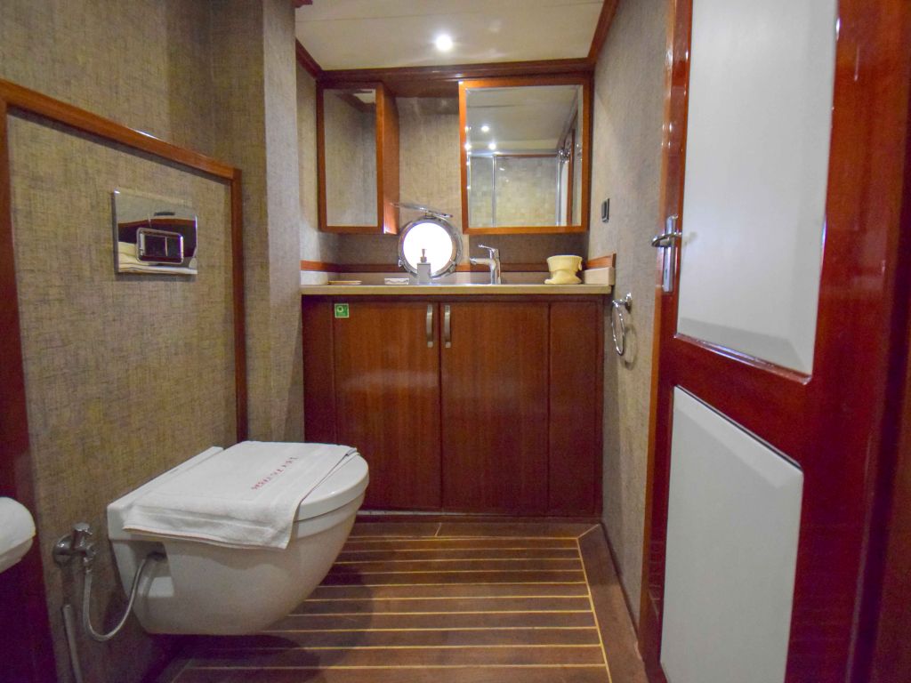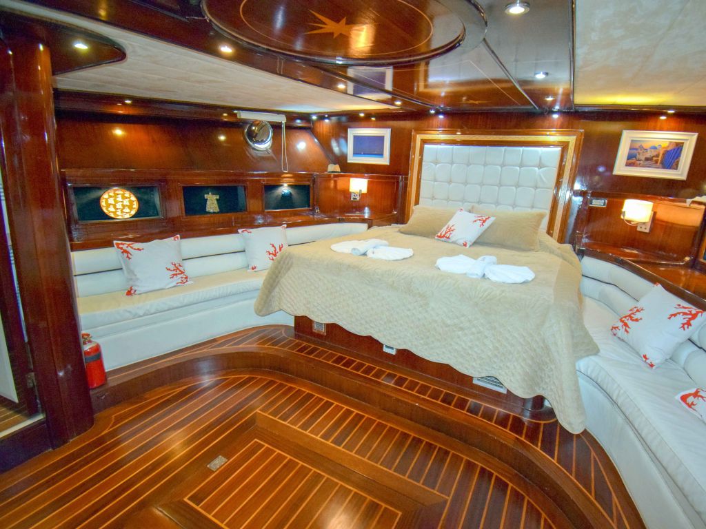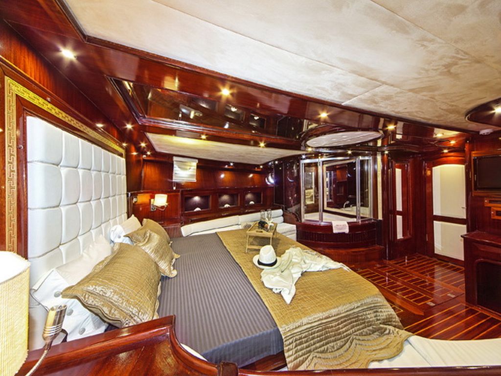 вместимость до 12 гостей; 2 мастер-каюты, 2 двухместные, 2 двухместные каюты, кондиционер, душевая кабина и туалеты домашнего типа во всех каютах, отдельные каюты экипажа. |