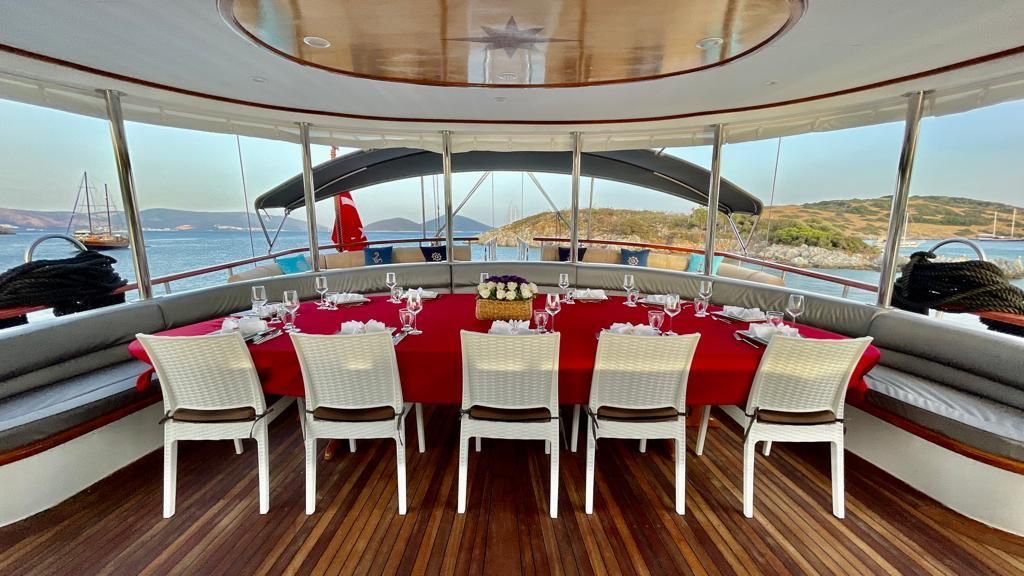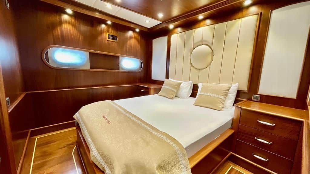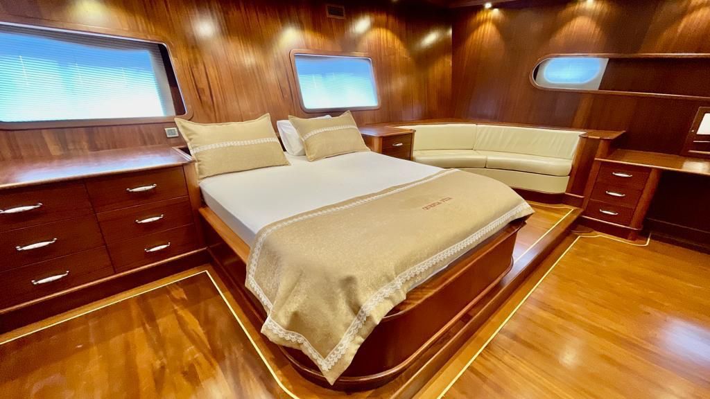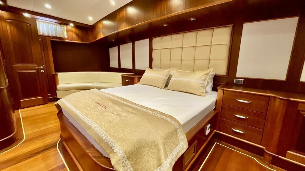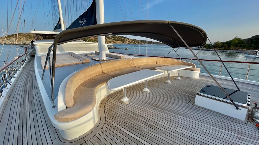 Questa Vita Гулет и яхта была построена в 2009. Он предлагает вам тур Blue Voyage длиной 33 метра. Есть 6 двухместных кают, каждая с собственным душем, туалетом и кондиционером. С нашей лодкой Questa Vita вы можете спланировать приятный и развлекательный синий круизный отпуск по любому из маршрутов Бодрума, Гёджека, Мармариса и Фетхие. Наша лодка Questa Vita имеет отдельные обеденные зоны на палубе и в гостиной, полностью оборудованную кухню, американский бар и отдельные жилые зоны для экипажа. На палубе есть зоны для загара, где могут легко загорать 12 человек.