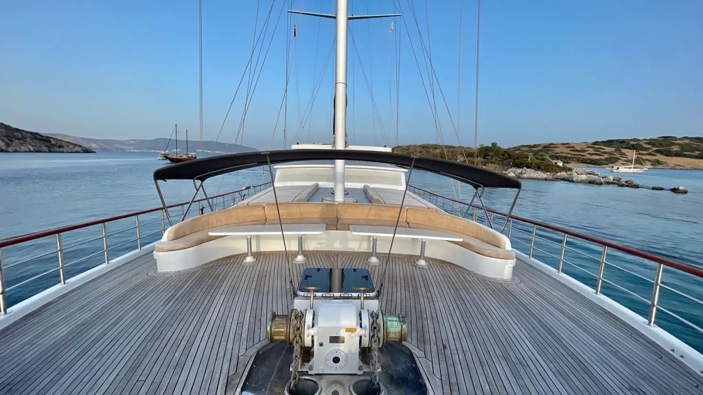 Есть каноэ, трубки, маски, ласты и простые рыболовные снасти, чтобы сделать время, проведенное вами в море, более приятным, а чтобы сделать время, проведенное вами на палубе, более веселым, есть набор для игры в рамми, нарды, игральные карты, DVD-плеер, музыкальная система и кондиционер. Наш опытный персонал на лодке будет к вашим услугам для приготовления пищи, обслуживания, ежедневной уборки и решения всех вопросов, которые могут вам понадобиться во время синего путешествия. Его капитан и команда, имеющие опыт в парусном спорте, отправятся в плавание, когда позволит погода, и вы сможете испытать удовольствие от парусного синего круиза по Эгейскому морю. Чтобы испытать экономичный и приятный синий тур в турецких территориальных водах, мы приглашаем вас в синее путешествие на нашей Questa Vita Гулет и яхта.