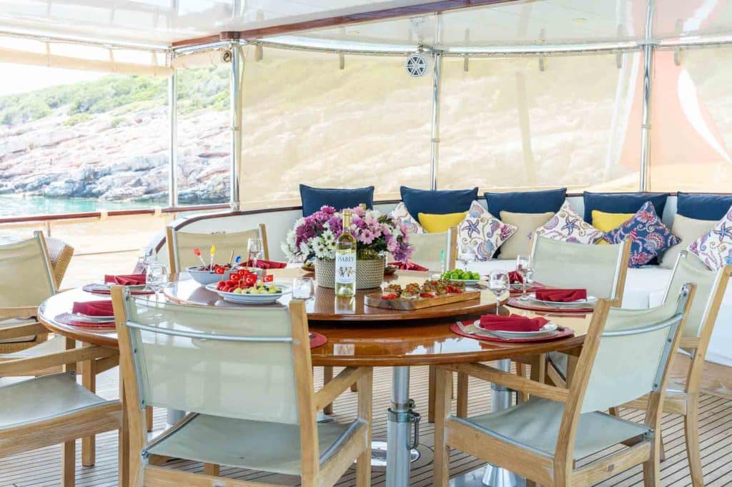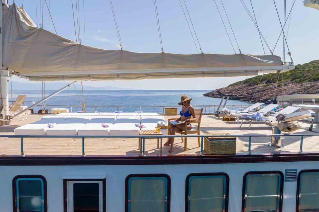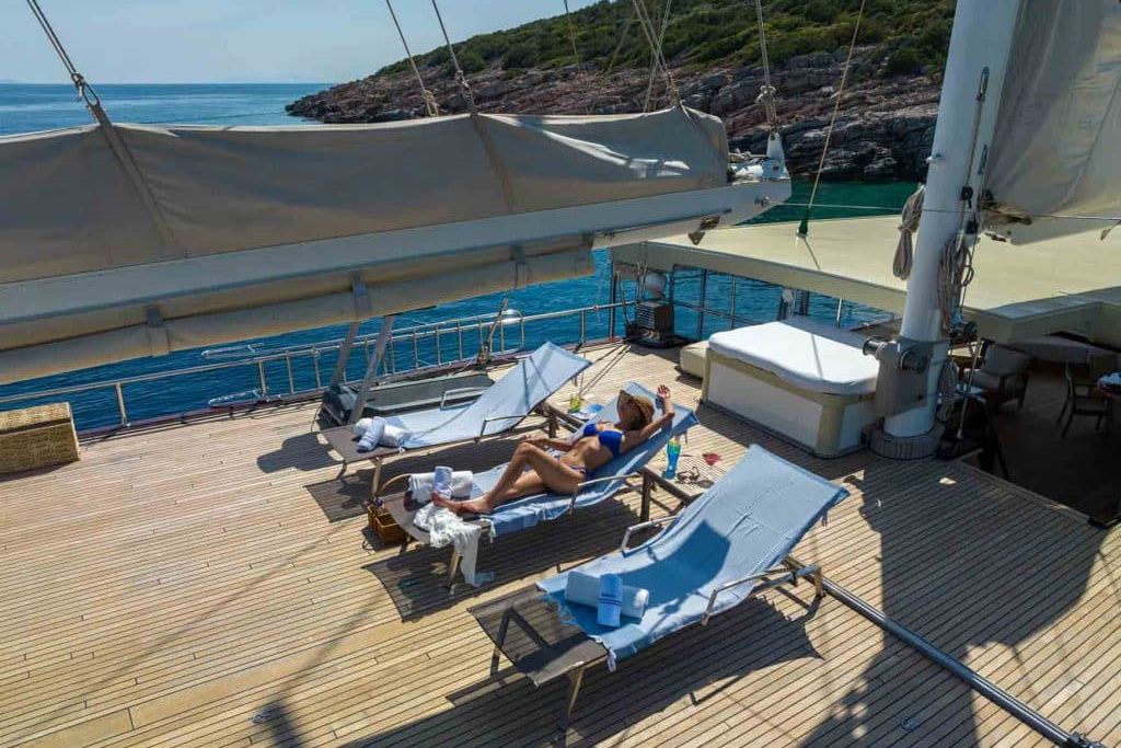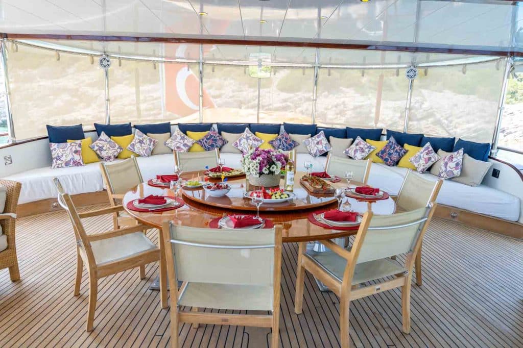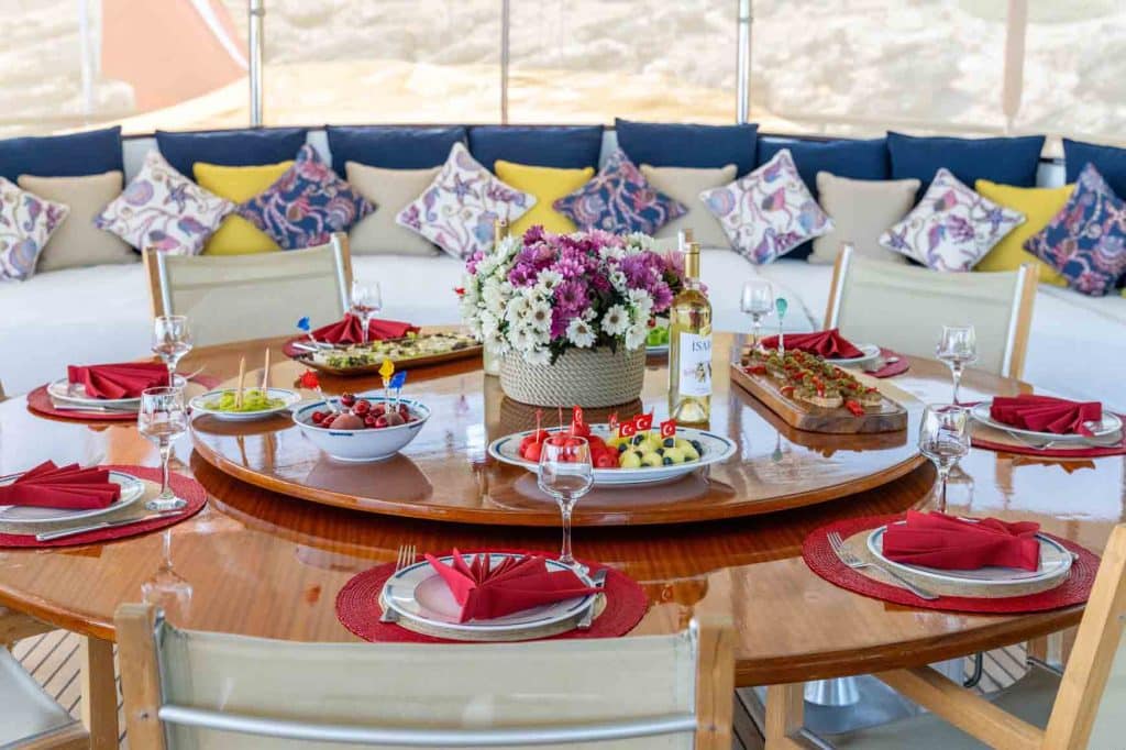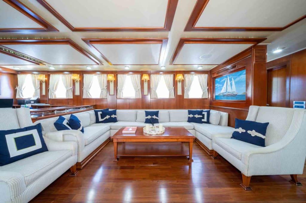 Есть каноэ, трубки, маски, ласты и простые рыболовные снасти, чтобы сделать время, проведенное вами в море, более приятным, а чтобы сделать время, проведенное вами на палубе, более веселым, есть набор для игры в рамми, нарды, игральные карты, DVD-плеер, музыкальная система и кондиционер. Наш опытный персонал на лодке будет к вашим услугам для приготовления пищи, обслуживания, ежедневной уборки и решения всех вопросов, которые могут вам понадобиться во время синего путешествия. Его капитан и команда, имеющие опыт в парусном спорте, отправятся в плавание, когда позволит погода, и вы сможете насладиться удовольствием от парусного синего круиза по Эгейскому морю. Чтобы испытать экономичный и приятный синий тур в турецких территориальных водах, мы приглашаем вас в синее путешествие на нашем Sea Dream Гулет и яхта.