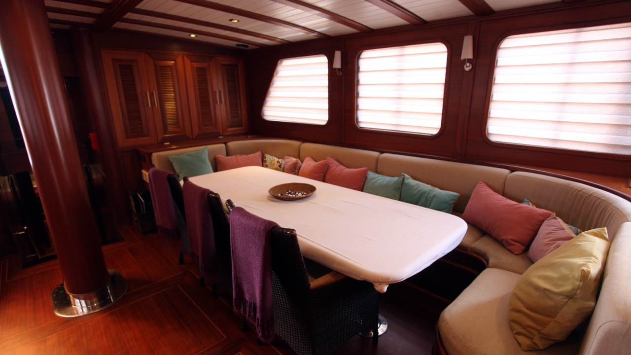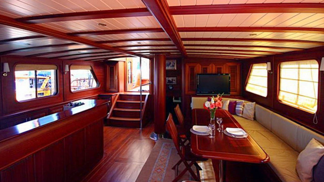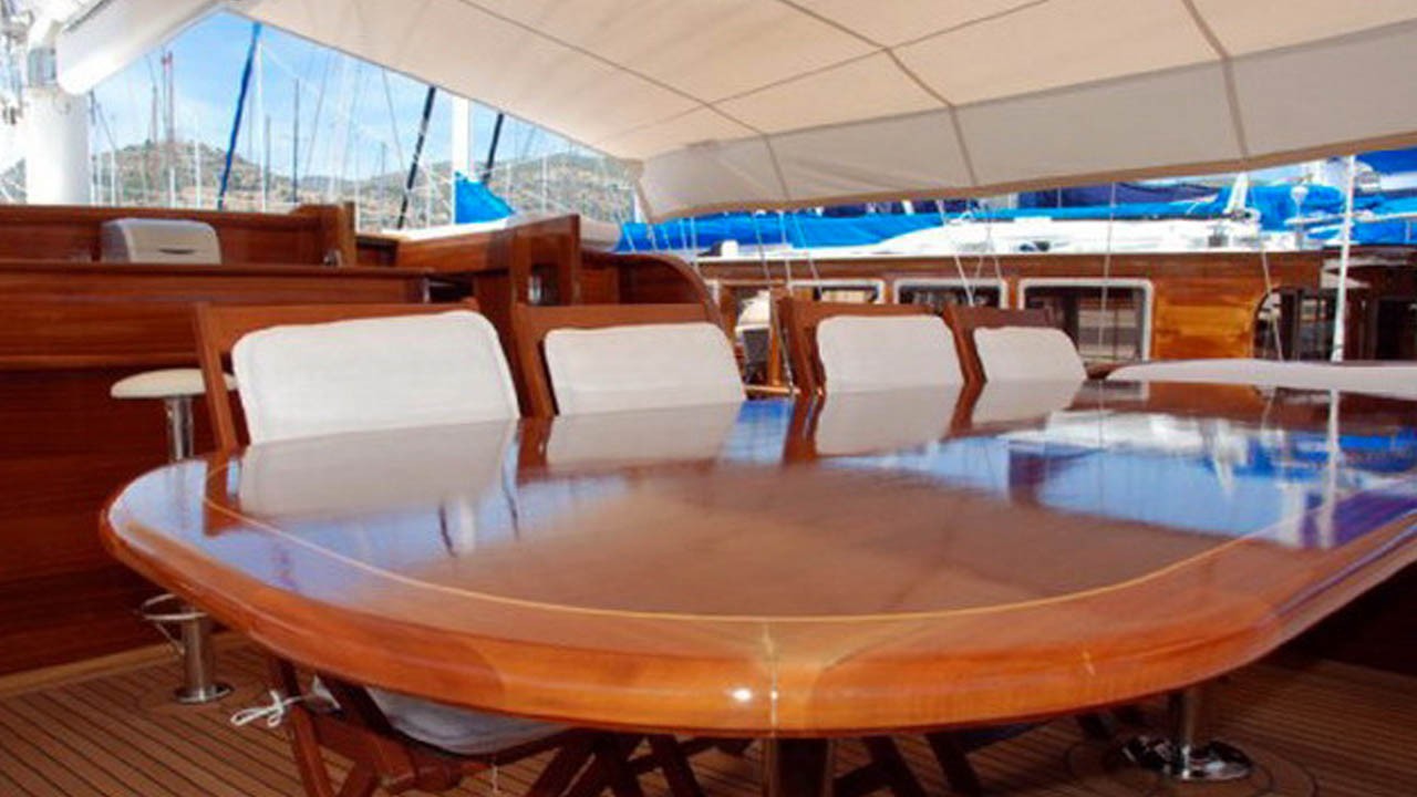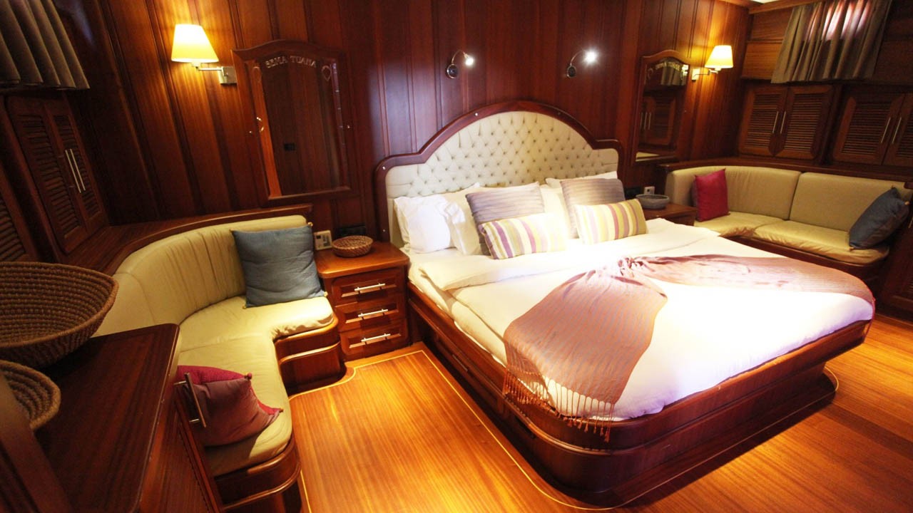 | Гулет Sema Tuana — это 32-метровый роскошный гулет, спущенный на воду в 2008 году и обновлённый в 2017 году. Судно располагает шестью каютами: двумя мастер-сьютами, двумя двухместными и двумя каютами с двумя односпальными кроватями. Всего могут разместиться до 12 гостей. Все каюты оснащены кондиционером, отдельными санузлами и оформлены в элегантном стиле. Палуба оборудована просторной обеденной зоной на свежем воздухе, мягкими диванами и большим местом для загара. Салон оформлен со вкусом и оснащён современными удобствами. Для активного отдыха предусмотрен тендер мощностью 70 л.с., гидроцикл, водные лыжи, вейкборд, каноэ, оборудование для снорклинга и рыбалки. Судно оснащено двумя двигателями Scania мощностью по 370 л.с., каждый из которых работает с генератором 22,5 кВА, что позволяет развивать скорость 10 узлов. Кондиционер работает круглосуточно. Sema Tuana — это идеальный выбор для тех, кто ищет роскошь, стиль и приключения на бирюзовых водах Турции. |